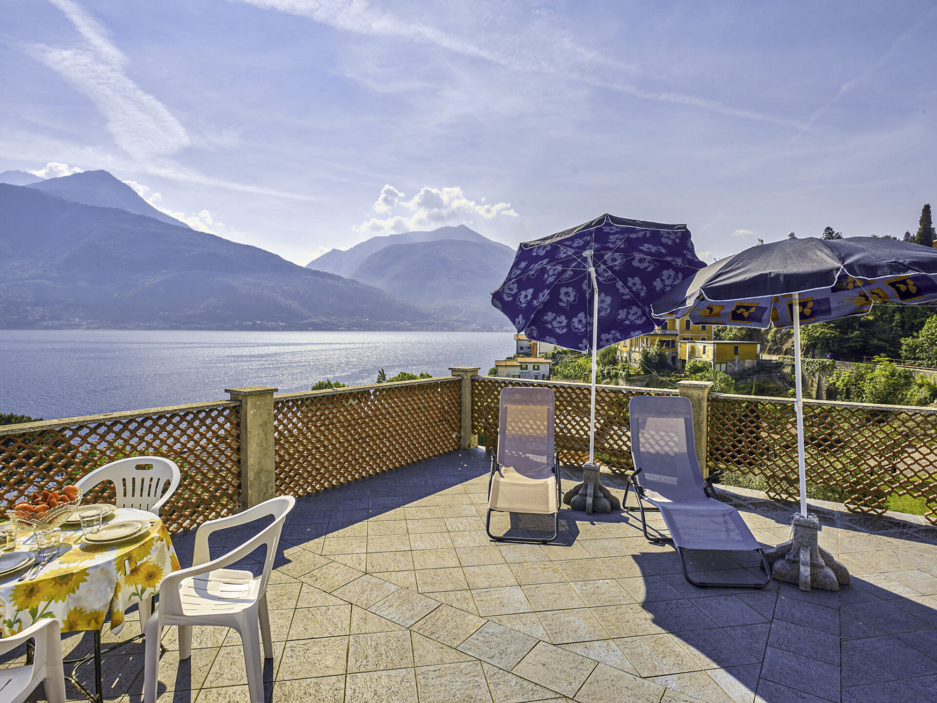Appartement 3-kamers 85 m2 op de 1e verdieping. Eenvoudig en doelmatig ingericht: groot woon-/eetkamer met open haard, eettafel en Sat-TV. Uitgang naar het balkon. 1 kamer met 1 2-pers bed (160 cm). Uitgang naar het balkon. 1 kamer met 2 bedden en 2 uitschuifbare bedden. Uitgang naar het terras. Kleine, open keuken (oven, 4 kookpitten (vlammen), broodrooster, elektrische koffiemachine). Douche/WC. Balkon, groot terras 70 m2. Terrasmeubelen, ligstoelen (4). Mooi panoramazicht op het meer en de bergen. Ter beschikking: wasmachine. Niet rokers woning. IT013183C27HGSSUYQ
