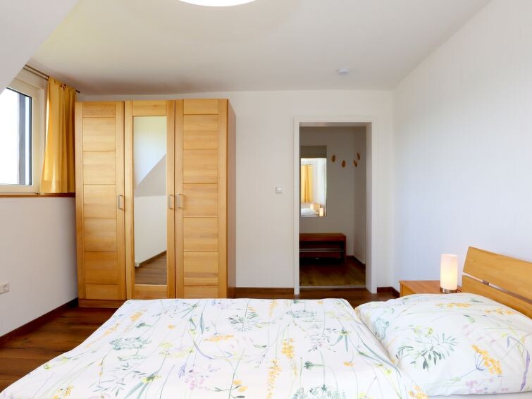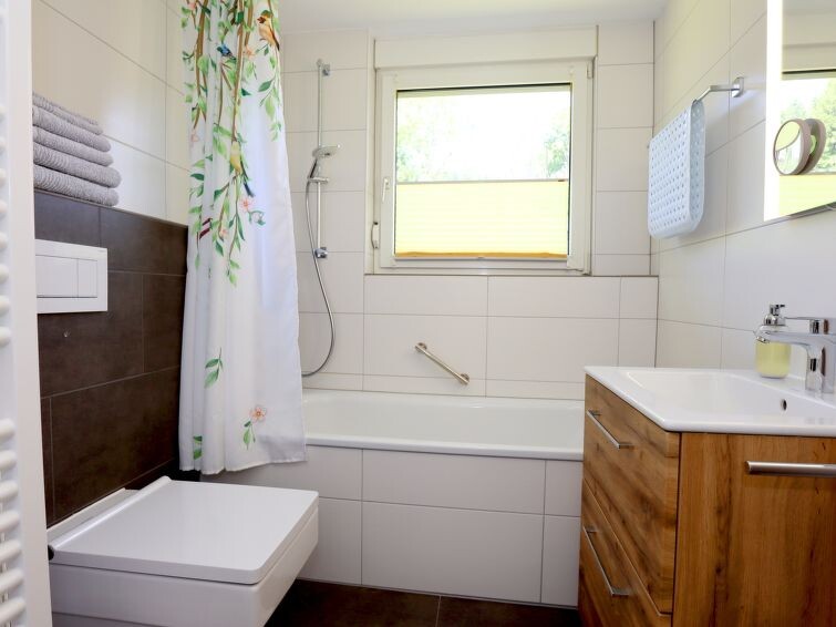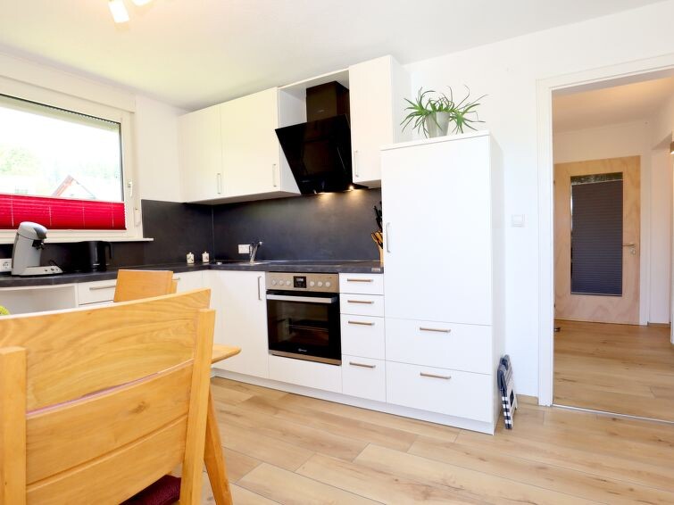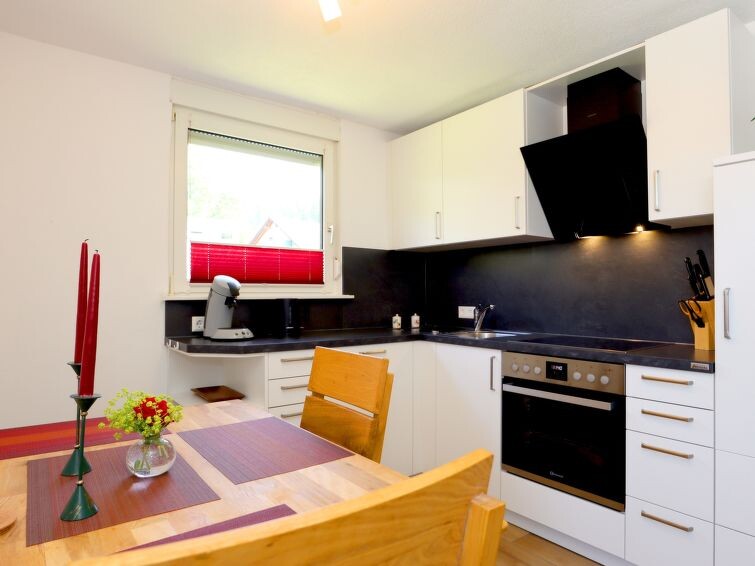 "Blackforest Birdnest", appartement 2-kamers 65 m2, op de bovenste verdieping. Licht, modern en gezellig ingericht: groot woonkamer met Kabel-TV (Flatscreen TV). Uitgang naar het balkon. 1 kamer met 1 2-pers bed (2 x 90 cm, lengte 200 cm). Keuken (oven, afwasmachine, 4 keramische glas kookplaten, broodrooster, waterkoker, elektrische koffiemachine) met eettafel. Uitgang naar het balkon. Bad/WC. Verwarming. Balkon. Balkonmeubilair. Ter beschikking: haardroger. Internet (WiFi, gratis). Parkeerplaats (1 Auto) bij het huis. Niet rokers woning. Rookmelders.