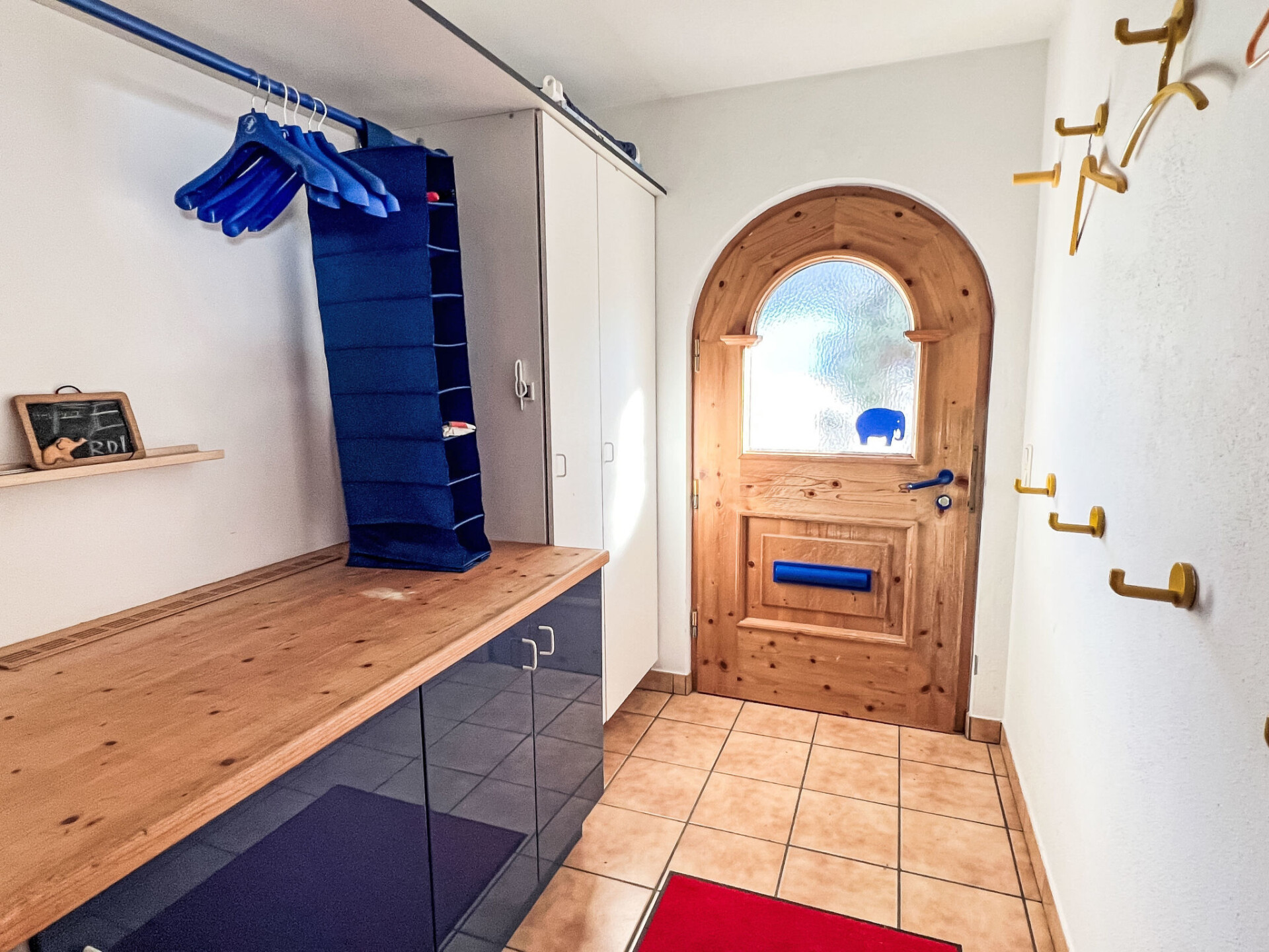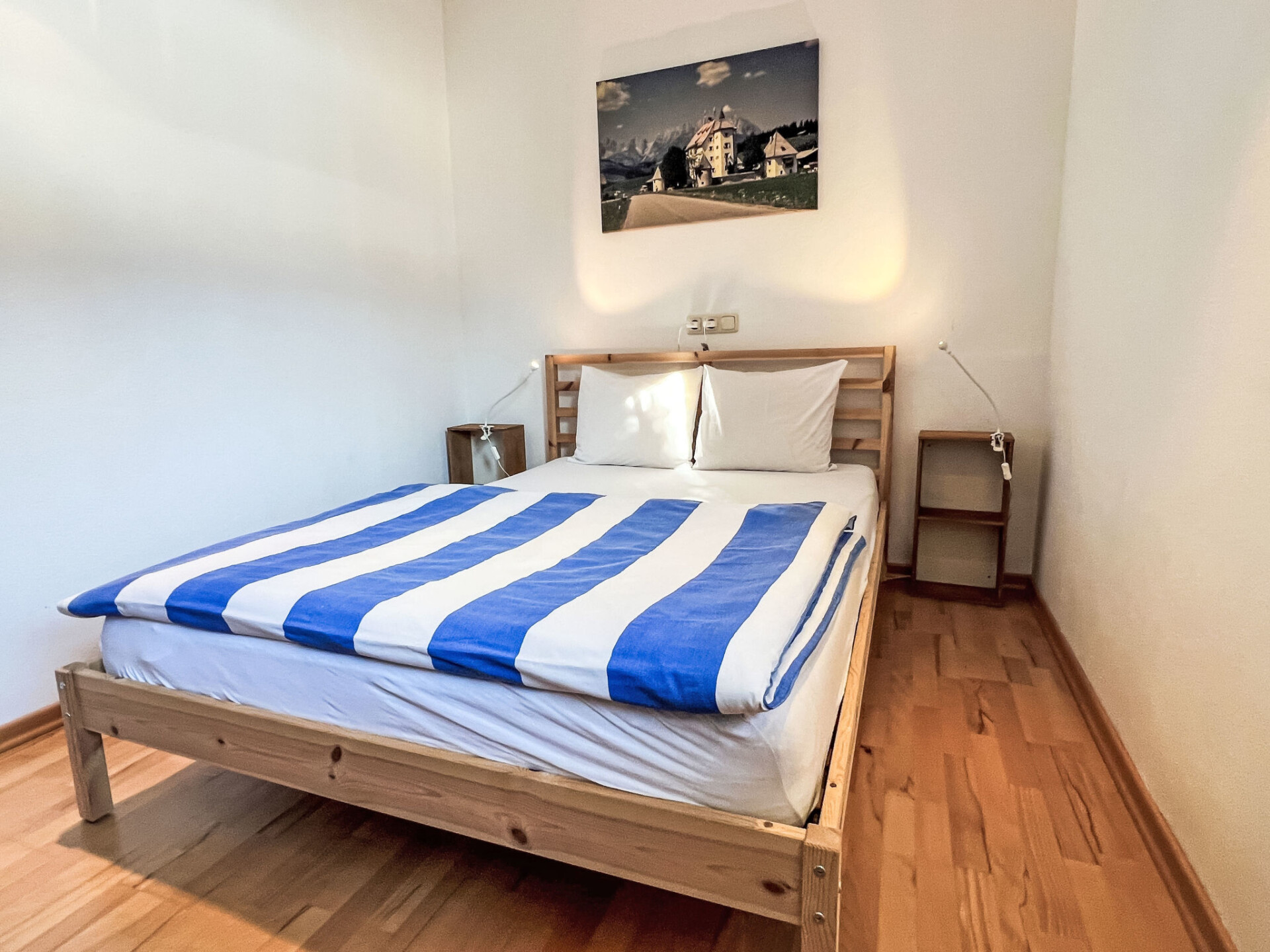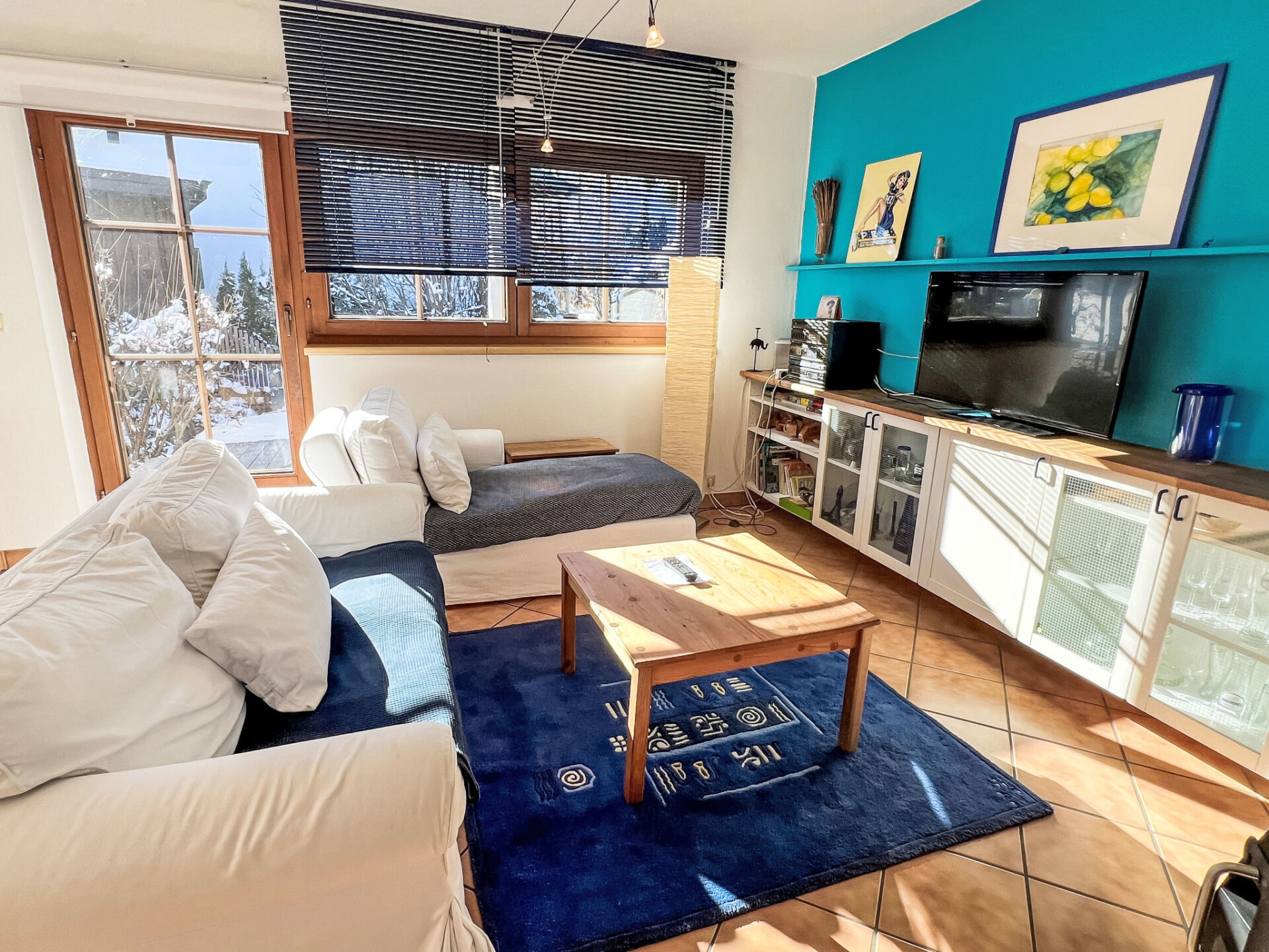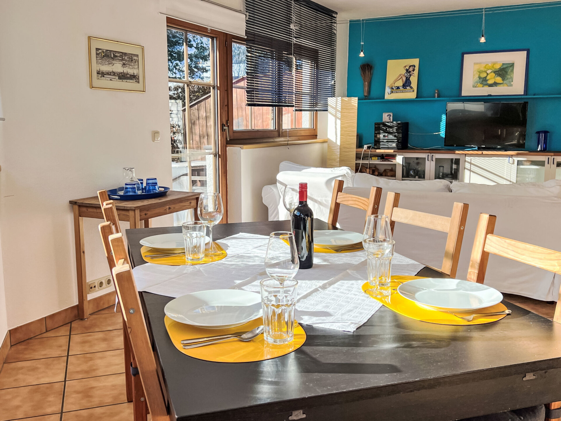 "Blauer Elefant", appartement 4-kamers 108 m2, op de begane grond. Smaakvol ingericht: woonkamer met zwedenkachel en TV. 1 2-pers. kamer met douche/WC en TV. 1 kamer met 1 x 2 stapelbedden (90 cm, lengte 200 cm). 1 kamer met 1 2-pers bed (130 cm, lengte 200 cm). Open keuken (oven, afwasmachine, 4 keramische glas kookplaten, broodrooster, waterkoker, magnetron, fondue Set (chinese)). Bad/WC. Olie-verwarming. Houten vloeren. Terras 50 m2. Terrasmeubelen, elektrische barbecue. Zeer mooi panoramazicht op de bergen. Ter beschikking: wasmachine. Internet (WiFi, gratis). Niet rokers woning. Rookmelders, brandblusser.
