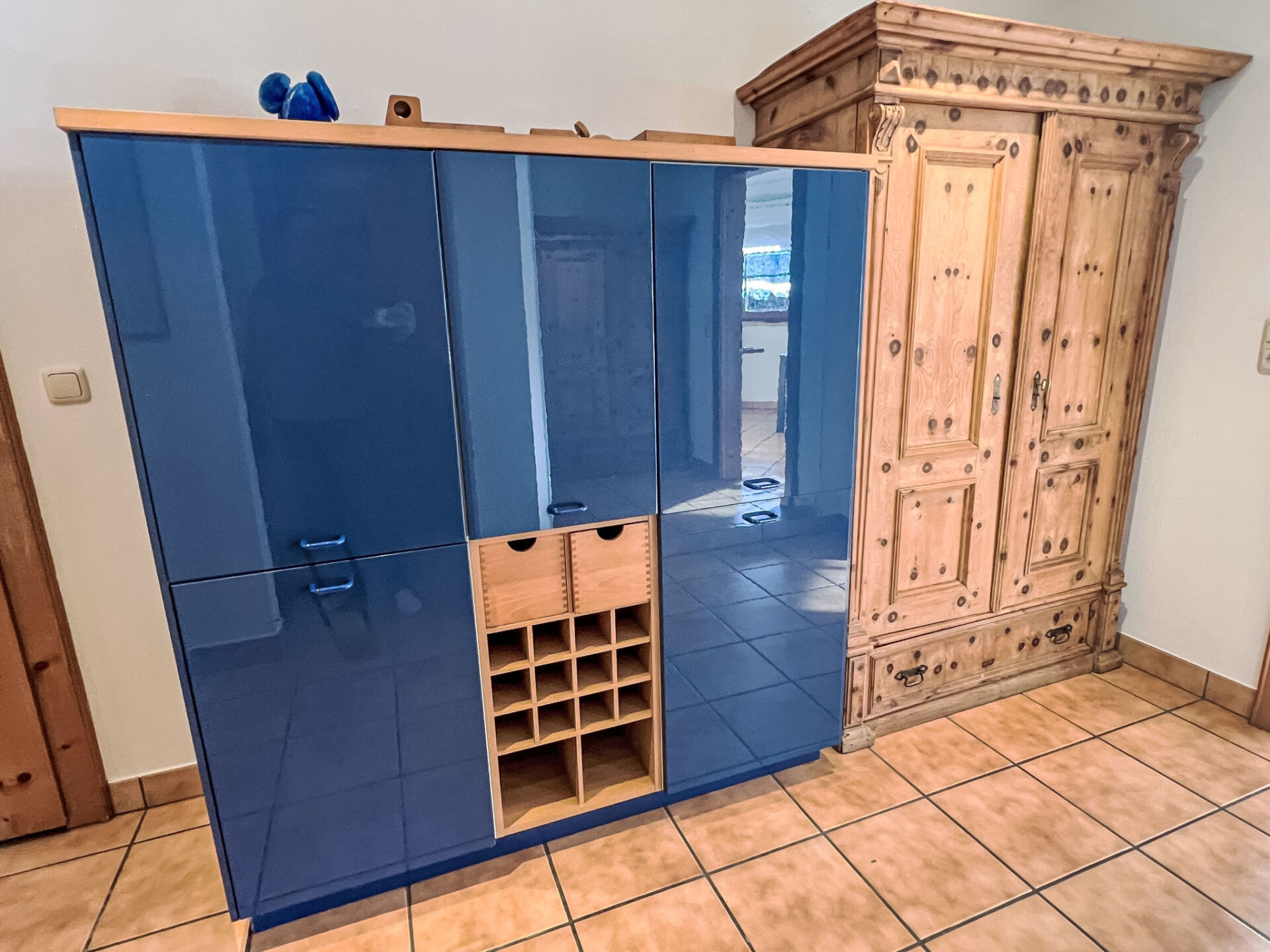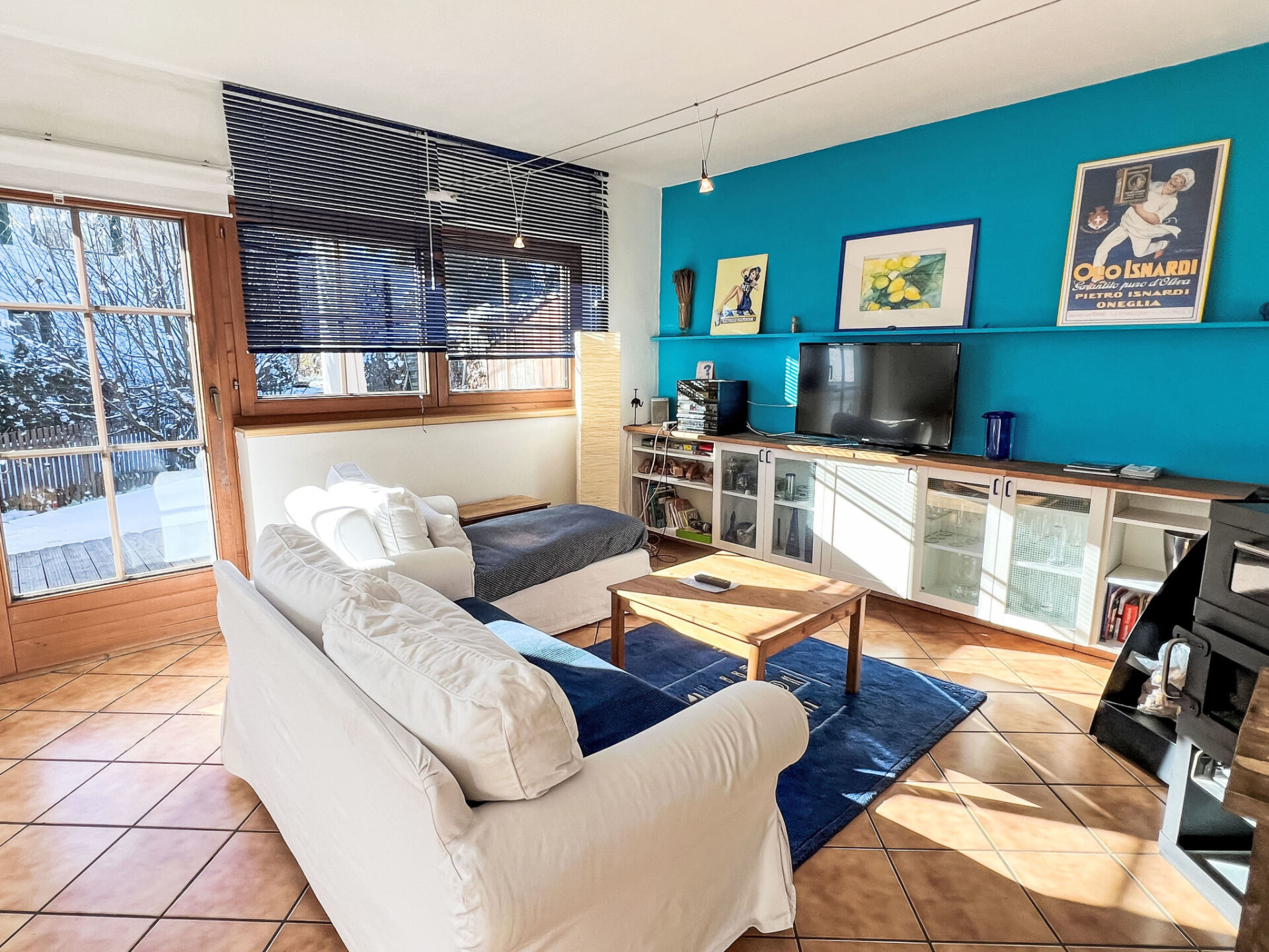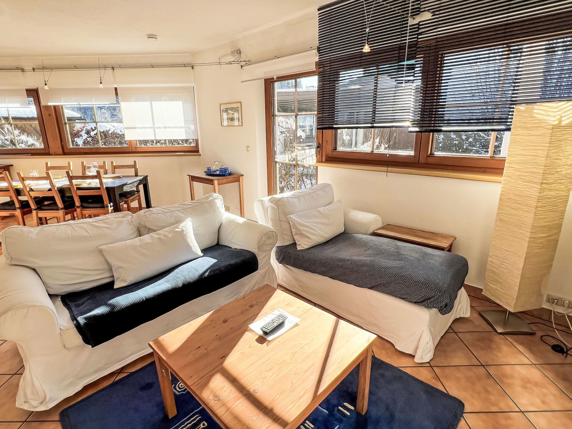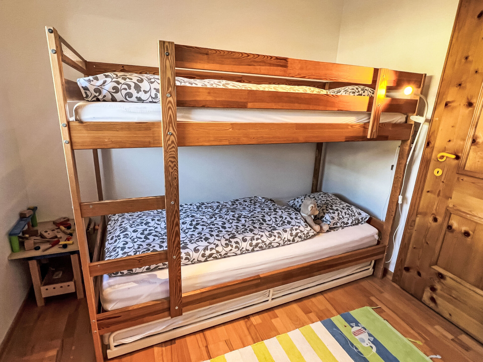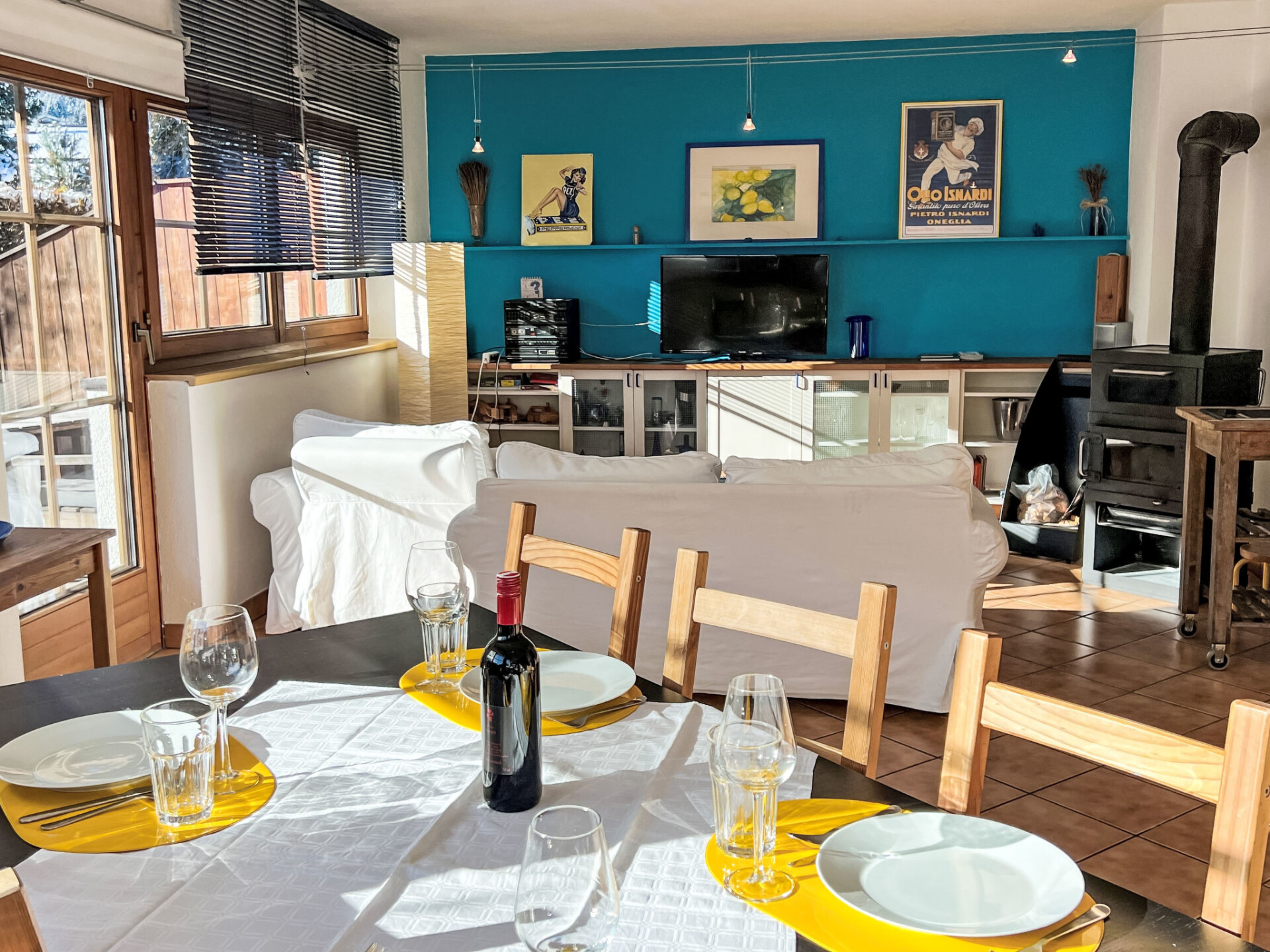 "Blauer Elefant", appartement 4-kamers 108 m2, op de begane grond. Smaakvol ingericht: woonkamer met zwedenkachel en TV. 1 2-pers. kamer met douche/WC en TV. 1 kamer met 1 x 2 stapelbedden (90 cm, lengte 200 cm). 1 kamer met 1 2-pers bed (130 cm, lengte 200 cm). Open keuken (oven, afwasmachine, 4 keramische glas kookplaten, broodrooster, waterkoker, magnetron, fondue Set (chinese)). Bad/WC. Olie-verwarming. Houten vloeren. Terras 50 m2. Terrasmeubelen, elektrische barbecue. Zeer mooi panoramazicht op de bergen. Ter beschikking: wasmachine. Internet (WiFi, gratis). Niet rokers woning. Rookmelders, brandblusser.