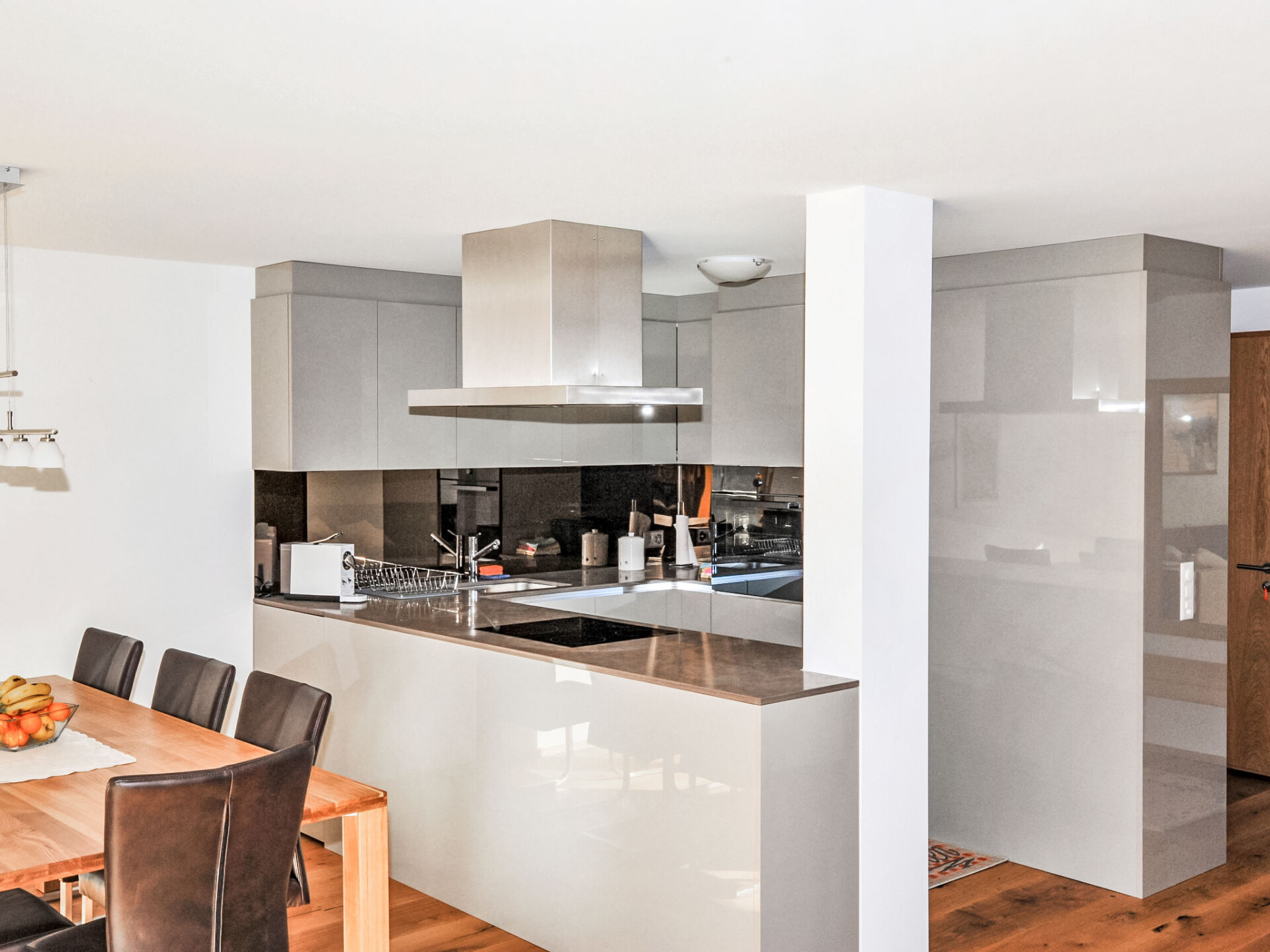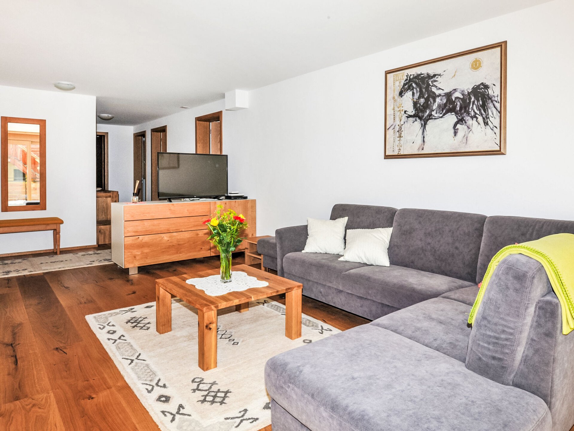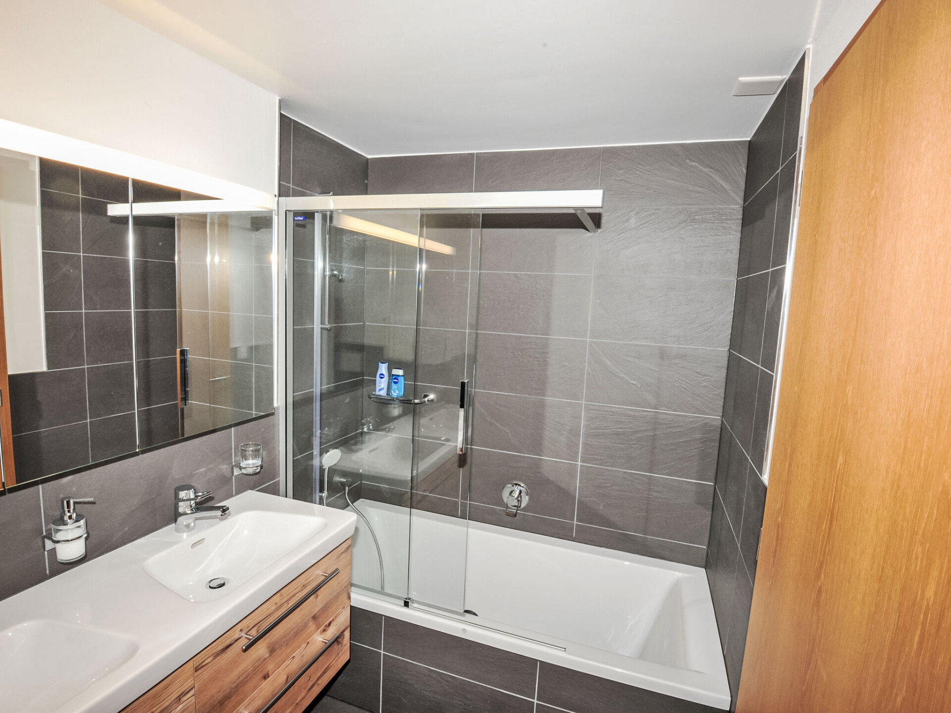 Appartement 4-kamers 128 m2, op de begane grond. Gerenoveerd in 2016, modern en smaakvol ingericht: woon-/eetkamer met eettafel, TV en DVD. Uitgang naar het terras. 1 2-pers. kamer met 1 2-pers bed (2 x 90 cm, lengte 210 cm). 1 2-pers. kamer met 1 2-pers bed (2 x 90 cm, lengte 210 cm), bad/WC. 1 kamer met 1 2-pers bed (2 x 80 cm, lengte 210 cm). Open keuken (oven, afwasmachine, 4 keramische glas kookplaten, broodrooster, waterkoker, diepvriezer, elektrische koffiemachine, raclette oven, fondue Set (chinese, kaas)). Douche/WC. Groot terras, op het zuiden gelegen. Terrasmeubelen. Zijdelings uitzicht op de bergen. Ter beschikking: haardroger. Internet (Internet (WiFi), gratis). Niet rokers woning. 7