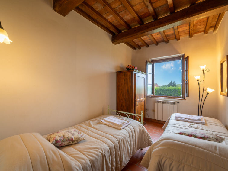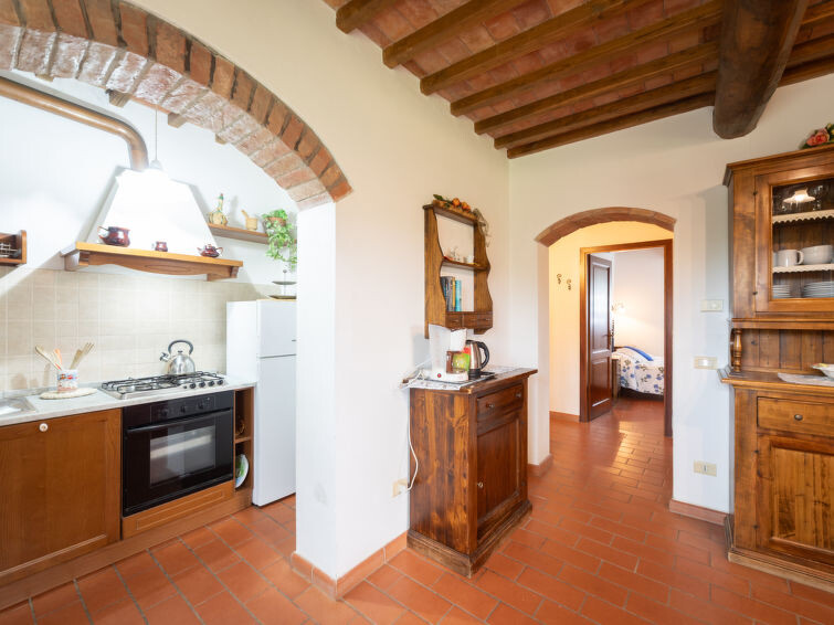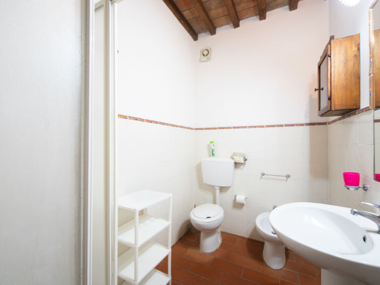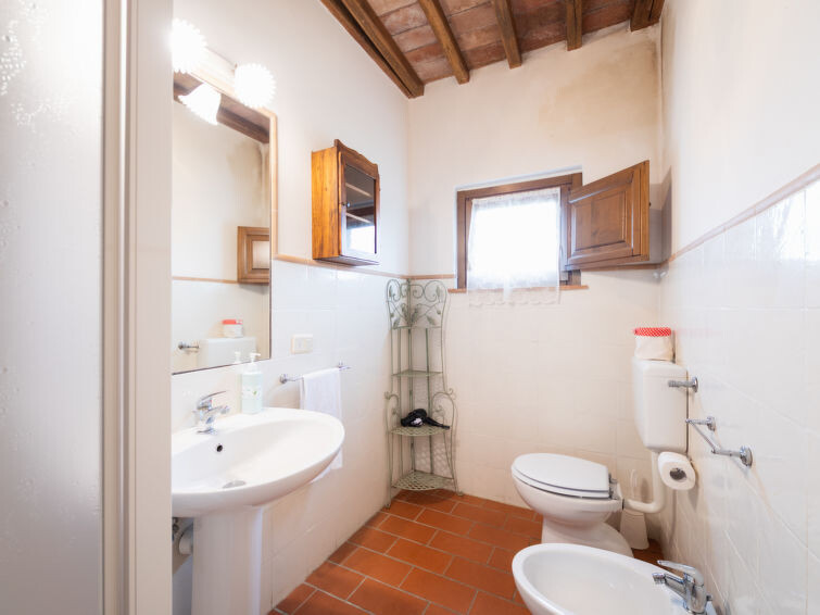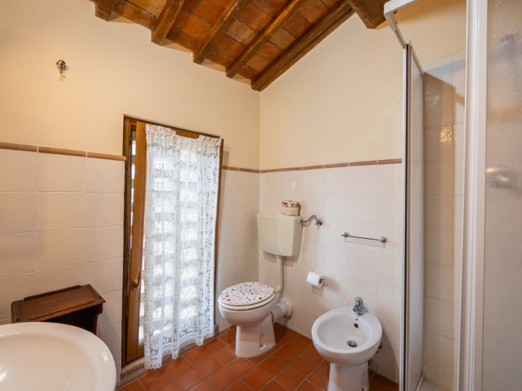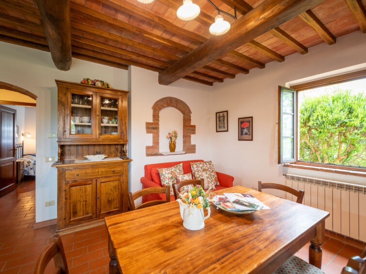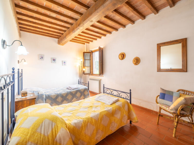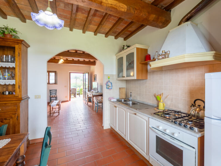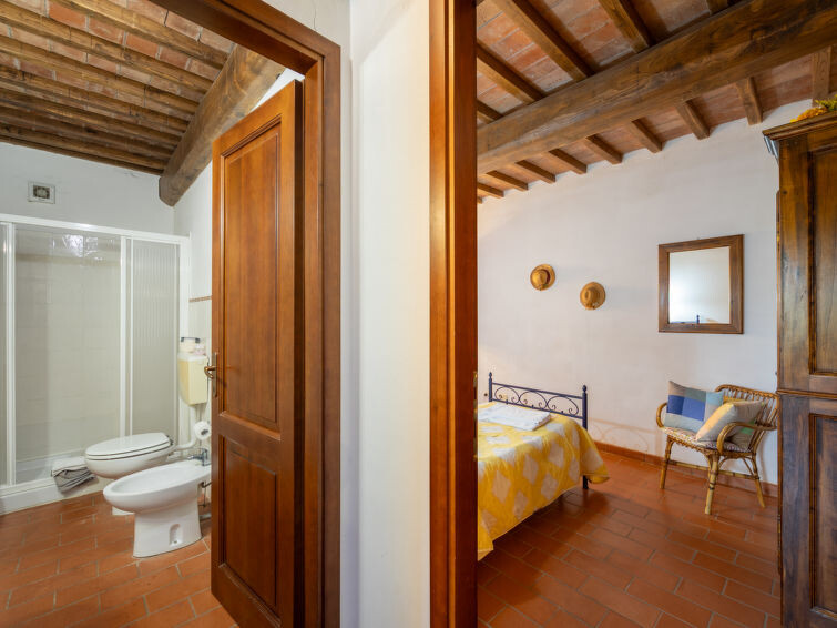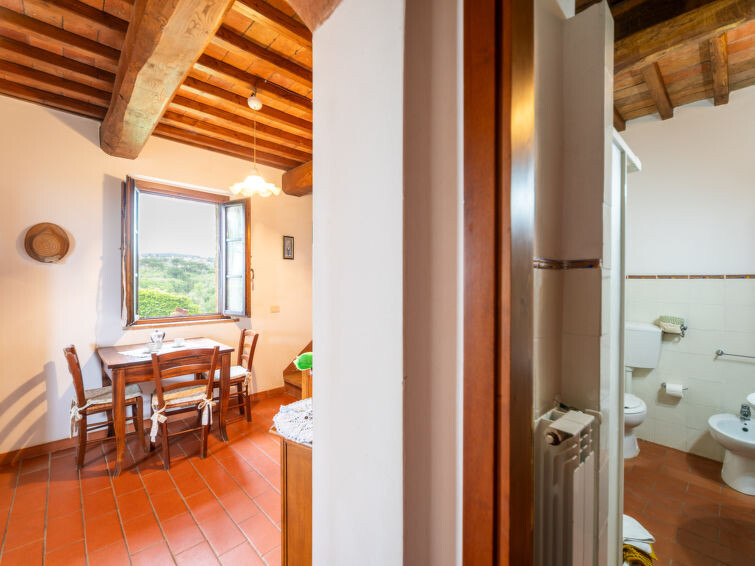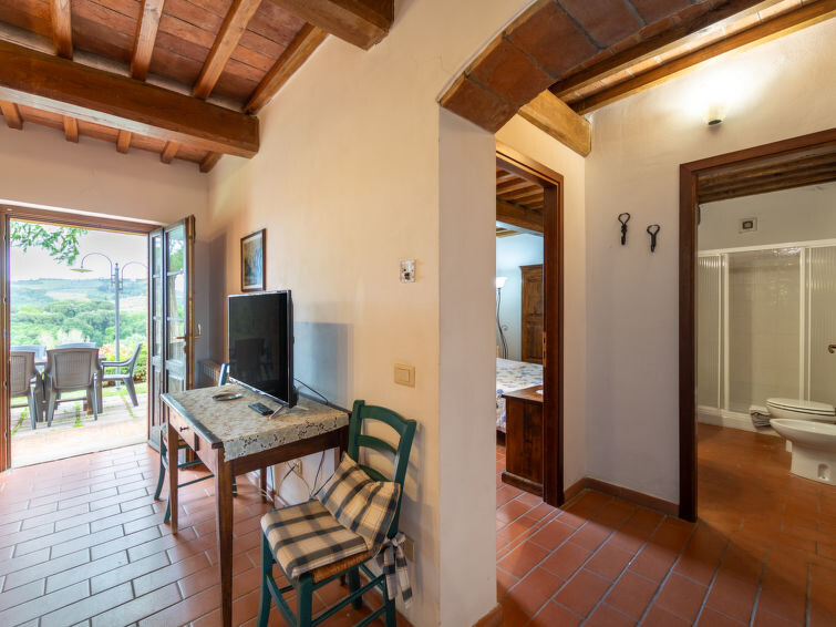 Casa Baccelli, een oude boerderij verdeeld in zeven appartementen, waarvan er één wordt bewoond door de eigenaren, wordt door ons voorgesteld als een vrijstaand huis. De zeven op de markt gebrachte appartementen communiceren alleen van buitenaf met elkaar en zijn elk uitgerust met een eigen kitchenette. Boerderij "Baccelli". 7 appartementen in de woning. 2 km van het centrum van Montaione, 15 km van het centrum van San Gimignano, 50 km van het centrum van Firenze, geïsoleerde, rustige, zonnige ligging op een heuvel, te midden van groen. Voor medegebruik: tuin (omheind). Voor alleengebruik: openluchtzwembad (15 x 9 m, 120 - 200 cm diepte, seizoensgebonden beschikbaarheid: 27.Apr. - 28.Sep.). Buitendouche, tuinmeubelen, barbecue. In het complex: Internet (WiFi), Verwarming ter plaatse te betalen, verwarming alleen beschikbaar van 01.Nov. - 07.Apr.. Toegangsweg tot aan het huis (800 m onverharde weg). Parkeerplaats bij het huis. Winkel 2 km, levensmiddelenwinkel 2 km, supermarkt 2 km, bushalte 2 km, treinstation "Castelfiornetino" 12 km. Golfterrein (18 holes) 17 km, tennis 5 km. Attracties in de buurt: Certaldo 19 km, San Miniato 30 km, San Casciano in Val di Pesa 40 km, Colle Val d'Elsa 40 km. De eigenaar woont op hetzelfde terrein.