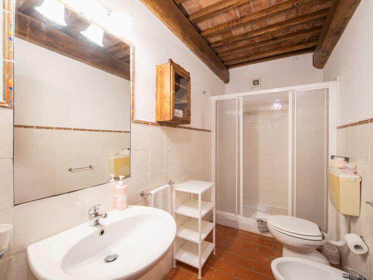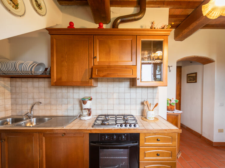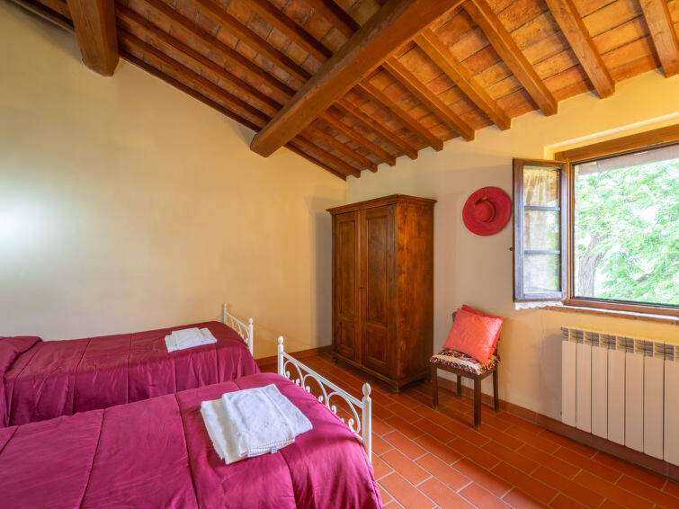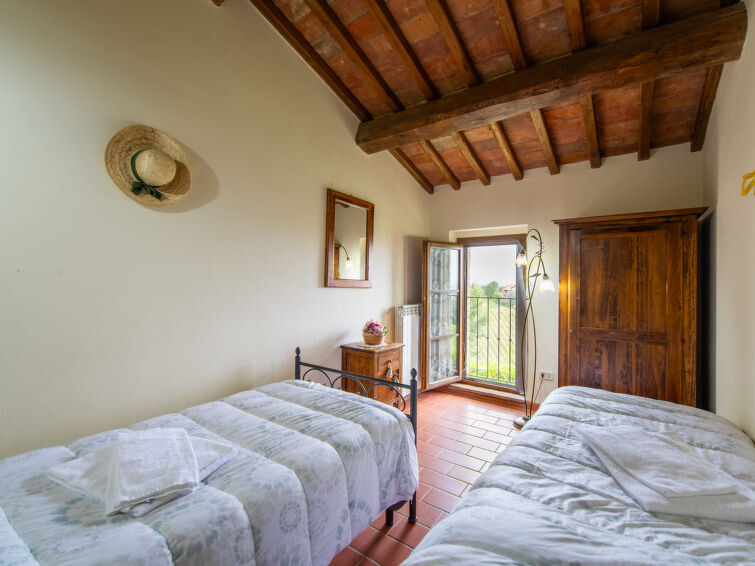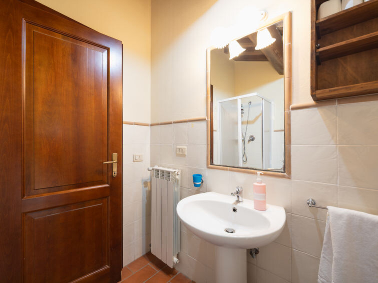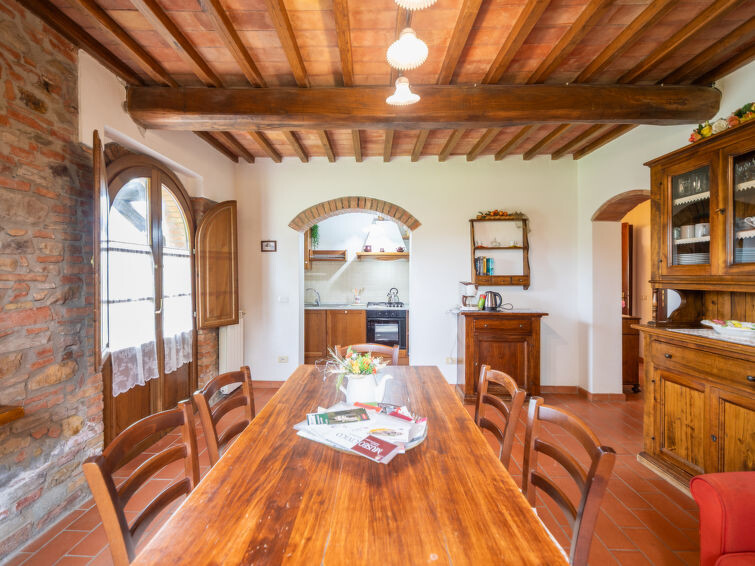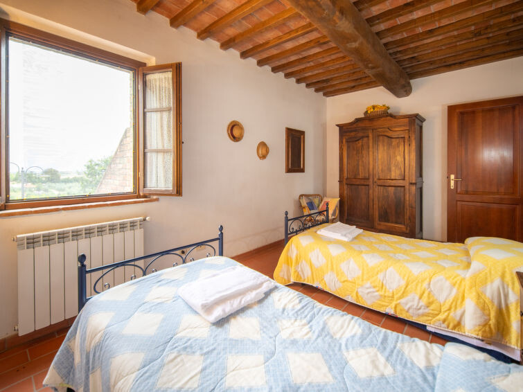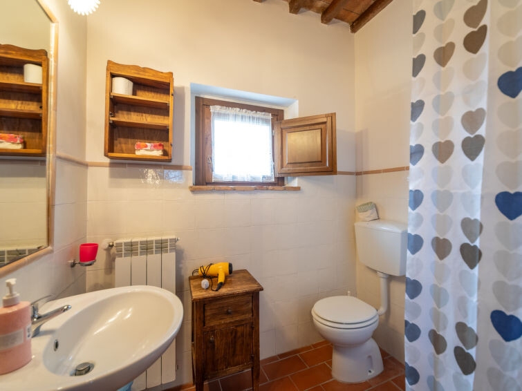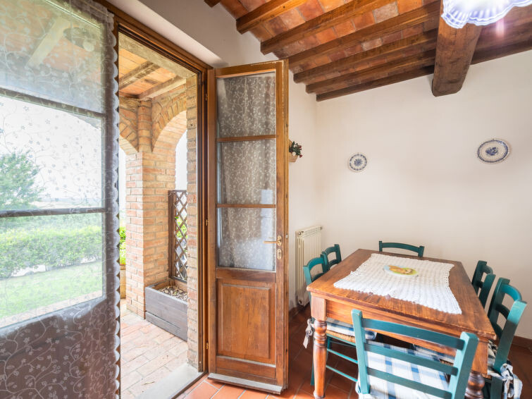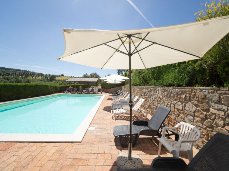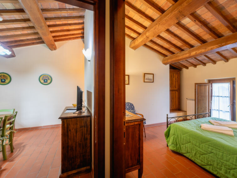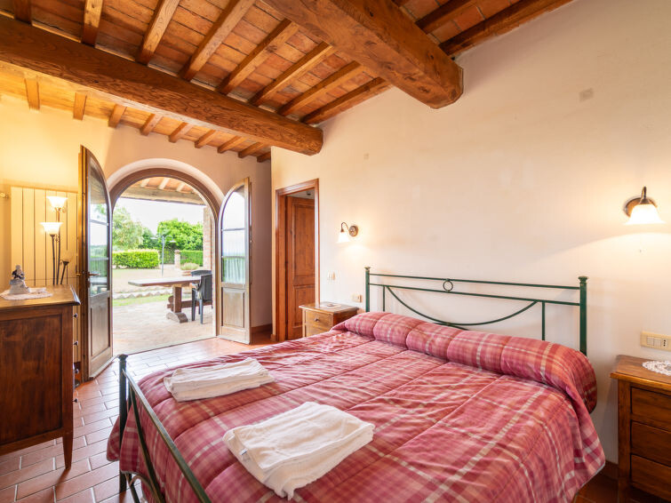 Casa Baccelli, een oude boerderij verdeeld in zeven appartementen, waarvan er één wordt bewoond door de eigenaren, wordt door ons voorgesteld als een vrijstaand huis. De zeven op de markt gebrachte appartementen communiceren alleen van buitenaf met elkaar en zijn elk uitgerust met een eigen kitchenette. Boerderij "Baccelli". 7 appartementen in de woning. 2 km van het centrum van Montaione, 15 km van het centrum van San Gimignano, 50 km van het centrum van Firenze, geïsoleerde, rustige, zonnige ligging op een heuvel, te midden van groen. Voor medegebruik: tuin (omheind). Voor alleengebruik: openluchtzwembad (15 x 9 m, 120 - 200 cm diepte, seizoensgebonden beschikbaarheid: 27.Apr. - 28.Sep.). Buitendouche, tuinmeubelen, barbecue. In het complex: Internet (WiFi), Verwarming ter plaatse te betalen, verwarming alleen beschikbaar van 01.Nov. - 07.Apr.. Toegangsweg tot aan het huis (800 m onverharde weg). Parkeerplaats bij het huis. Winkel 2 km, levensmiddelenwinkel 2 km, supermarkt 2 km, bushalte 2 km, treinstation "Castelfiornetino" 12 km. Golfterrein (18 holes) 17 km, tennis 5 km. Attracties in de buurt: Certaldo 19 km, San Miniato 30 km, San Casciano in Val di Pesa 40 km, Colle Val d'Elsa 40 km. De eigenaar woont op hetzelfde terrein.