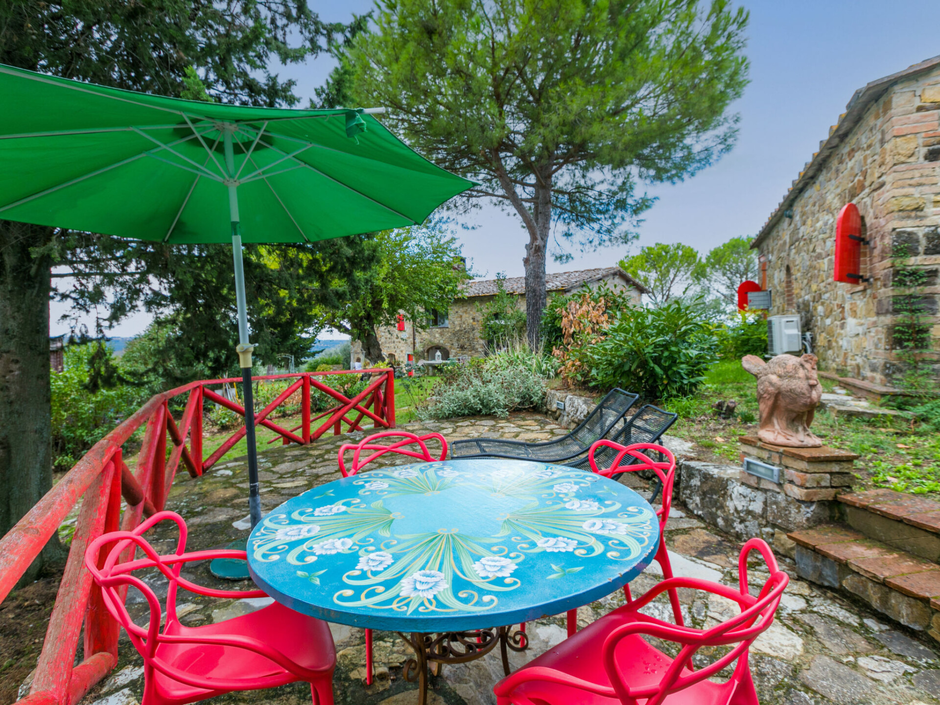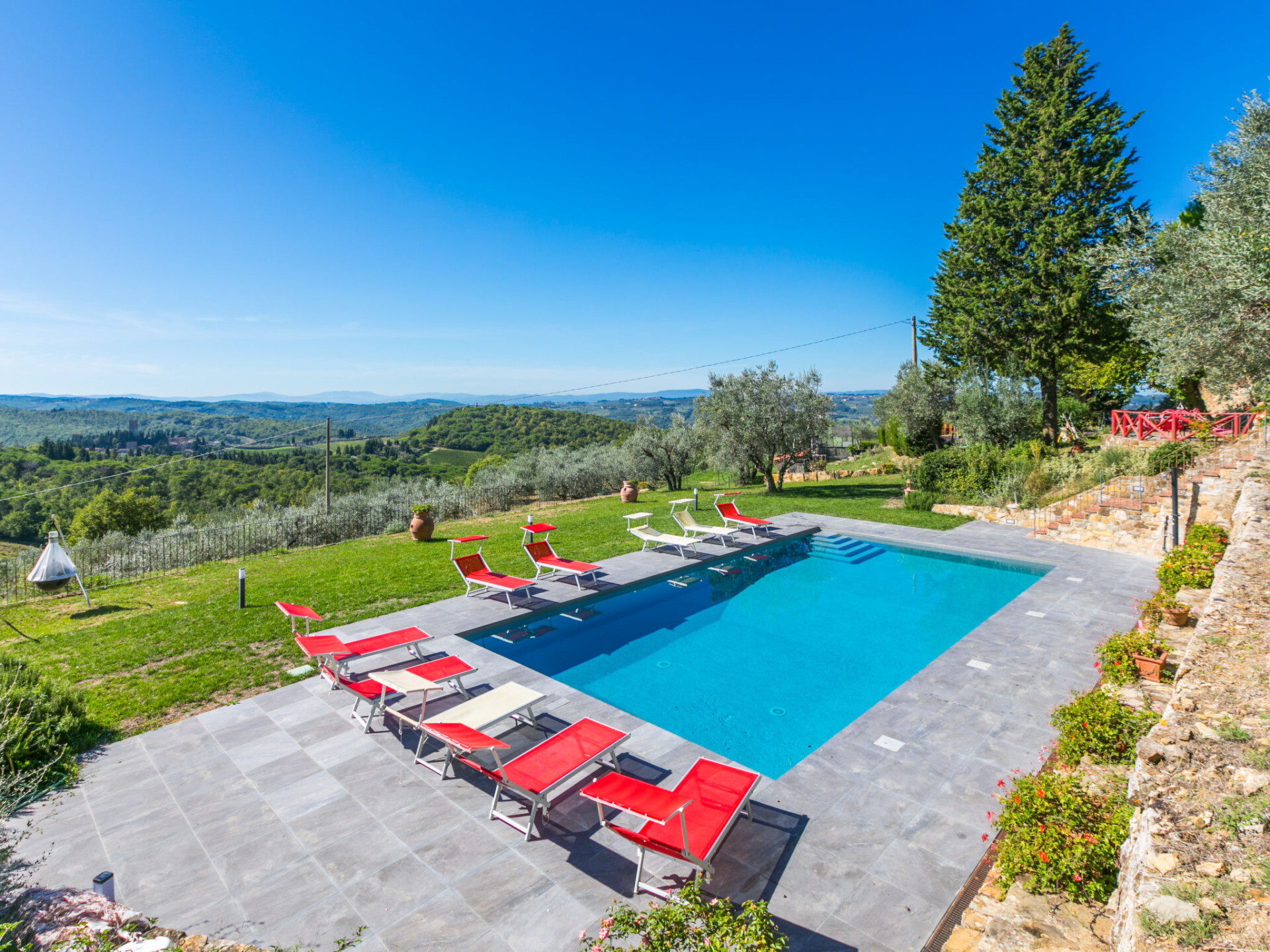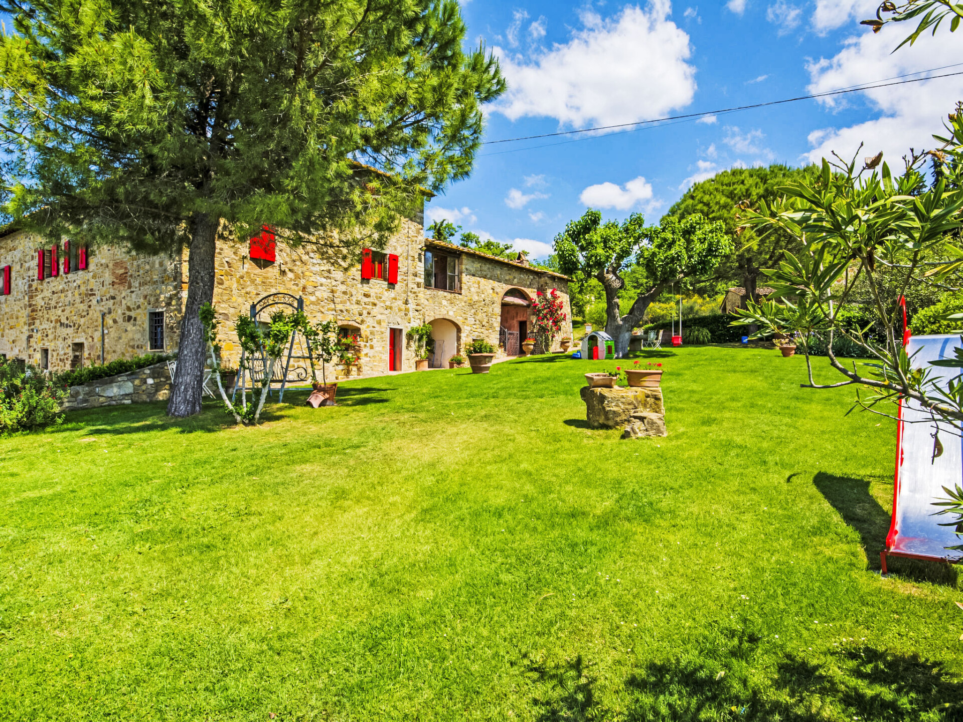 Mooi, gezellig landhuis "Badia a Passignano", omgeven door wijngaarden. Boven Badia a Passignano, 10 km van het centrum van San Donato in Poggio, 30 km van het centrum van Firenze, 40 km van het centrum van Siena, rustige, zonnige ligging op een heuvel, te midden van groen. Voor medegebruik: tuin met planten en bomen, openluchtzwembad (6 x 12 m, seizoensgebonden beschikbaarheid: 12.Apr. - 25.Okt. openingstijden zwembad: 08:00-21:00) met zout-elektrolyse. Buitendouche, tuinmeubelen, barbecue, kinderspeelplaats. In het huis: internetaansluiting, centrale verwarming, wasmachine, verwarming alleen beschikbaar van 01.Nov. - 15.Apr.. Kok op verzoek. 1 km lange toegangsweg (onverharde weg). Parkeerplaats op het terrein. Oplaadstation. Winkel 2 km, levensmiddelenwinkel 2 km, supermarkt 4 km, restaurant 2 km, bar 2 km, bushalte 2 km. Golfterrein (18 holes) 15 km, manege 2 km. Attracties in de buurt: Tavarnelle Val di Pesa 10 km, Barberino Val D'Elsa 12 km, Greve in Chianti 16 km, Castellina in Chianti 20 km, Radda in Chianti 21 km, San Gimingnano 32 km. De eigenaar woont op hetzelfde terrein. Vergelijkbare accommodaties kunnen worden geboekt.