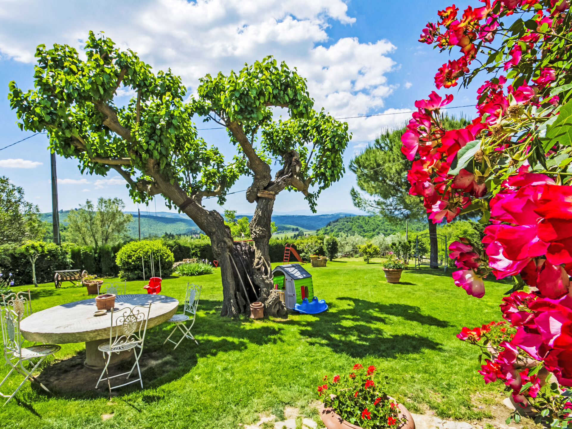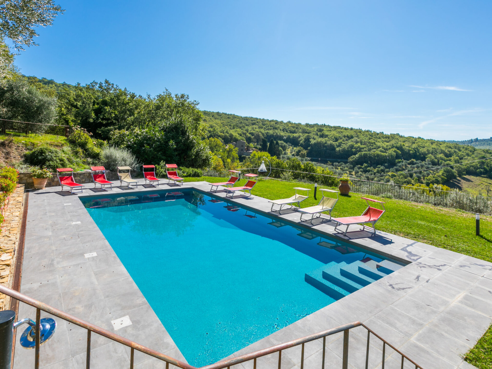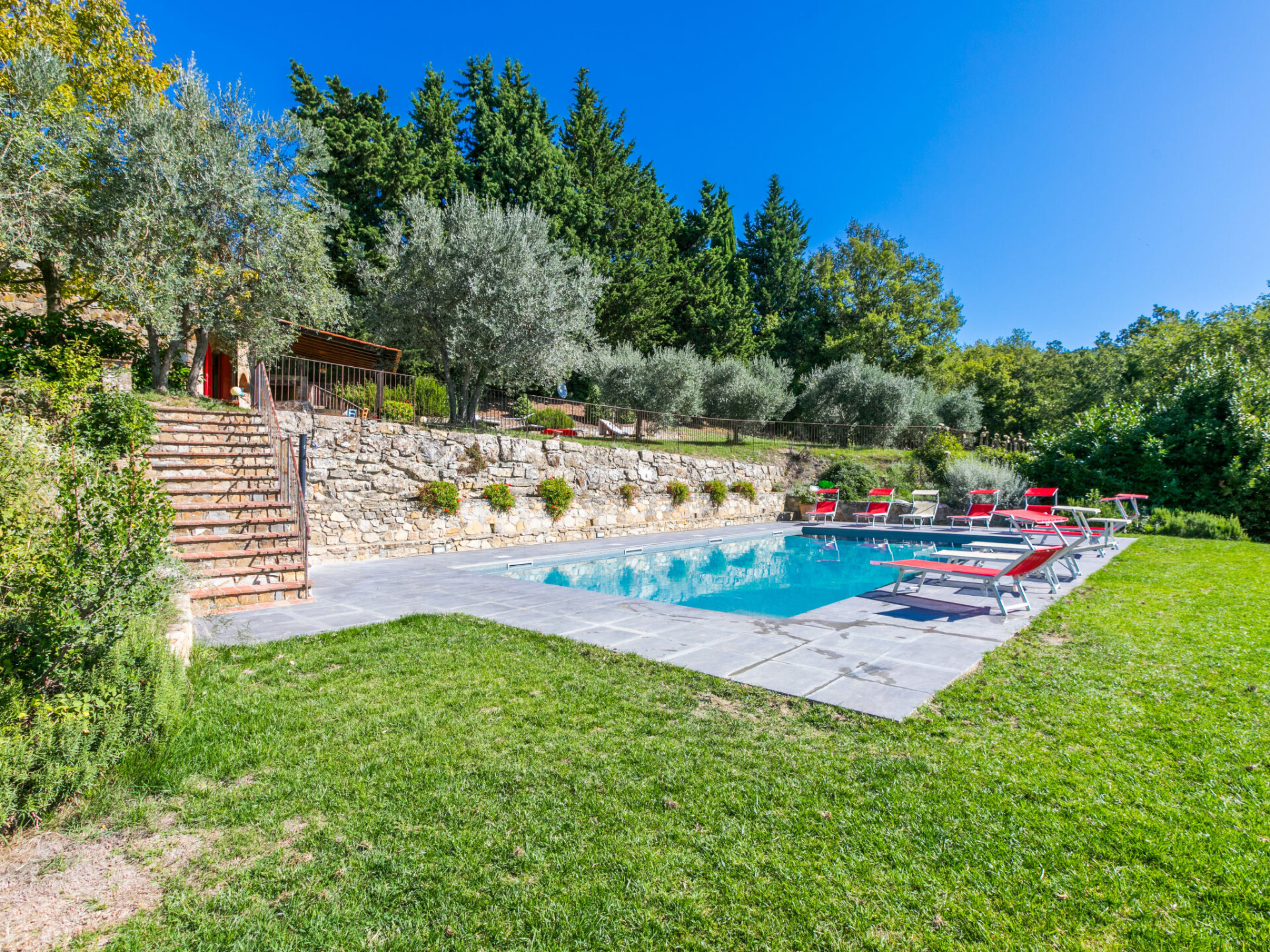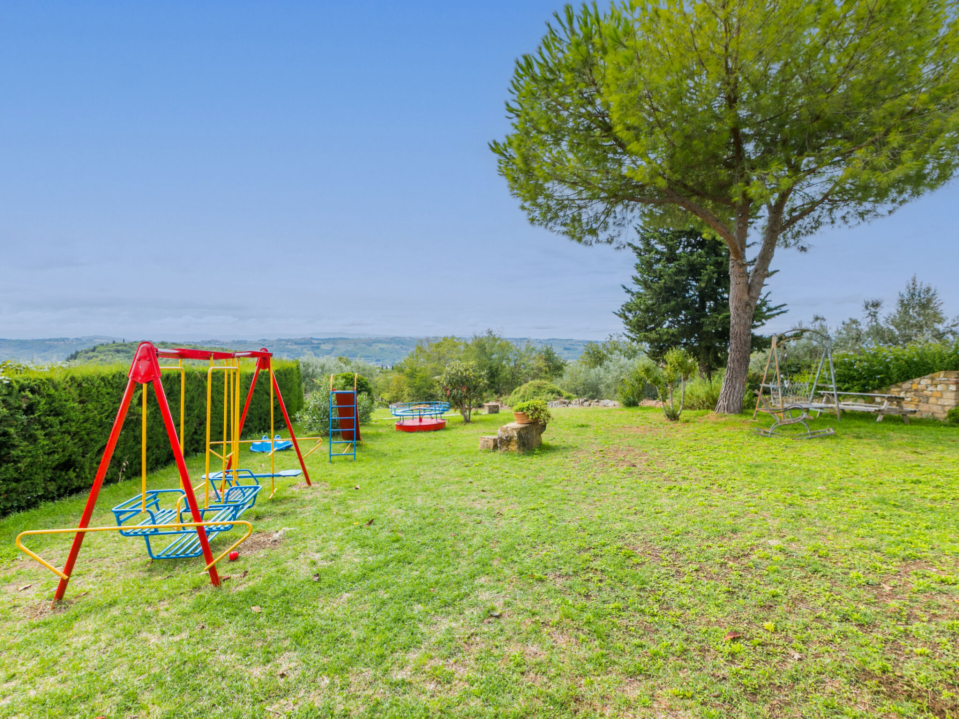 Mooi, gezellig landhuis "Badia a Passignano", omgeven door wijngaarden. Boven Badia a Passignano, 10 km van het centrum van San Donato in Poggio, 30 km van het centrum van Firenze, 40 km van het centrum van Siena, rustige, zonnige ligging op een heuvel, te midden van groen. Voor medegebruik: tuin met planten en bomen, openluchtzwembad (6 x 12 m, seizoensgebonden beschikbaarheid: 12.Apr. - 25.Okt. openingstijden zwembad: 08:00-21:00) met zout-elektrolyse. Buitendouche, tuinmeubelen, barbecue, kinderspeelplaats. In het huis: internetaansluiting, centrale verwarming, wasmachine, verwarming alleen beschikbaar van 01.Nov. - 15.Apr.. Kok op verzoek. 1 km lange toegangsweg (onverharde weg). Parkeerplaats op het terrein. Oplaadstation. Winkel 2 km, levensmiddelenwinkel 2 km, supermarkt 4 km, restaurant 2 km, bar 2 km, bushalte 2 km. Golfterrein (18 holes) 15 km, manege 2 km. Attracties in de buurt: Tavarnelle Val di Pesa 10 km, Barberino Val D'Elsa 12 km, Greve in Chianti 16 km, Castellina in Chianti 20 km, Radda in Chianti 21 km, San Gimingnano 32 km. De eigenaar woont op hetzelfde terrein. Vergelijkbare accommodaties kunnen worden geboekt.