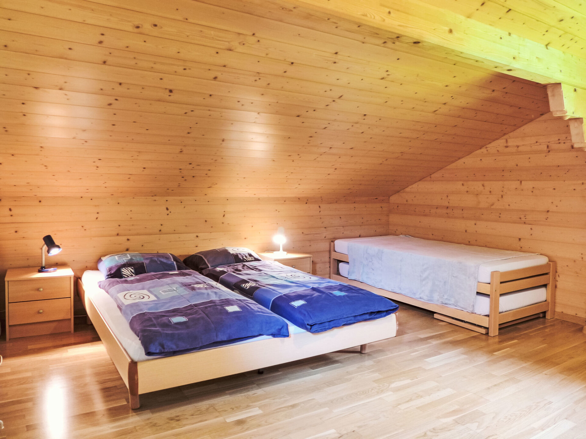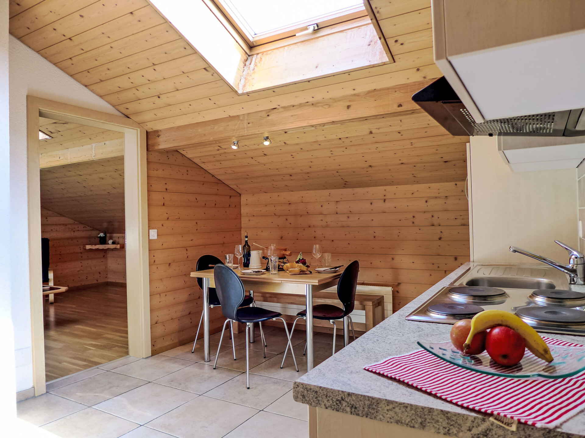 "Bühl", appartement 3-kamers op de bovenste verdieping. Licht, gedeeltelijk afgeschuinde daken, doelmatig en gezellig ingericht: woon-/slaapkamer met 1 divanbed (140 cm, lengte 200 cm). 1 groot kamer met 2 bedden (90 cm, lengte 200 cm), 1 2-pers bed (160 cm, lengte 200 cm). Groot woonkeuken (4-pits kookplaat, oven, broodrooster, waterkoker, diepvriezer, elektrische koffiemachine, pads voor de koffiemachine (Nespresso) extra, fondue Set (kaas)) met eethoek. Douche/WC. Zijdelings uitzicht op de bergen en het landschap. Ter beschikking: wasmachine, kinderbed tot 3 jaar, haardroger. Internet (Internet (WiFi), gratis). Niet rokers woning.