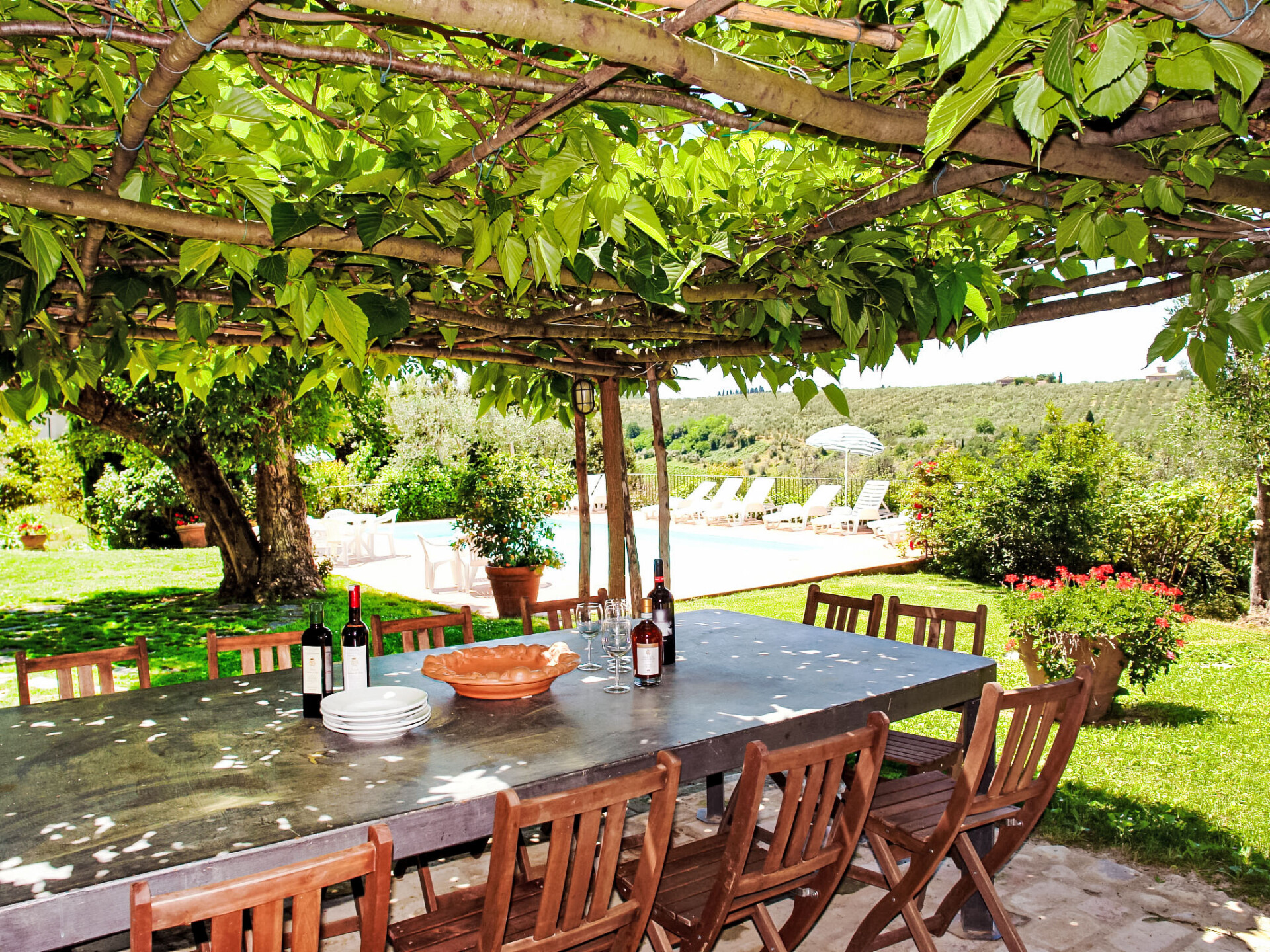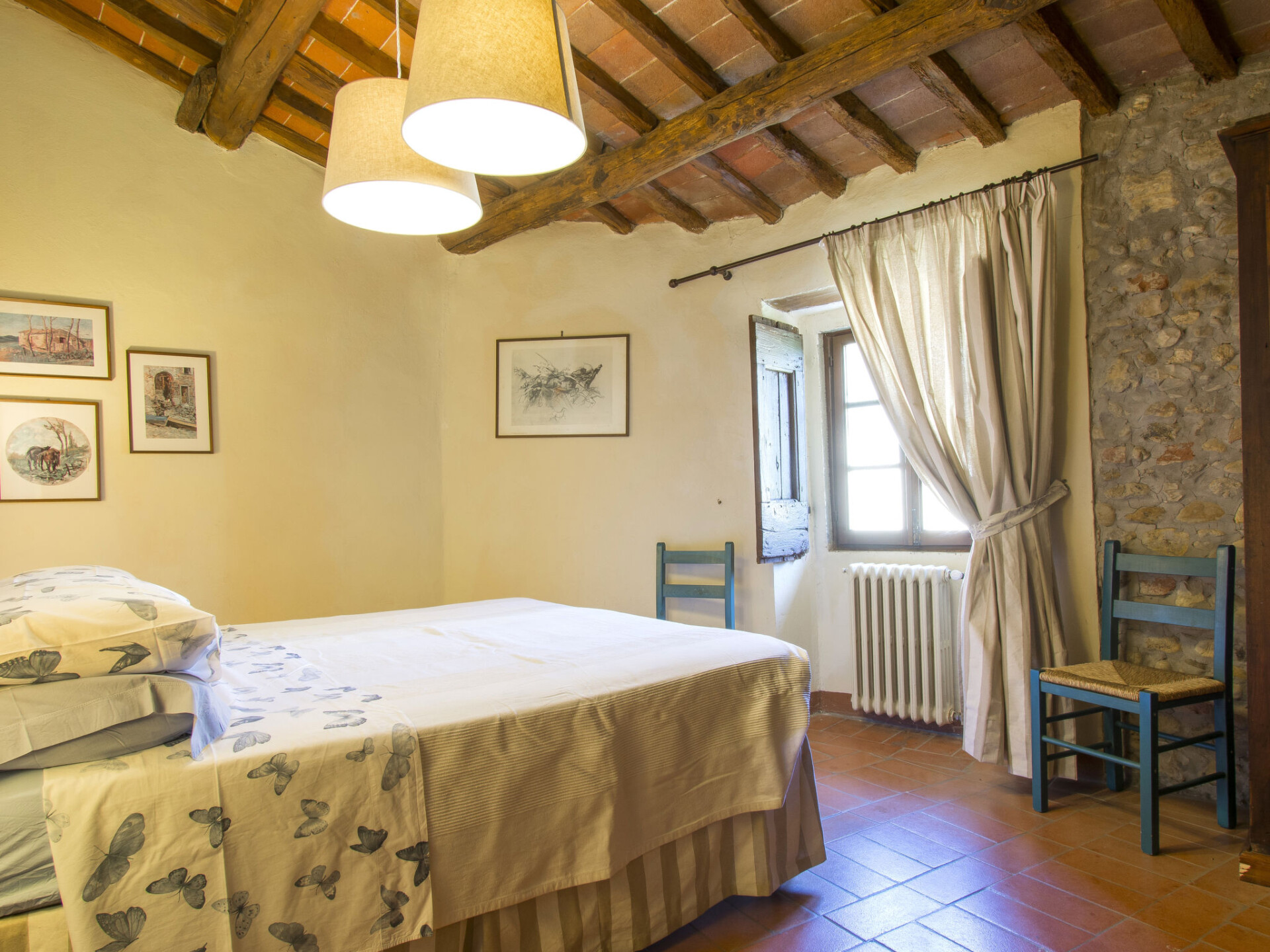 Casa Bulleri is een zorgvuldig gerenoveerd landhuis in San Casciano op een panoramische locatie in de Chiantistreek, temidden van wijngaarden en olijfbomen. De oorspronkelijke structuur dateert uit de 16e eeuw en hiervan bestaat nog een rechthoekige toren en een kleine kapel die nog in gebruik is. Op het landgoed van 30 hectaren bevinden zich de villa van de eigenaar en enkele bijgebouwen. Ter beschikking: een privé buitenruimte met mooie tuin en een zwembad met panoramisch uitzicht. Mogelijkheid om wijn, olijfolie en vinsanto te proeven en te kopen. Mooi landhuis "Bulleri", gerenoveerd. 4 km van het centrum van San Casciano, rustige, zonnige ligging op een heuvel, te midden van groen. Voor medegebruik: terrein 30 ha. Voor alleengebruik: groot tuin 2.000 m2 met planten, openluchtzwembad (5 x 10 m, 140 - 140 cm diepte, seizoensgebonden beschikbaarheid: 03.Apr. - 16.Okt.). Buitendouche, terras, tuinmeubelen, barbecue. In het huis: internetaansluiting, centrale verwarming, wasmachine, Verwarming ter plaatse te betalen (06.Nov. - 08.Apr.). Wissel van linnengoed (extra wissel te betalen). Wissel van handdoeken (extra wissel te betalen). Kok op verzoek (extra). Parkeerplaats op het terrein. Winkel 3 km, bushalte 4 km. Golfterrein 25 km, tennis 5 km. Attracties in de buurt: Firenze 22 km, Siena 55 km.