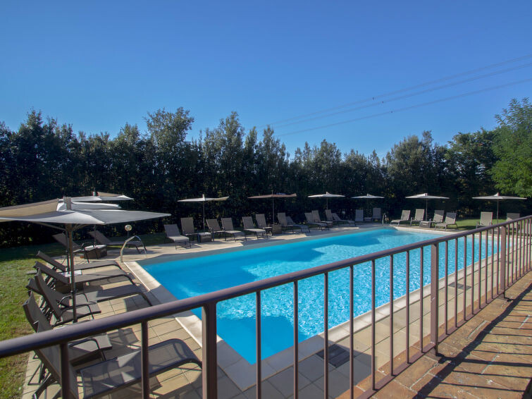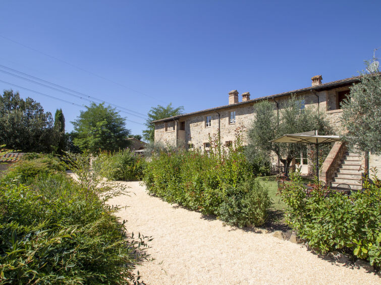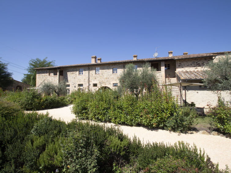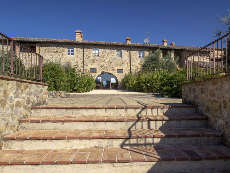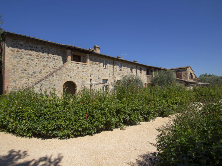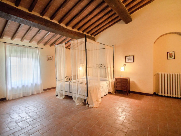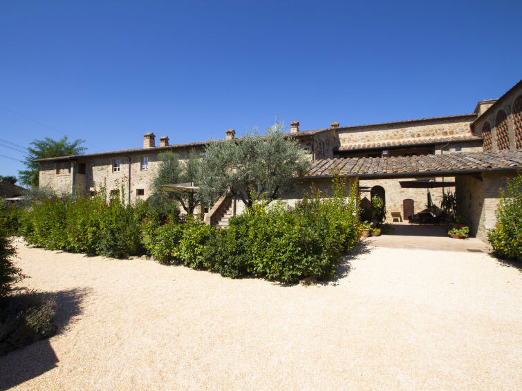 Oude natuurstenen boerderij, recent gerenoveerd, gelegen op het terrein van een groot omheind landbouwbedrijf. Op 30 km van Siena en 60 km van Florence, in het hart van het Chiantigebied. In het hoofdgedeelte van de boerderij zijn 8 appartementen gerealiseerd, alle bij ons in de verhuur en gerenoveerd met behoud van authentieke kenmerken, zoals terracotta vloeren en plafonds met houten draagbalken. De gasten kunnen lange wandelingen en fietstochten maken en zonnen of vissen aan de oevers van twee grote meren rondom de boerderij. Gezamenlijke eetzaal voor proeverijen en kleine diners, kleine recepties en trouwerijen. Verkoop van producten zoals olijfolie extra vergine, wijn (Chianti Colli Senesi), vleeswaren en kaas, alle producten van het familiebedrijf. Elk appartement heeft een gemeubileerde buitenruimte. Kindvriendelijke, eenvoudige, comfortabele woonboerderij uit de 18e eeuw, gerenoveerd, omgeven door bomen en velden. 9 km van het centrum van Colle Val d'Elsa, 3 km van het centrum van Casole d'Elsa, 20 km van het centrum van San Gimignano, rustige ligging tegen een helling, te midden van groen. Voor medegebruik: terrein, openluchtzwembad (7 x 15 m, 120 - 160 cm diepte, seizoensgebonden beschikbaarheid: 03.Mei. - 03.Okt. openingstijden zwembad: 09:00-19:00) met trap. Buitendouche, barbecue. In het complex: receptie, restaurant, centrale verwarming, wasmachine (voor medegebruik, extra), Verwarming ter plaatse te betalen, verwarming alleen beschikbaar van 01.Nov. - 07.Apr.. Schoonmaak op verzoek (extra). Parkeerplaats bij het huis op het terrein. Winkel 3 km, levensmiddelenwinkel 3 km, supermarkt 9 km, restaurant 3 km, bushalte 2.5 km, treinstation "Poggibonsi" 20 km, zandstrand "Follonica" 80 km, thermaalbad "Rapolano Terme" 60 km. Tennis 15 km, manege 15 km. Attracties in de buurt: Casole d'Elsa 3 km, Monteriggioni 16 km, Volterra, Castellina in Chianti 26 km, San Donato in poggio 30 km, Radda in Chianti 37 km, Firenze 65 km. Auto noodzakelijk. Geschikt voor evenementen. Lokale verkoop van streekproducten. Vergelijkbare accommodaties kunnen worden geboekt.