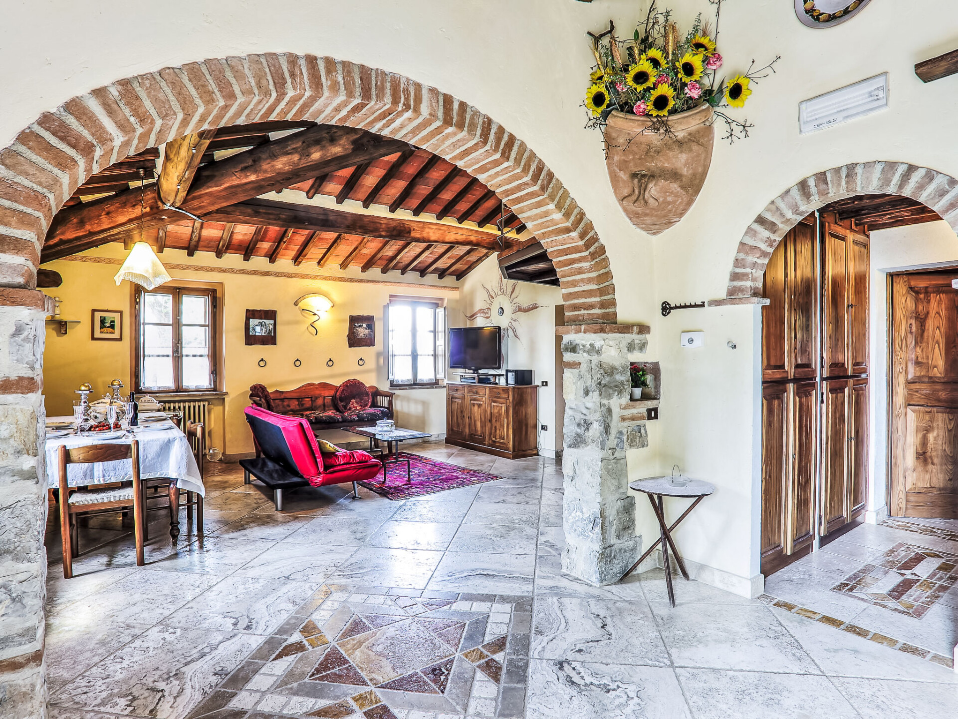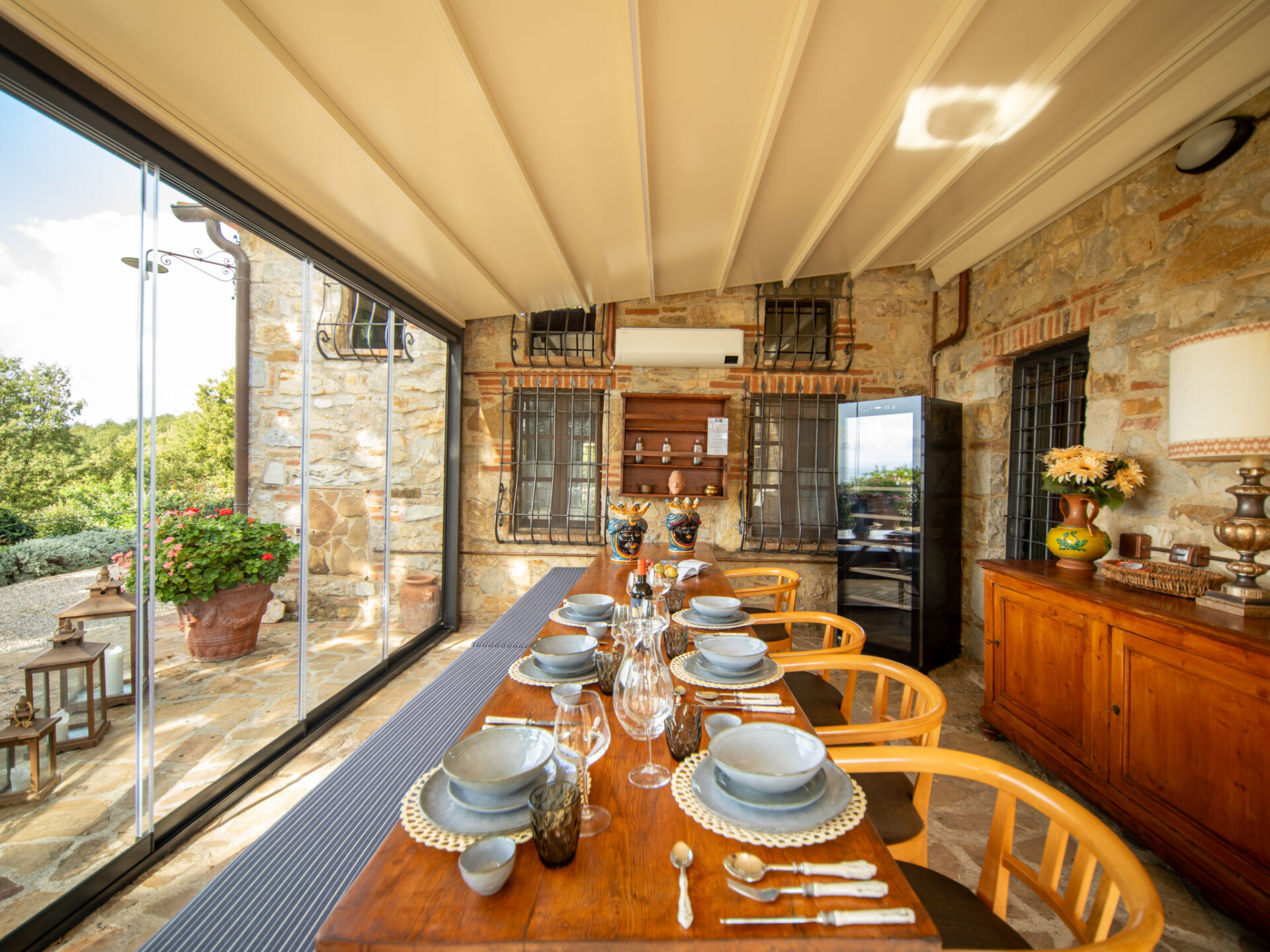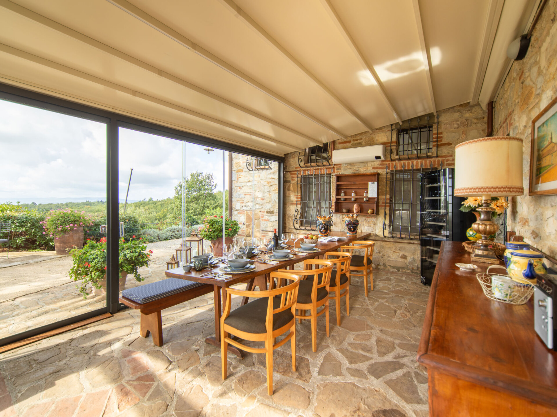 Casale il Poggino, gelegen in het hart van de Chianti Classico, bestaat uit twee eenheden, de boerderij die is verdeeld in drie appartementen (voor 14 personen) die met elkaar communiceren vanaf de buitenkant en het bijgebouw (voor 02 personen). Landhuis "Casale Il Poggino", 400 m boven zeeniveau. 2 huizen in de woning. 5.8 km van het centrum van Castellina in Chianti, 26 km van het centrum van Siena, 42 km van het centrum van Firenze, geïsoleerde, rustige, zonnige ligging op een heuvel, te midden van groen. Voor alleengebruik: tuin 1 ha (omheind), openluchtzwembad omheind (12 x 6 m, 120 - 240 cm diepte, seizoensgebonden beschikbaarheid: 01.Apr. - 31.Okt.). Buitendouche, tafeltennis, prieel, tuinmeubelen, barbecue. In het complex: fitnessruimte, bergruimte voor fietsen, Verwarming ter plaatse te betalen, verwarming alleen beschikbaar van 01.Nov. - 07.Apr., fietsverhuur. Beschikbaar: fietsen (4). Kok op verzoek (extra). Toegangsweg tot aan het huis (1.5 km onverharde weg). Overdekte parkeerplaats op het terrein. Levensmiddelenwinkel 5.8 km, supermarkt 5.8 km, restaurant 5.8 km, bushalte 3.5 km, thermaalbad "Rapolano Terme" 50 km. Attracties in de buurt: San Donato in Poggio 16 km, Radda in Chianti 16 km, Monteriggioni 18 km, Gaiole in Chianti 19 km, Greve in Chianti 25 km, San Gimignano 47 km. Gesloten residentie met een elektrische deur. Videobewaking in de buitenruimte.