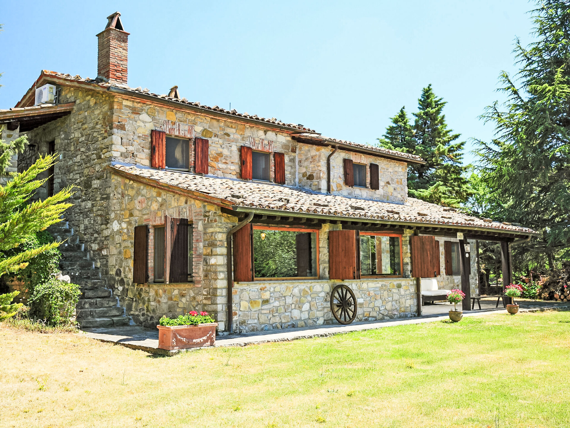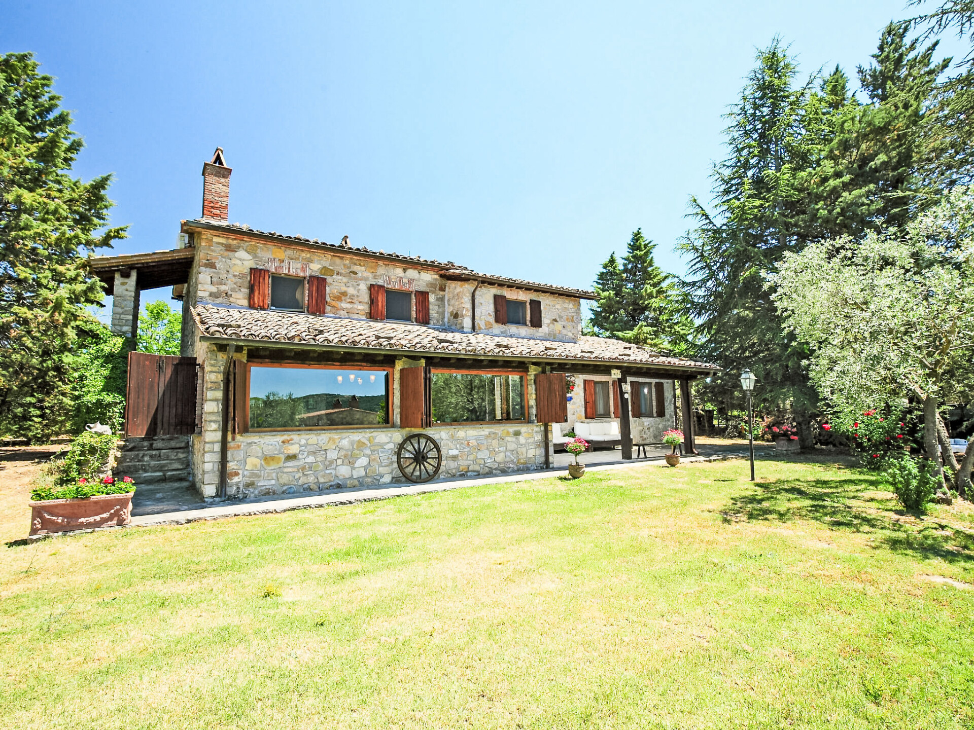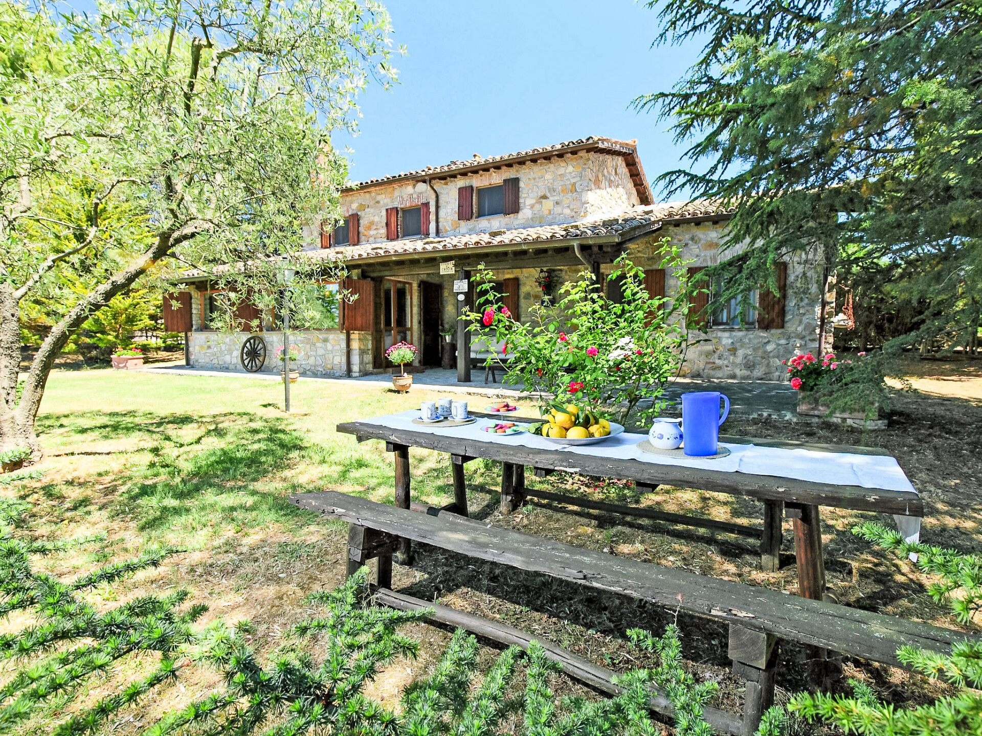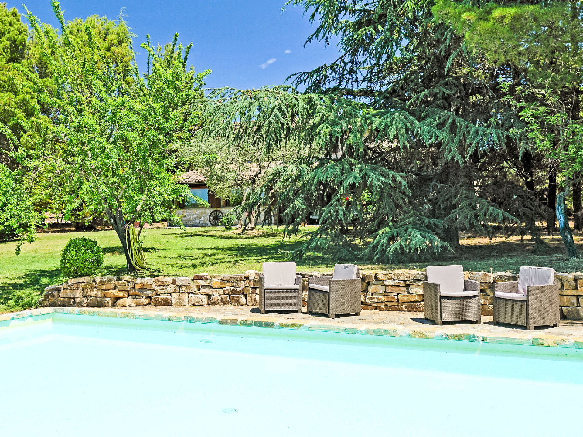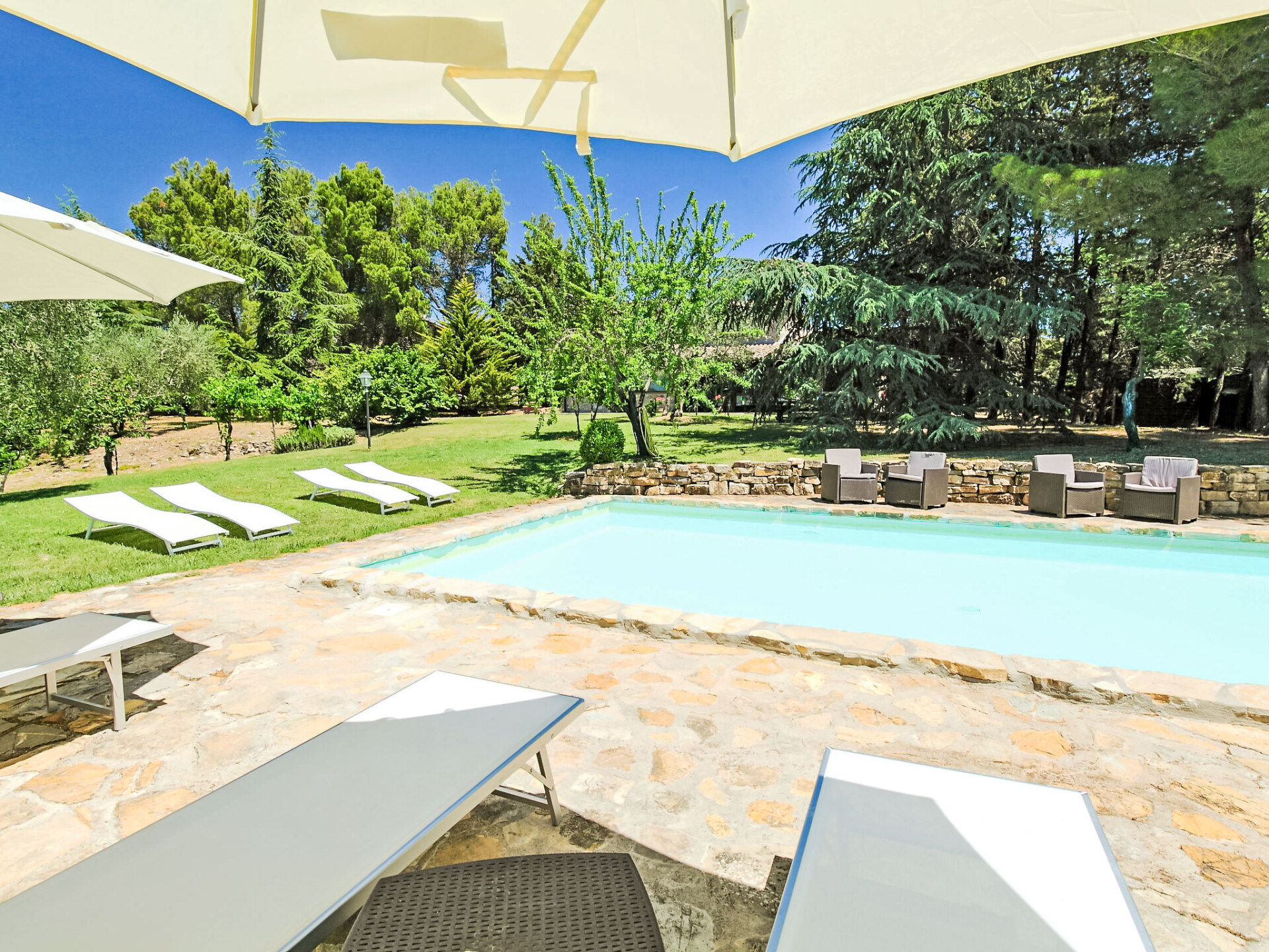 Landhuis "Casale Verciano", vrijstaand, omgeven door bomen. 2 km van het centrum van Parrano, geïsoleerde, rustige ligging, te midden van groen. Voor alleengebruik: terrein 5.000 m2 (omheind), mooie tuin ter ontspanning, openluchtzwembad (10 x 5 m, 140 cm diepte, seizoensgebonden beschikbaarheid: 06.Mei. - 30.Sep.). WC bij het zwembad, buitendouche, volleybal, tuinmeubelen, barbecue. In het huis: internetaansluiting, wasmachine. Wissel van linnengoed (extra wissel te betalen). Rommelige, smalle toegangsweg (2 km onverharde weg, bergweg). Parkeerplaats bij het huis. Supermarkt 10 km, restaurant 2 km, treinstation "Fabro Scalo" 10 km, thermaalbad "Chianciano" 38 km, meer (zwemmen) "Trasimeno" 45 km. Attracties in de buurt: Città Della Pieve 25 km, Cetona 26 km, Orvieto 50 km. Auto noodzakelijk. De eigenaar accepteert geen jeugdgroepen. Bij het zwembad staat een apart huis voorzien van een keuken / woonkamer met 2 slaapmogelijkheden. De ruimte is ideaal om te lunchen in de buurt van het zwembad. De villa bevindt zich in een afgelegen gebied langs een onverharde landelijke grindweg (2 km) (het is het beste om het rijden in lage auto's te vermijden).