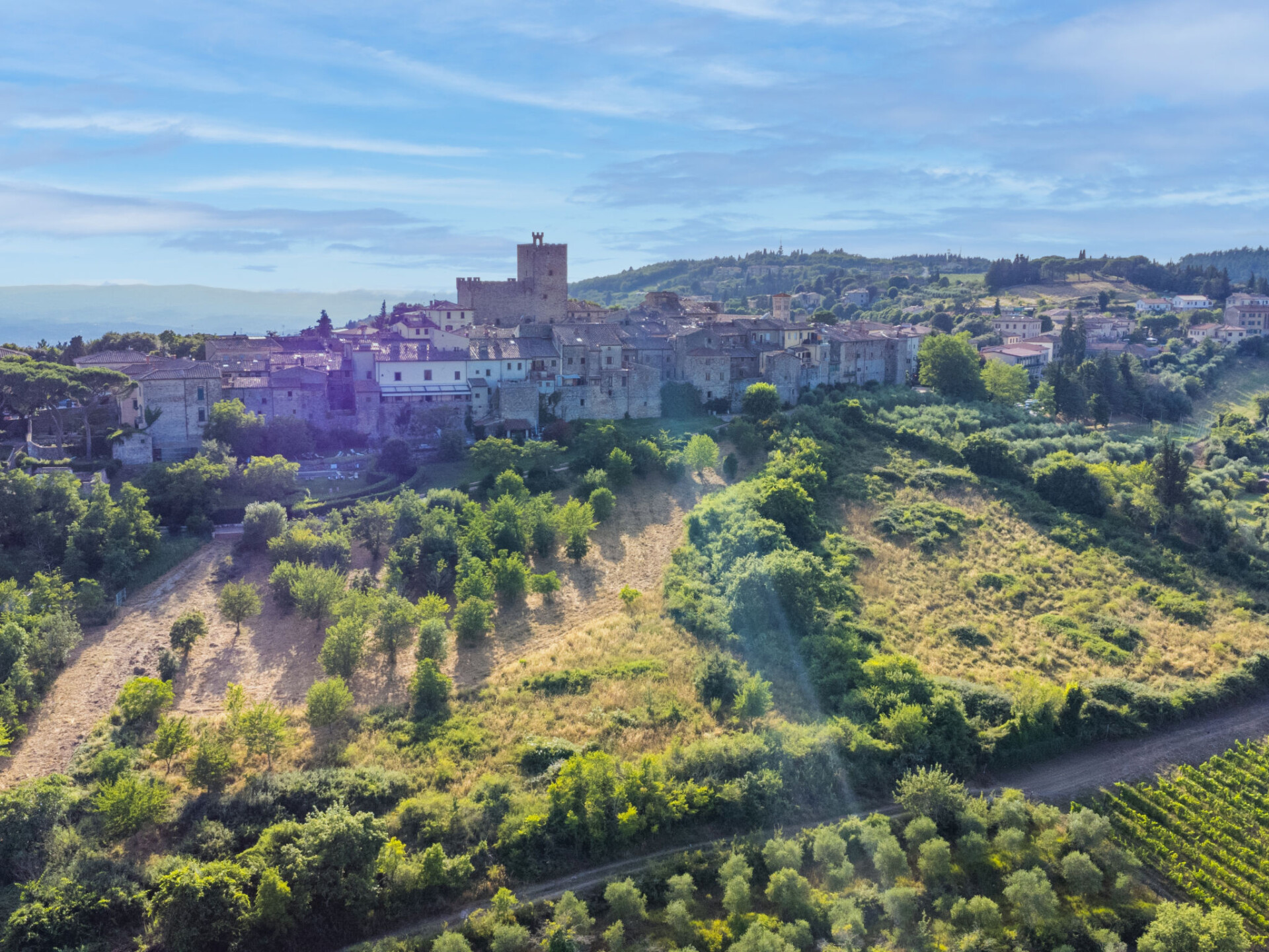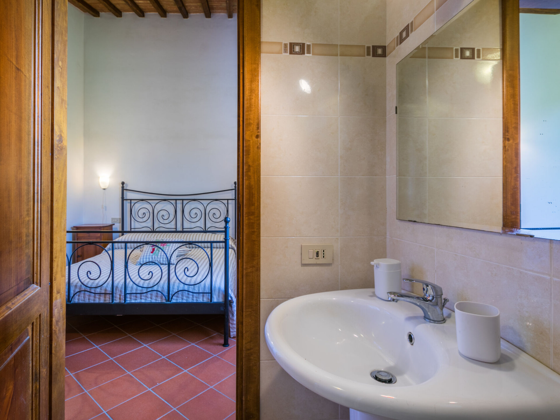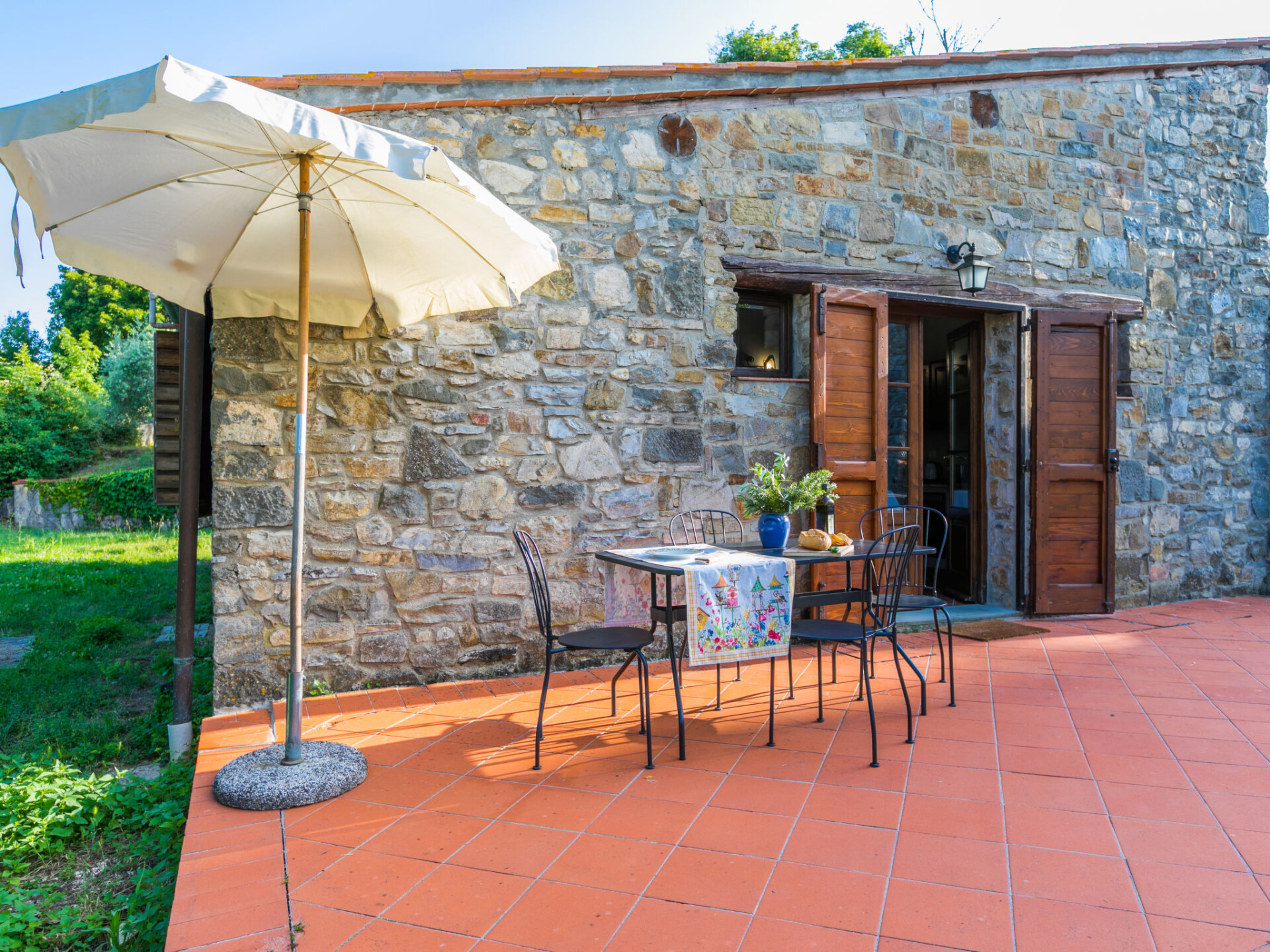 Castellina in Chisnti: Gezellig, historisch landhuis "Cerretino group house 14 sleeps", van 2 verdiepingen, omgeven door weiden, velden en wijngaarden. Huurobject bestaande uit hoofd-/ bijgebouw, 1 km van het centrum van Castellina in Chisnti, zonnige ligging, 200 m van de bosrand, te midden van groen. Voor alleengebruik: wild terrein, openluchtzwembad (6 x 12 m, 100 - 180 cm diepte, seizoensgebonden beschikbaarheid: 15.Mei. - 15.Okt.). Buitendouche, terras, tuinmeubelen, barbecue, onderhoud zwembad door de eigenaar/tuinman. In het huis: centrale verwarming, air-conditioning, wasmachine, droger. 300 m lange zeer rommelige, smalle toegangsweg tot aan het huis. Parkeerplaats bij het huis. Winkel 1 km, levensmiddelenwinkel 1 km, supermarkt 1 km, restaurant 1 km, bar 500 m, bakkerij 1 km, voetgangersgebied 1 km, bushalte 300 m, zandstrand "Cecina Mare" 88 km, thermaalbad "Rapolano Terme" 50 km. Wandelroutes 200 m vanaf het huis. Attracties in de buurt: Panzano in Chianti 13 km, Greve in Chianti 20 km, Gaiole in Chianti 20 km, Siena 26 km, San Gimignno 42 km, Firenze 50 km. Baby uitrusting (incl.). Groepen jongeren uitsluitend op aanvraag.