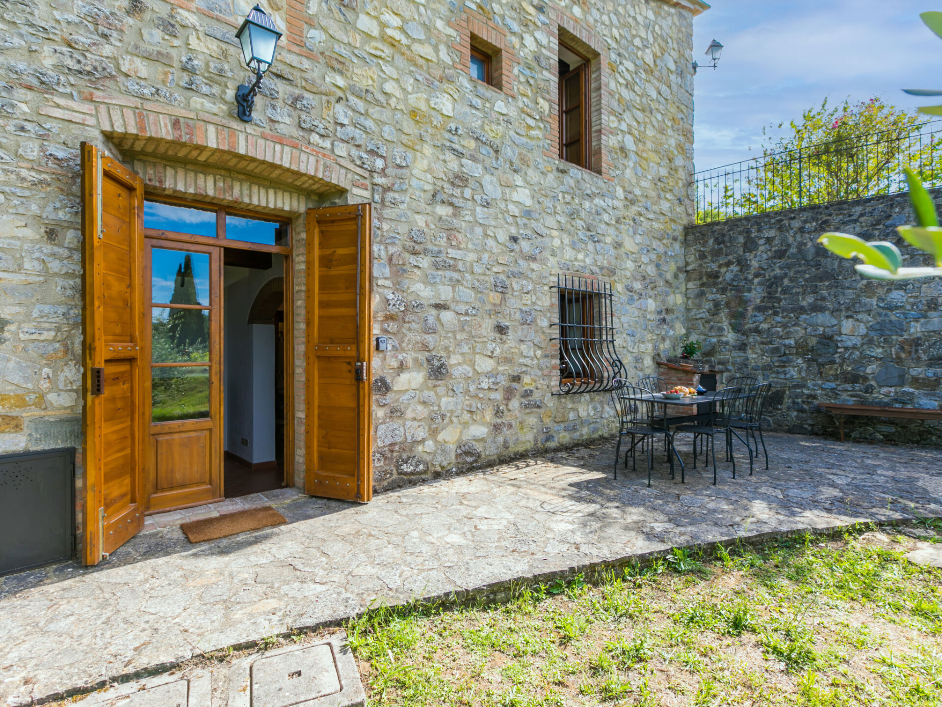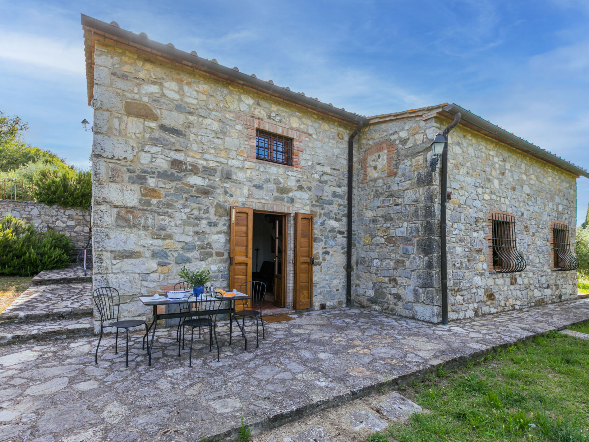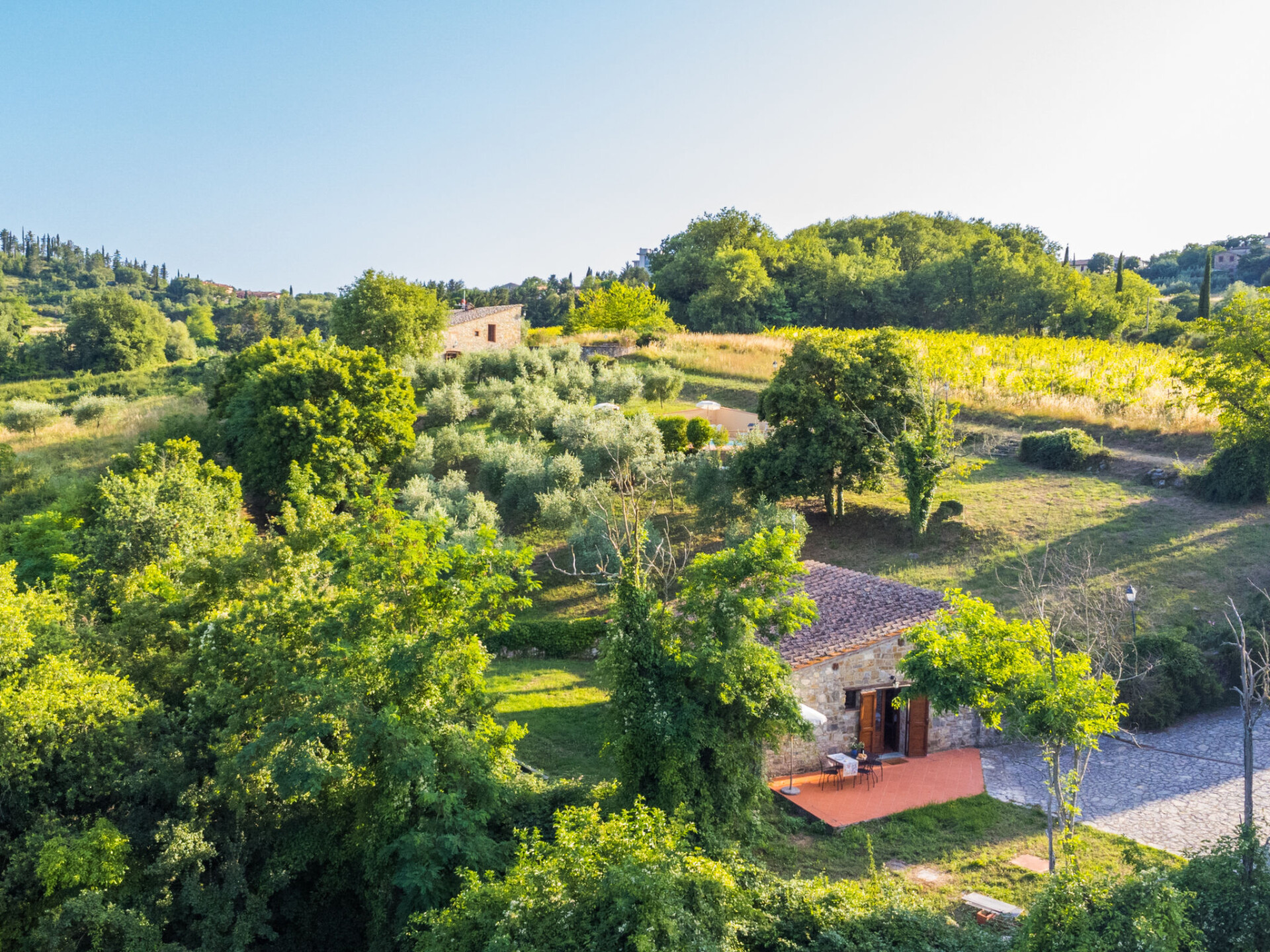 "Cerretino group house 14 sleeps", 10-kamers cottage 180 m2 op 2 verdiepingen. Ruim, gerenoveerd, smaakvol en gezellig ingericht: open woon-/eetkamer met eettafel en Sat-TV (Flatscreen TV), air-conditioning. Woonkamer met eettafel en air-conditioning. 2 2-pers. kamers, elke kamer heeft air-conditioning. Open woon-/eetkamer met eettafel, kookhoek en air-conditioning. 1 kamer met 2 bedden (80 cm, lengte 190 cm), air-conditioning. Open keuken (oven, afwasmachine, 8 kookpitten (vlammen), broodrooster, waterkoker, magnetron, elektrische koffiemachine) met eettafel. 2 douche/WC's. Bovenverdieping: 2 2-pers. kamers, elke kamer heeft douche/WC en air-conditioning. 1 2-pers. kamer met air-conditioning. 1 kleine 2-pers. kamer met afgeschuinde daken, zonder kast met air-conditioning. 2 douche/WC's. Gas-verwarming (extra), air-conditioning. Natuurstenen vloeren. Comfortabele inrichting in landelijke stijl. 3 terrassen, zithoek in de tuin. Terrasmeubelen, ligstoelen. Zeer mooi uitzicht op het landschap en Castellina in Chianti. Ter beschikking: wasmachine, droger, klamboe, kinderstoel tot 2 jaar, haardroger. Internet (WiFi, gratis). Parkeerplaats bij het huis. Niet rokers woning. Rookmelders, brandblusser. Geen interne verbinding tussen de aparte wooneenheden. Het zwembad genoemd in de beschrijving is voor privé gebruik. IT052005C2MZU7793N