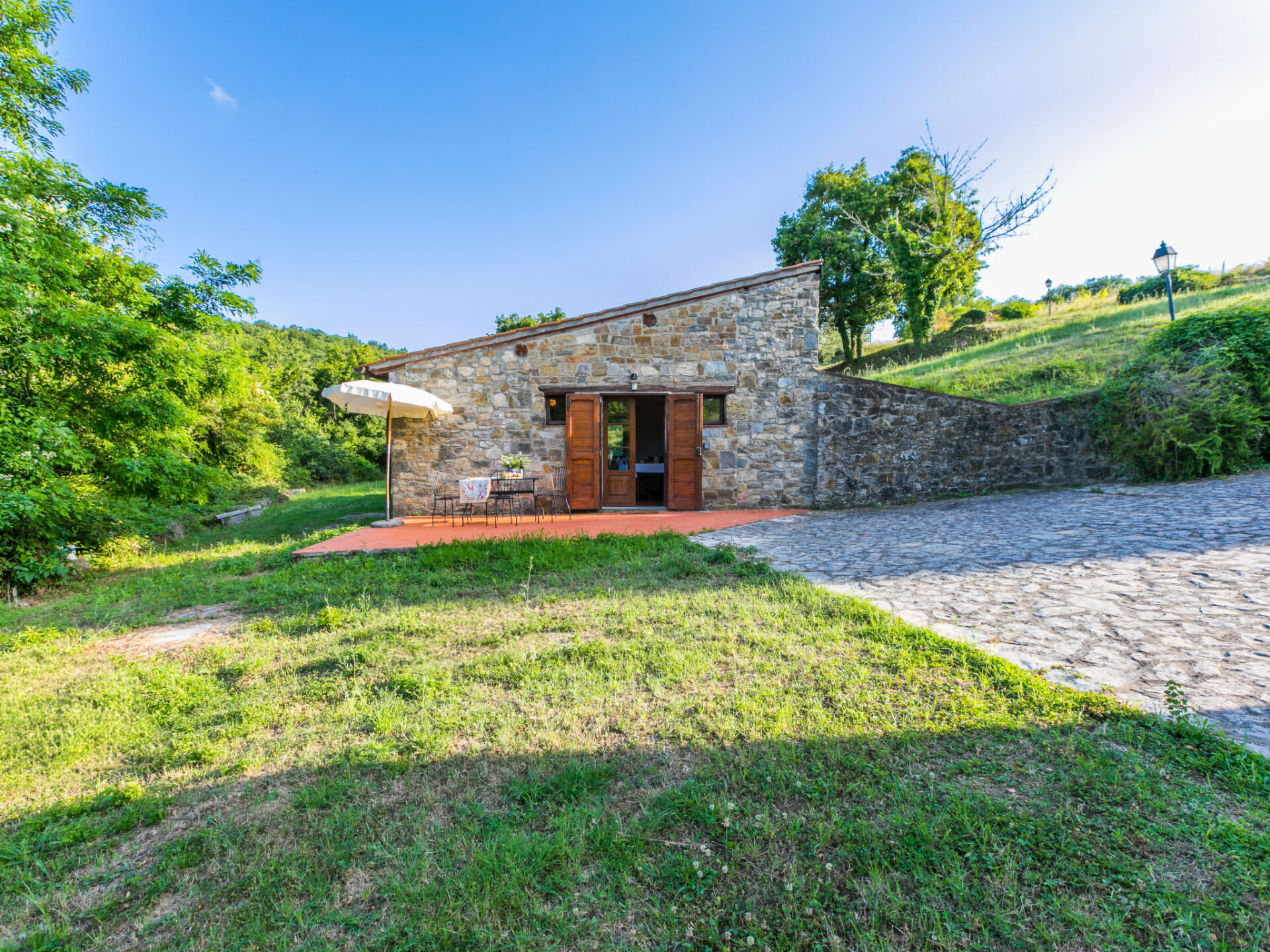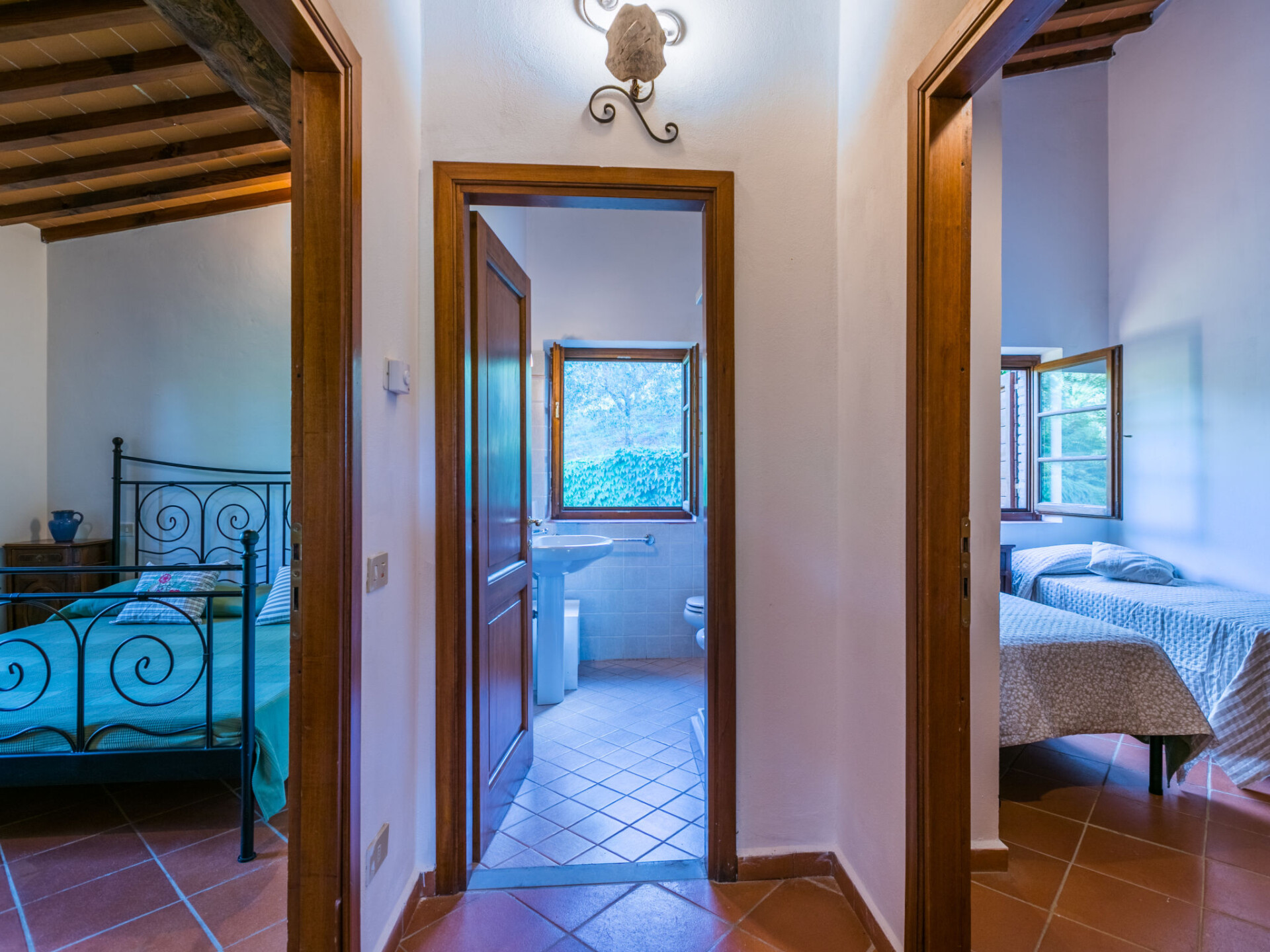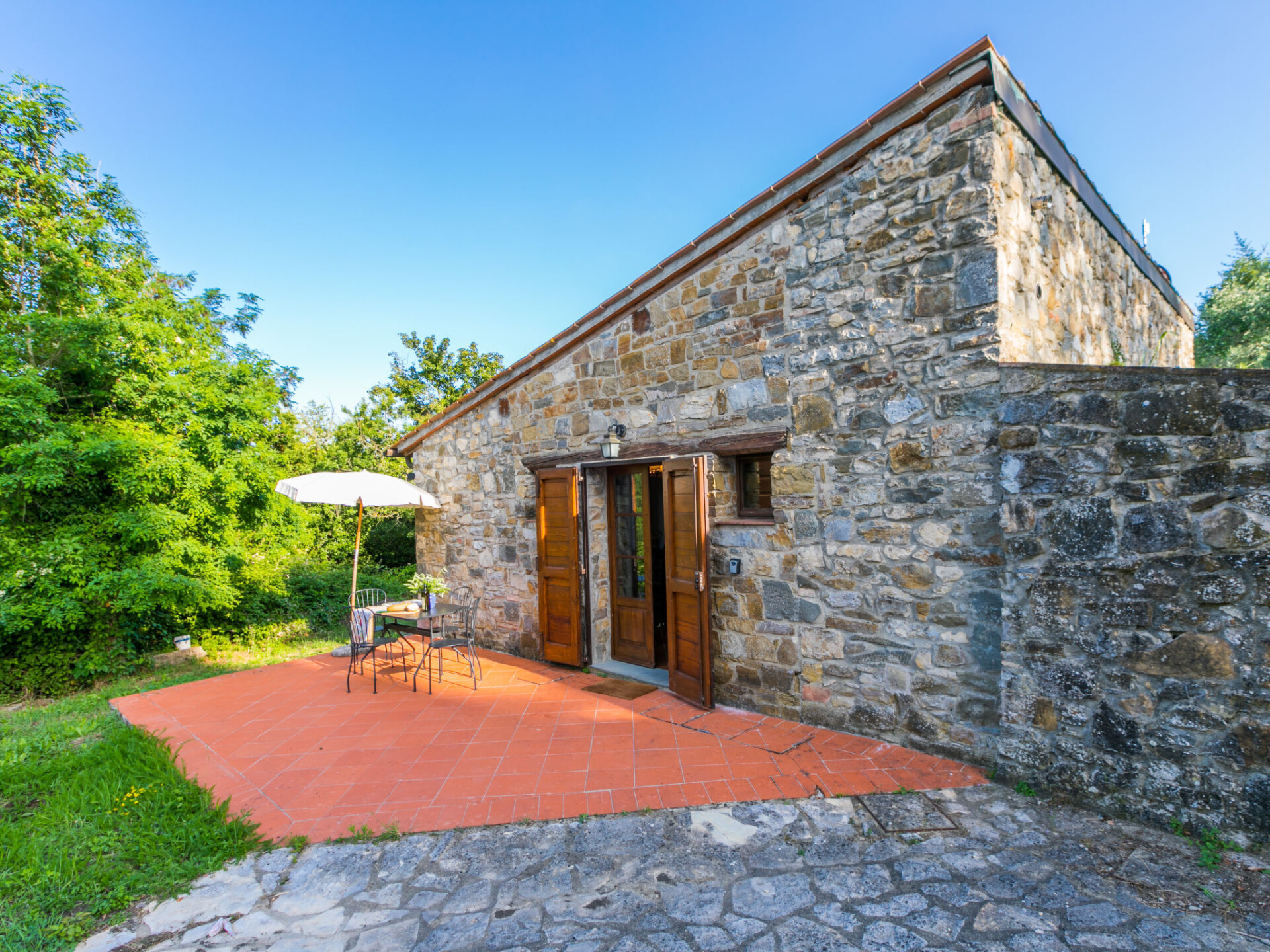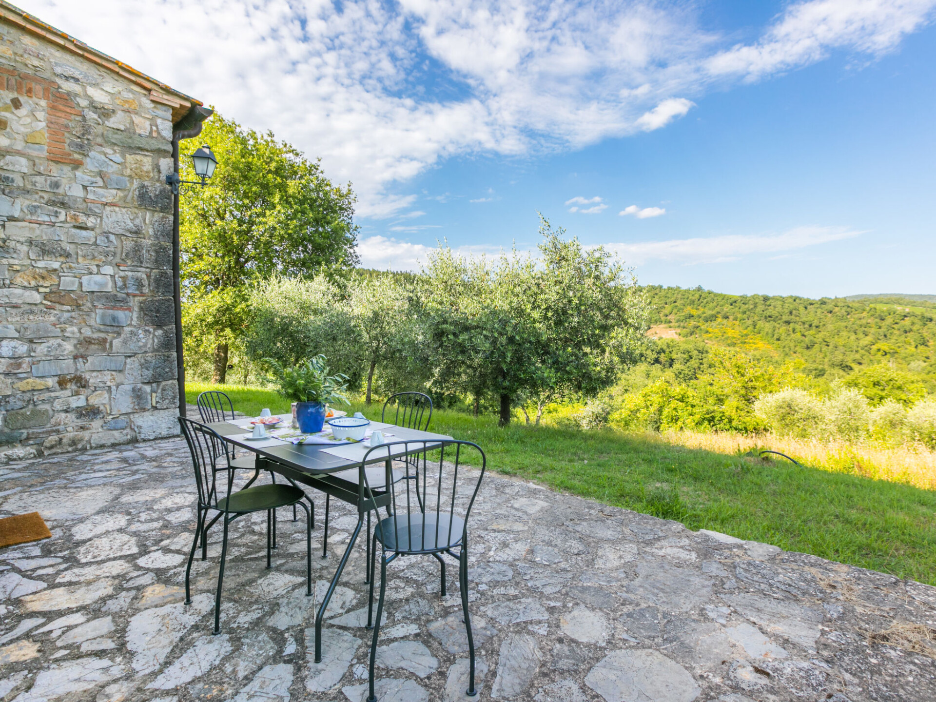 "Cerretino group house 14 sleeps", 10-kamers cottage 180 m2 op 2 verdiepingen. Ruim, gerenoveerd, smaakvol en gezellig ingericht: open woon-/eetkamer met eettafel en Sat-TV (Flatscreen TV), air-conditioning. Woonkamer met eettafel en air-conditioning. 2 2-pers. kamers, elke kamer heeft air-conditioning. Open woon-/eetkamer met eettafel, kookhoek en air-conditioning. 1 kamer met 2 bedden (80 cm, lengte 190 cm), air-conditioning. Open keuken (oven, afwasmachine, 8 kookpitten (vlammen), broodrooster, waterkoker, magnetron, elektrische koffiemachine) met eettafel. 2 douche/WC's. Bovenverdieping: 2 2-pers. kamers, elke kamer heeft douche/WC en air-conditioning. 1 2-pers. kamer met air-conditioning. 1 kleine 2-pers. kamer met afgeschuinde daken, zonder kast met air-conditioning. 2 douche/WC's. Gas-verwarming (extra), air-conditioning. Natuurstenen vloeren. Comfortabele inrichting in landelijke stijl. 3 terrassen, zithoek in de tuin. Terrasmeubelen, ligstoelen. Zeer mooi uitzicht op het landschap en Castellina in Chianti. Ter beschikking: wasmachine, droger, klamboe, kinderstoel tot 2 jaar, haardroger. Internet (WiFi, gratis). Parkeerplaats bij het huis. Niet rokers woning. Rookmelders, brandblusser. Geen interne verbinding tussen de aparte wooneenheden. Het zwembad genoemd in de beschrijving is voor privé gebruik. IT052005C2MZU7793N