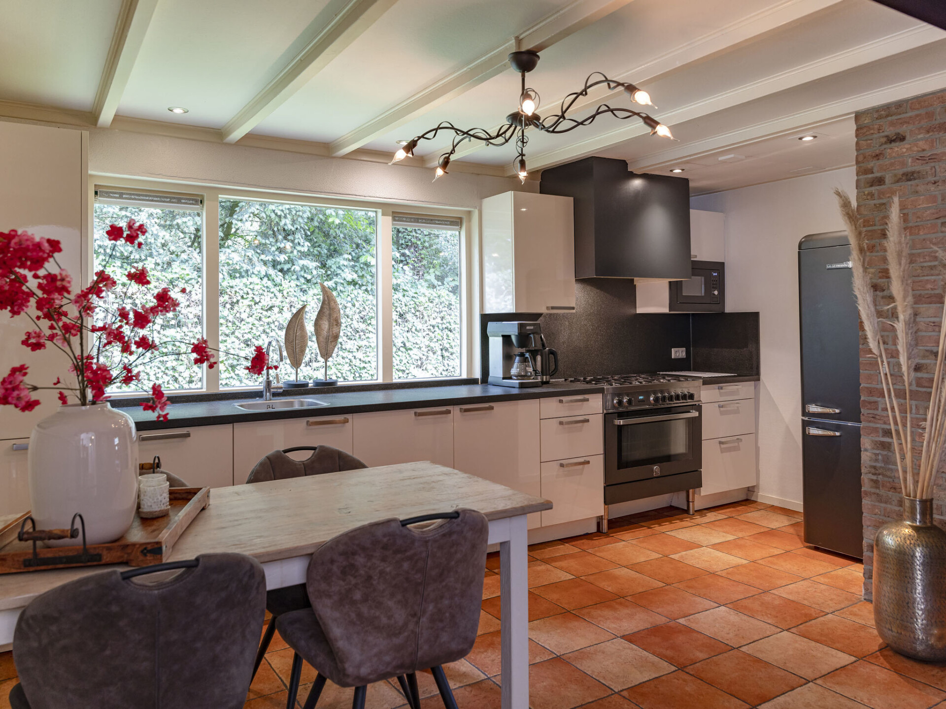 "Familieboerderij", woonboerderij 8-kamers 230 m2 op 2 verdiepingen. Comfortabel en rustiek ingericht: hal met aparte WC. Woon-/eetkamer met TV. 4 kamers, elke kamer heeft 2 bedden, wastafel en douche/WC. 1 kamer met 2 bedden, wastafel en zitbad. Keuken (6-pits kookplaat, oven, afwasmachine, waterkoker, magnetron, elektrische koffiemachine) met eettafel. Verwarming. Bovenverdieping: 2 kamers, elke kamer heeft 2 bedden, wastafel en douche/WC. Terras, tuin. Terrasmeubelen, bergruimte. Ter beschikking: wasmachine, droger, kinderstoel, kinderbed tot 3 jaar. Internet (WiFi, gratis). Niet rokers woning. Rookmelders. In de tuin bevindt zich een Finse Kota en een hottub voor prive gebruik.