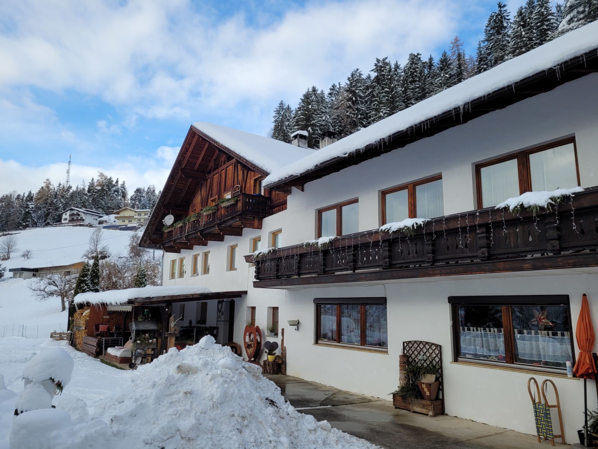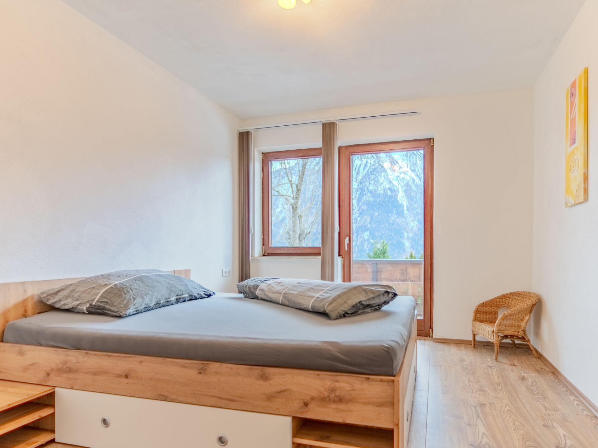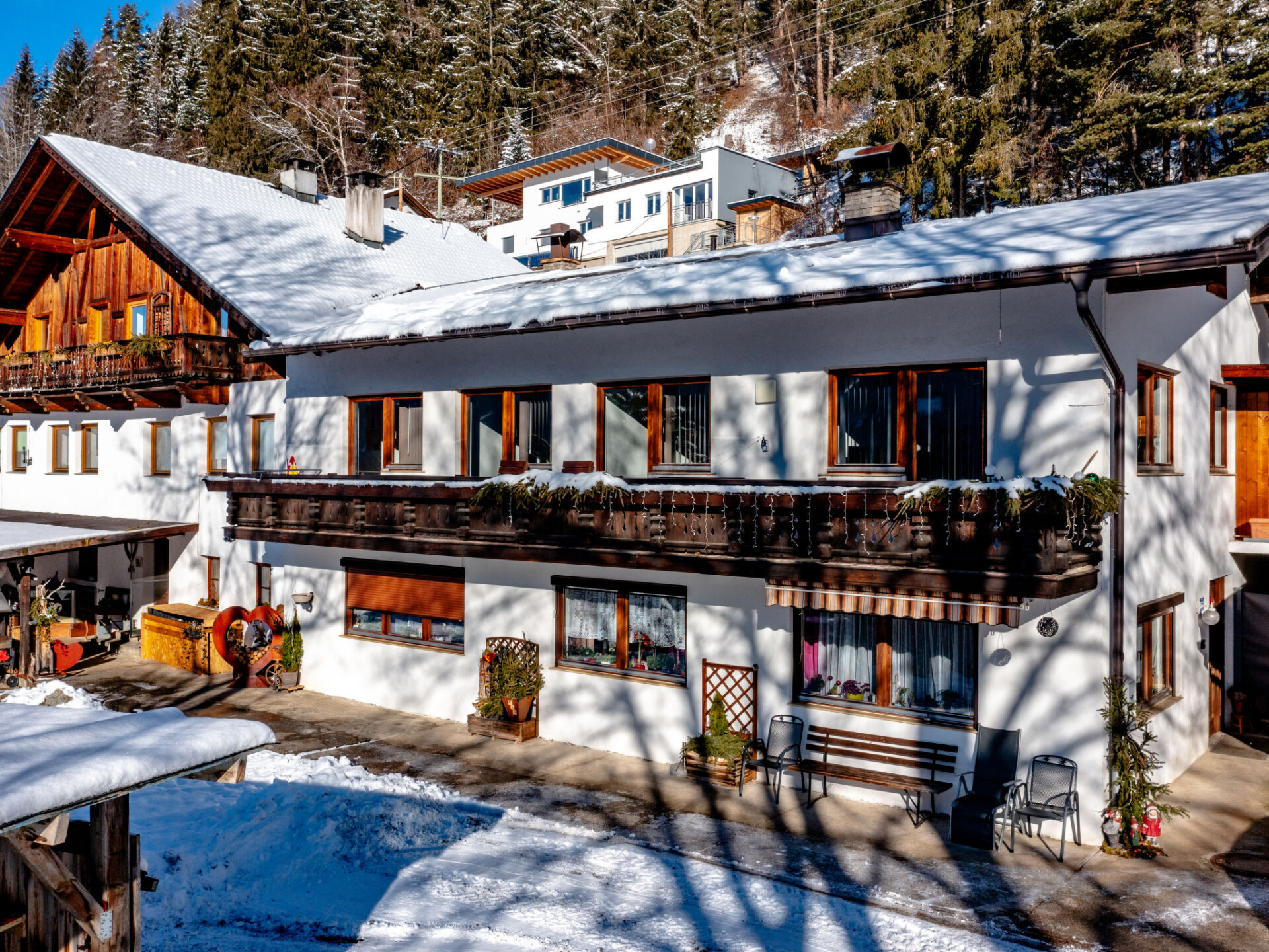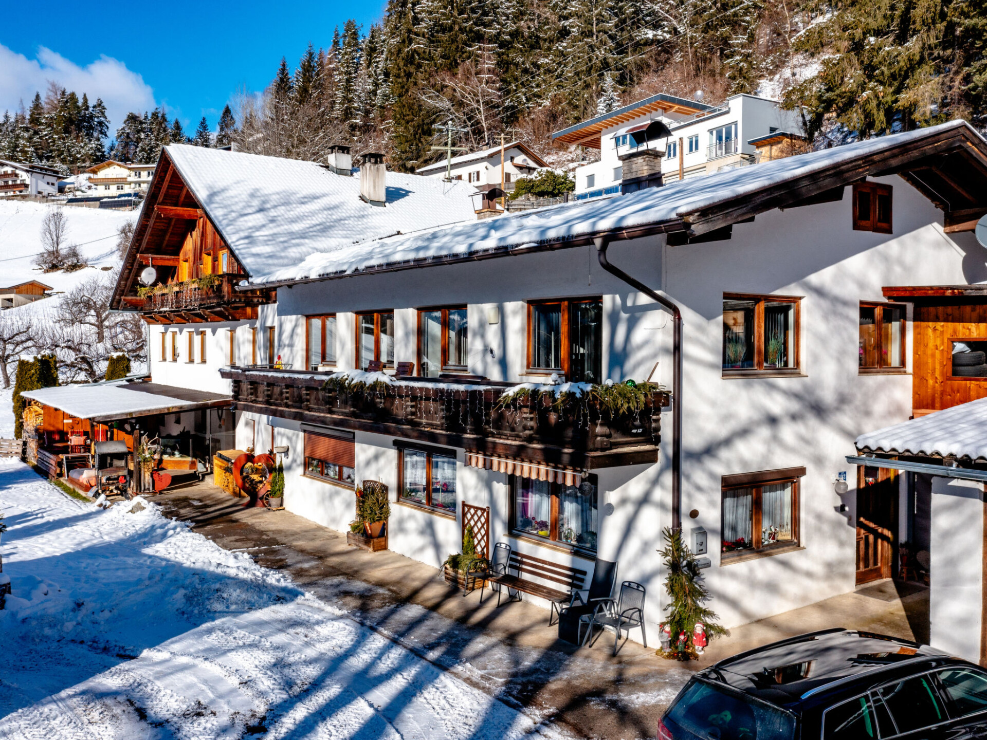 "Ferienwohnung Plattner", appartement 5-kamers 130 m2, op de bovenverdieping, op het westen gelegen. Volledig gerenoveerd in 2023, zeer mooi ingericht: hal. 2 2-pers. kamers. 1 kamer met 1 2-pers bed (140 cm, lengte 200 cm). Uitgang naar het balkon. Woonkamer met Sat-TV en Flatscreen TV. Uitgang naar het balkon. Eetkamer met eettafel. Uitgang naar het balkon. Keuken (oven, afwasmachine, 4 keramische glas kookplaten, broodrooster, waterkoker, elektrische koffiemachine). Uitgang naar het balkon. Douche, aparte WC. Vloerverwarming. Parketvloeren. Groot balkon, op het westen gelegen. Balkonmeubilair. Mooi panoramazicht op de bergen en het dal. Ter beschikking: Internet (Internet (WiFi)). Geschikt voor families appartement aan de binnenplaats. Niet rokers woning.
