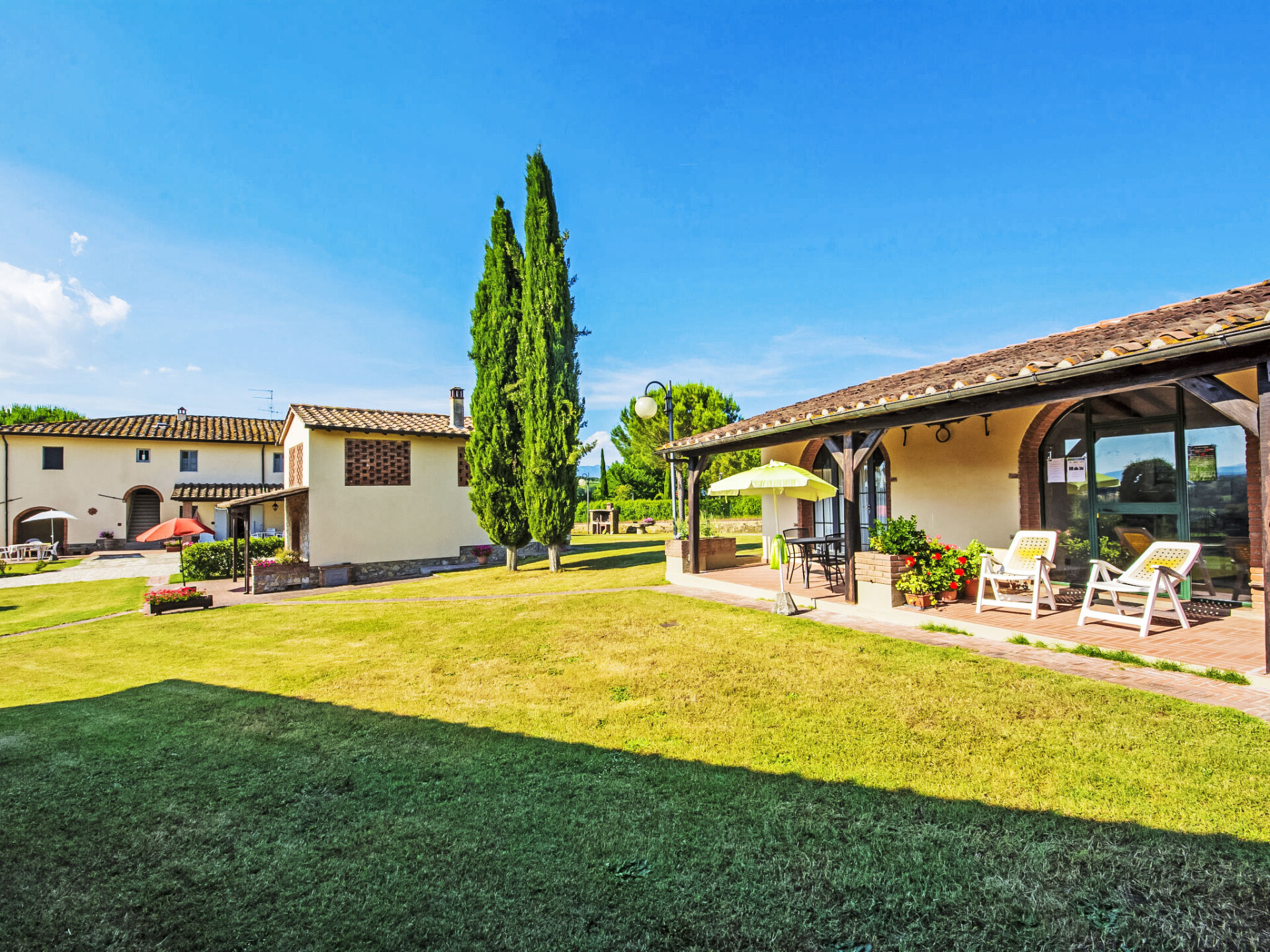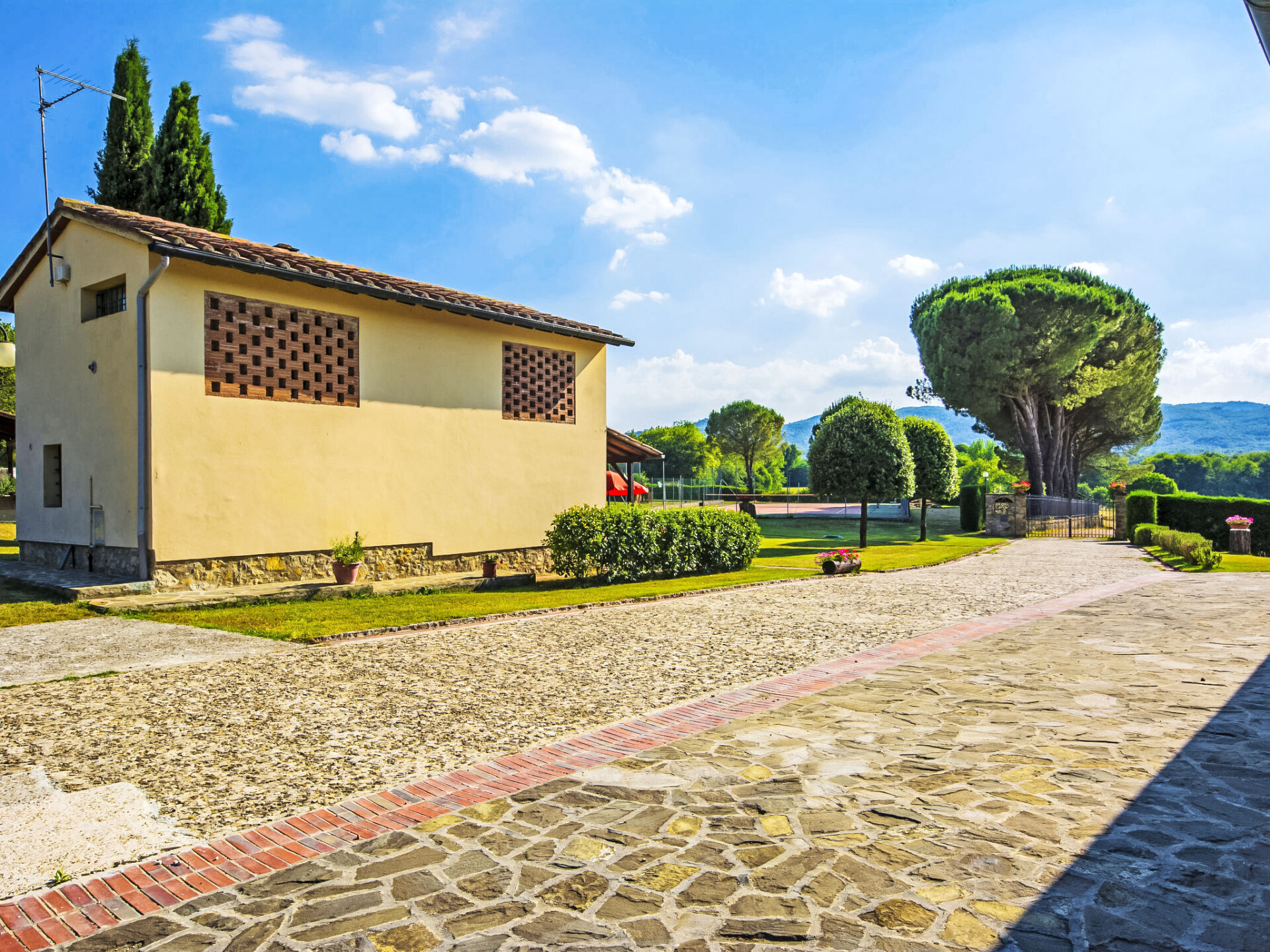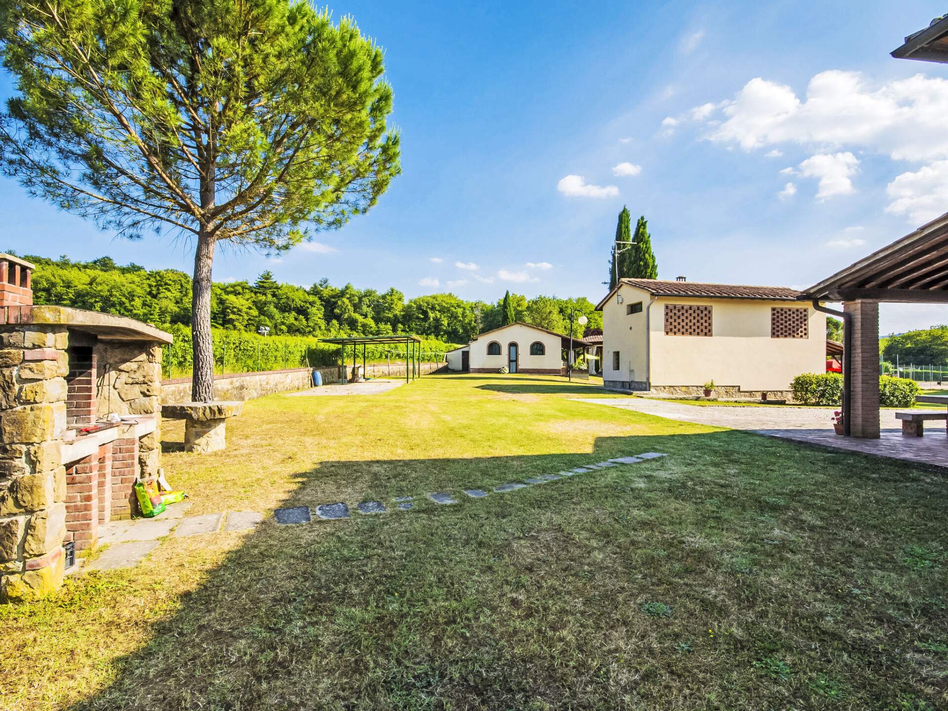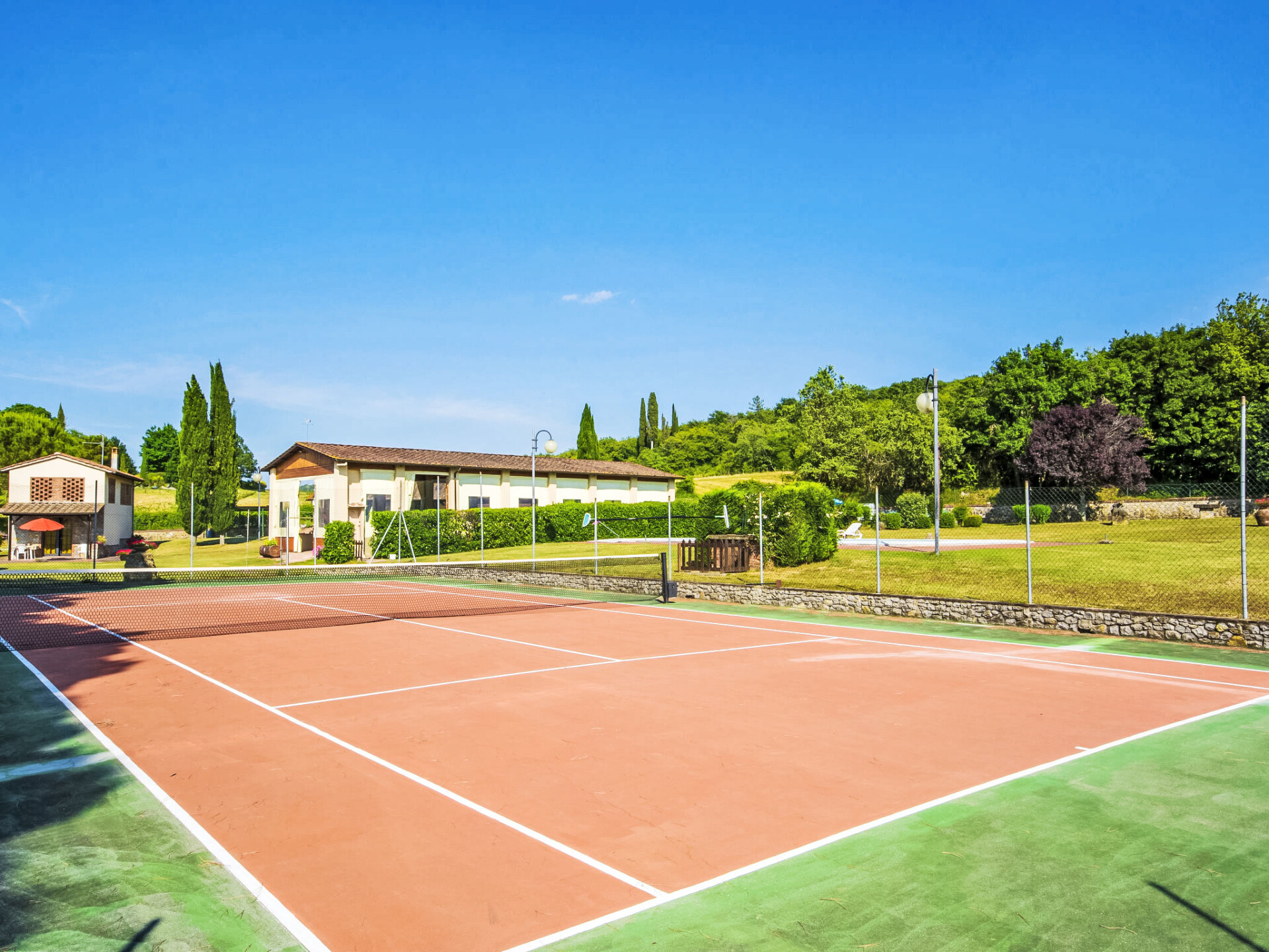 2 km van Bucine: Vijf appartementen omgeven door een ruim opgezette groenvoorziening met een grote overdekte buitenruimte, ingericht met tafels en stoelen voor gezamenlijk gebruik. Centraal gelegen en goed bereikbaar, aan de rand van de Val d'Ambra woonboerderij "Vecchia Fornace", gerenoveerd. 2 km van het centrum van Bucine, 40 km van het centrum van Siena, 50 km van het centrum van Firenze, te midden van groen. Voor medegebruik: terrein (omheind) met gazon, openluchtzwembad (7 x 15 m, 110 - 180 cm diepte, seizoensgebonden beschikbaarheid: 21.Mei. - 01.Okt.). Tennisbaan, tafeltennis, tuinmeubelen, barbecue. In het huis: centrale verwarming, wasmachine (voor medegebruik, extra), verwarming alleen beschikbaar van 01.Nov. - 15.Apr.. Toegangsweg (500 m onverharde weg). Overdekte parkeerplaats op het terrein. Levensmiddelenwinkel 2 km, winkelcentrum 8 km, restaurant 2 km, bushalte 2 km, treinstation "Bucine" 2 km, thermaalbad "Rapolano Terme" 30 km. Golfterrein (9 holes) 50 km, manege 7 km. Attracties in de buurt: Valdichiana Outlet Village 50 km, Outlet The Mall 45 km, Prada Outlet 20 km, Castello di Brolio 30 km. Vergelijkbare accommodaties kunnen worden geboekt. Jeu boulesterrein.