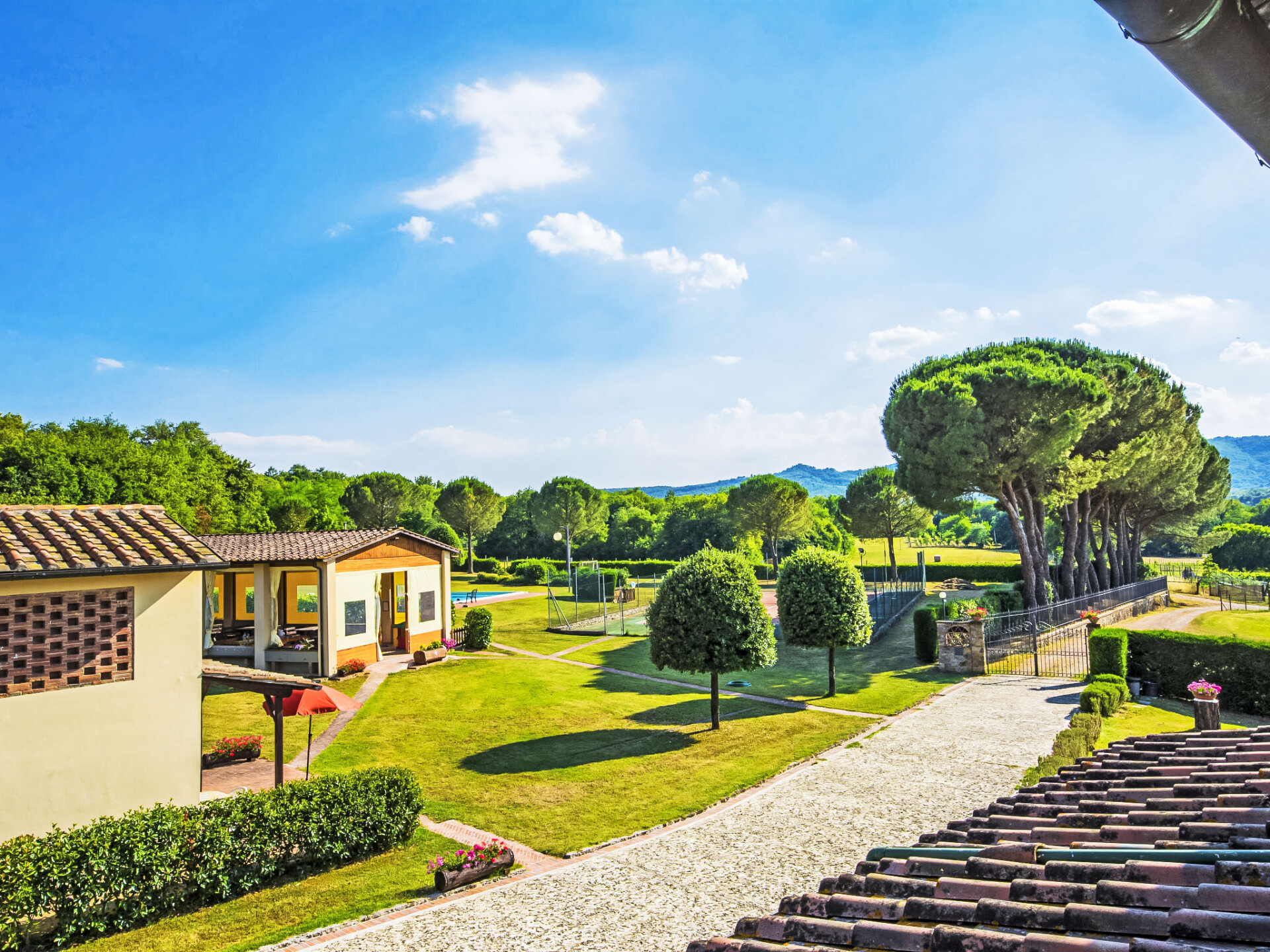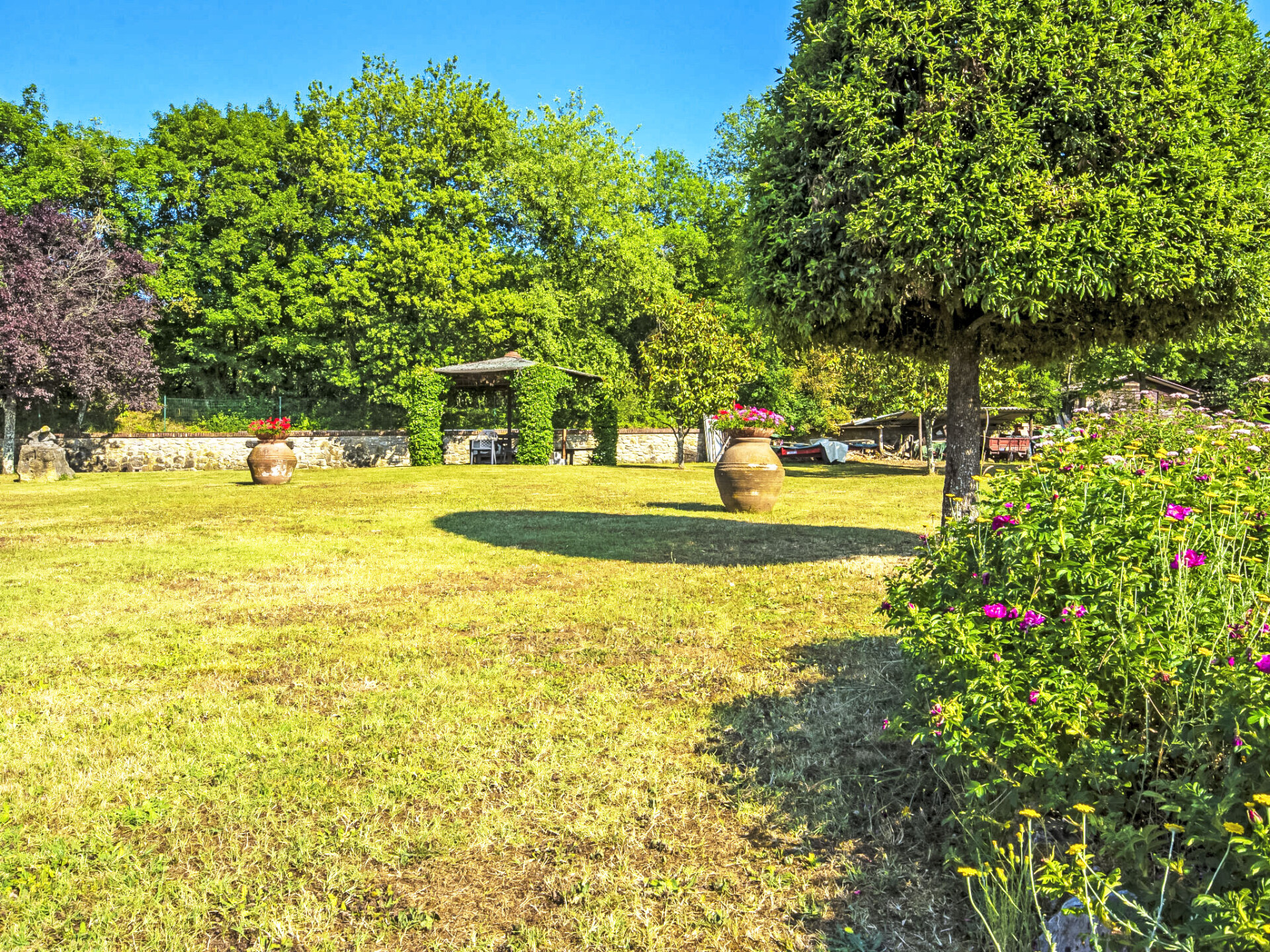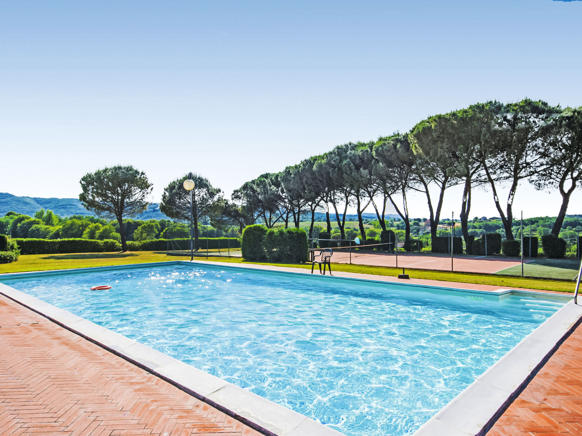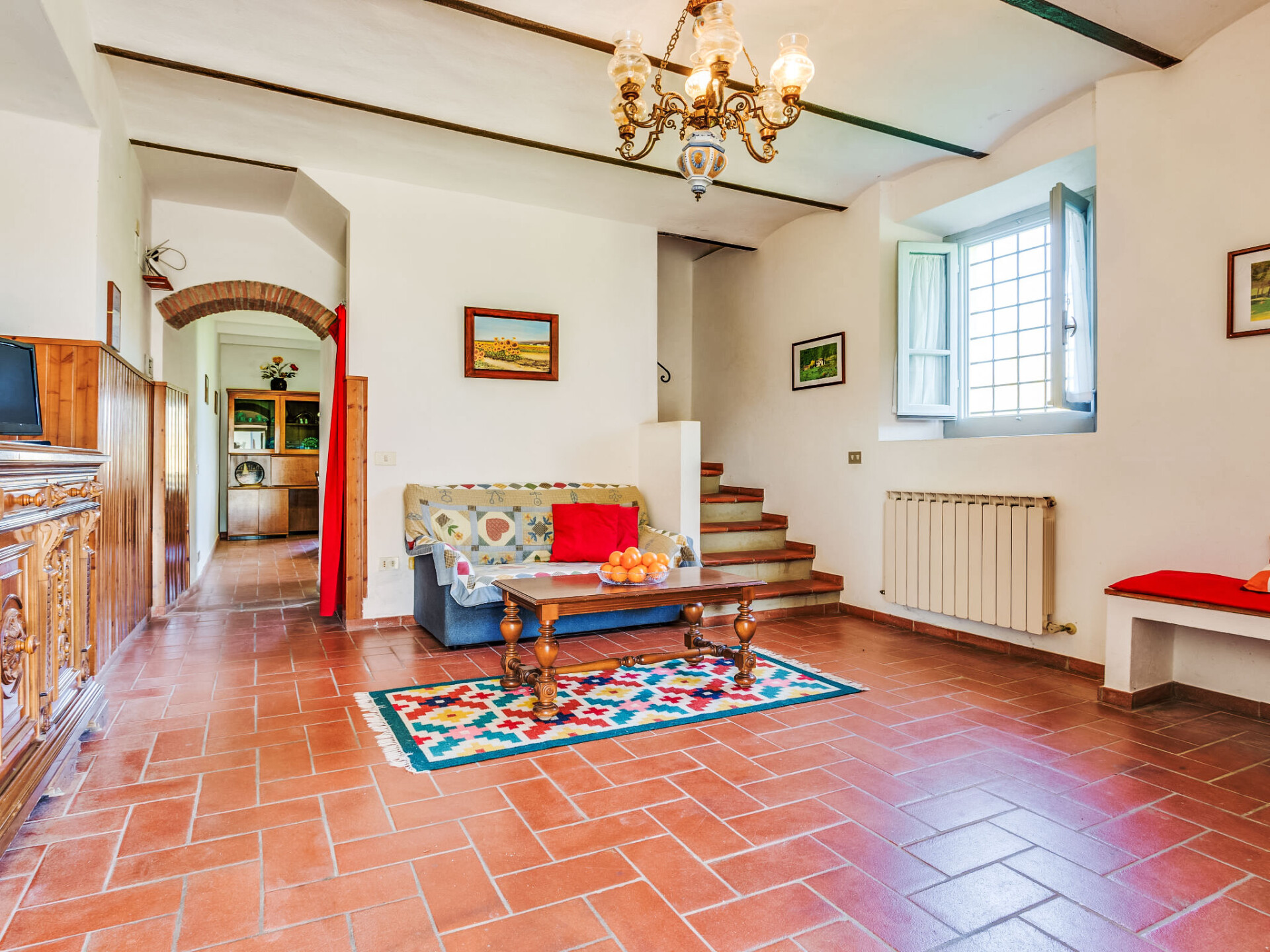 2 km van Bucine: Vijf appartementen omgeven door een ruim opgezette groenvoorziening met een grote overdekte buitenruimte, ingericht met tafels en stoelen voor gezamenlijk gebruik. Centraal gelegen en goed bereikbaar, aan de rand van de Val d'Ambra woonboerderij "Vecchia Fornace", gerenoveerd. 2 km van het centrum van Bucine, 40 km van het centrum van Siena, 50 km van het centrum van Firenze, te midden van groen. Voor medegebruik: terrein (omheind) met gazon, openluchtzwembad (7 x 15 m, 110 - 180 cm diepte, seizoensgebonden beschikbaarheid: 21.Mei. - 01.Okt.). Tennisbaan, tafeltennis, tuinmeubelen, barbecue. In het huis: centrale verwarming, wasmachine (voor medegebruik, extra), verwarming alleen beschikbaar van 01.Nov. - 15.Apr.. Toegangsweg (500 m onverharde weg). Overdekte parkeerplaats op het terrein. Levensmiddelenwinkel 2 km, winkelcentrum 8 km, restaurant 2 km, bushalte 2 km, treinstation "Bucine" 2 km, thermaalbad "Rapolano Terme" 30 km. Golfterrein (9 holes) 50 km, manege 7 km. Attracties in de buurt: Valdichiana Outlet Village 50 km, Outlet The Mall 45 km, Prada Outlet 20 km, Castello di Brolio 30 km. Vergelijkbare accommodaties kunnen worden geboekt. Jeu boulesterrein.