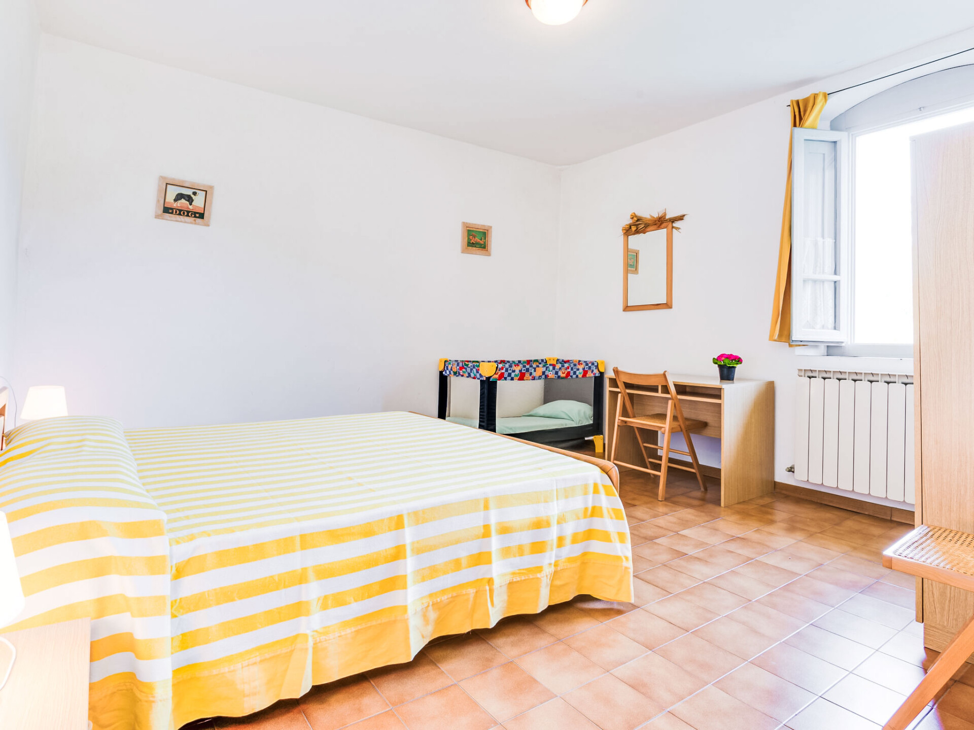 "Forno", appartement 3-kamers 90 m2 op 2 verdiepingen, op de begane grond. Eenvoudig ingericht: woonkamer met open haard en TV (Flatscreen TV). Keuken (4-pits kookplaat, oven, diepvriezer) met eettafel. Bovenverdieping: 1 2-pers. kamer. 1 kamer met 3 bedden. Douche/bidet/WC. Gas-verwarming. Klein terras. Terrasmeubelen. Ter beschikking: Internet (WiFi, gratis). Maximaal 1 huisdier/hond toegestaan. IT051005B434N7IMFD