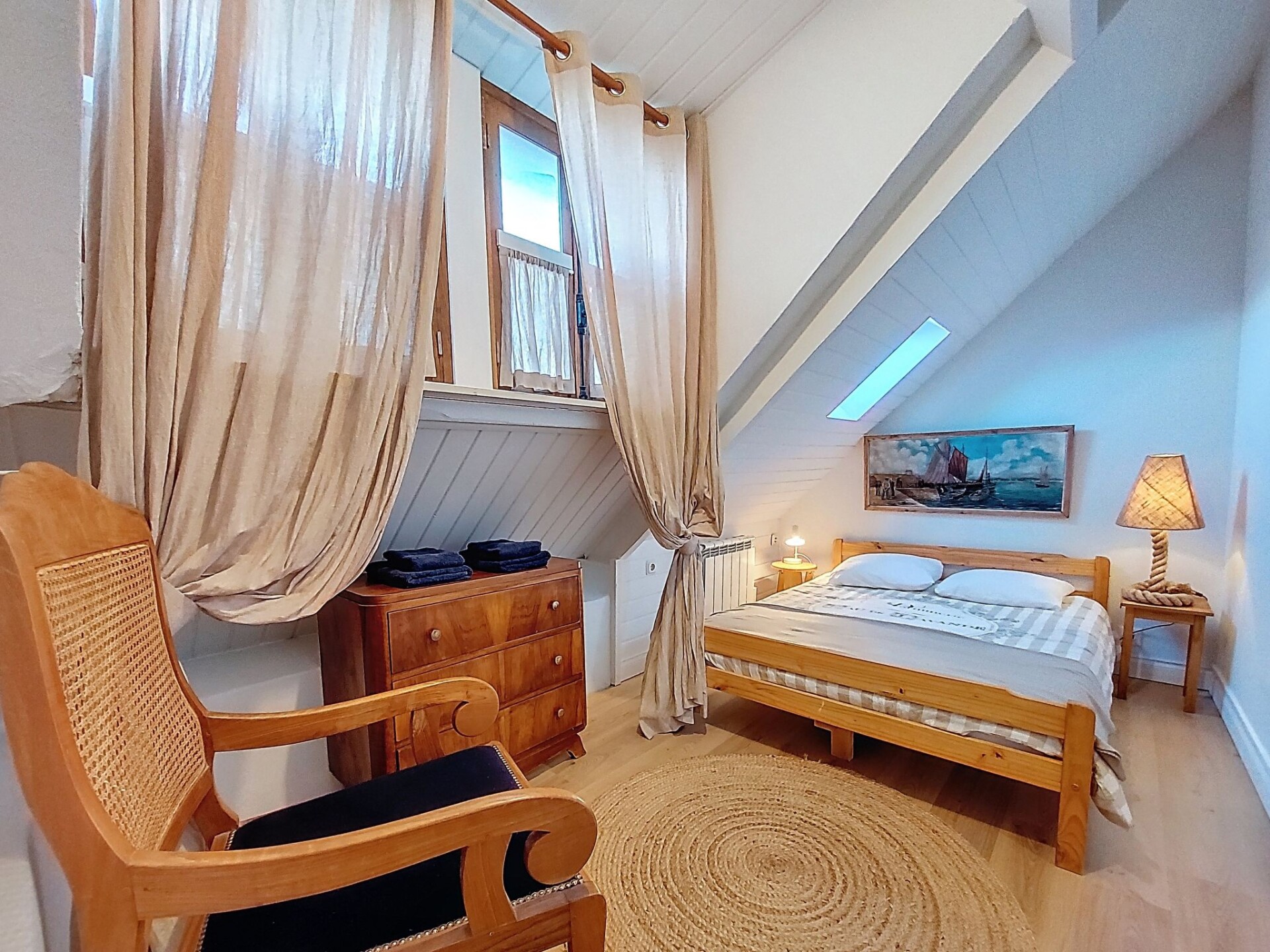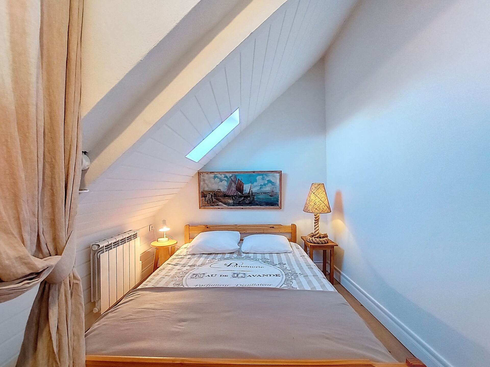 "Gwenn", halfvrijstaand huis 3-kamers 60 m2 op 2 verdiepingen. Gedeeltelijk gerenoveerd in 2025, mooi en gezellig ingericht: woon-/eetkamer met eettafel en TV (Flatscreen TV). Kookhoek (oven, 2 keramische glas kookplaten, broodrooster, waterkoker, elektrische koffiemachine). Bad/WC. Elektrische verwarming. Zolderverdieping: 1 kamer met afgeschuinde daken met dakraam met 1 2-pers bed (140 cm). 1 kamer met afgeschuinde daken met dakraam met 1 bed en 1 2-pers bed (140 cm). Terrasmeubelen, ligstoelen (2). Ter beschikking: wasmachine, strijkijzer. Internet (WiFi, gratis). Rookvrij huis. Rookmelders. Aanbod door een particulier volgens art. 155, IV van CGI.