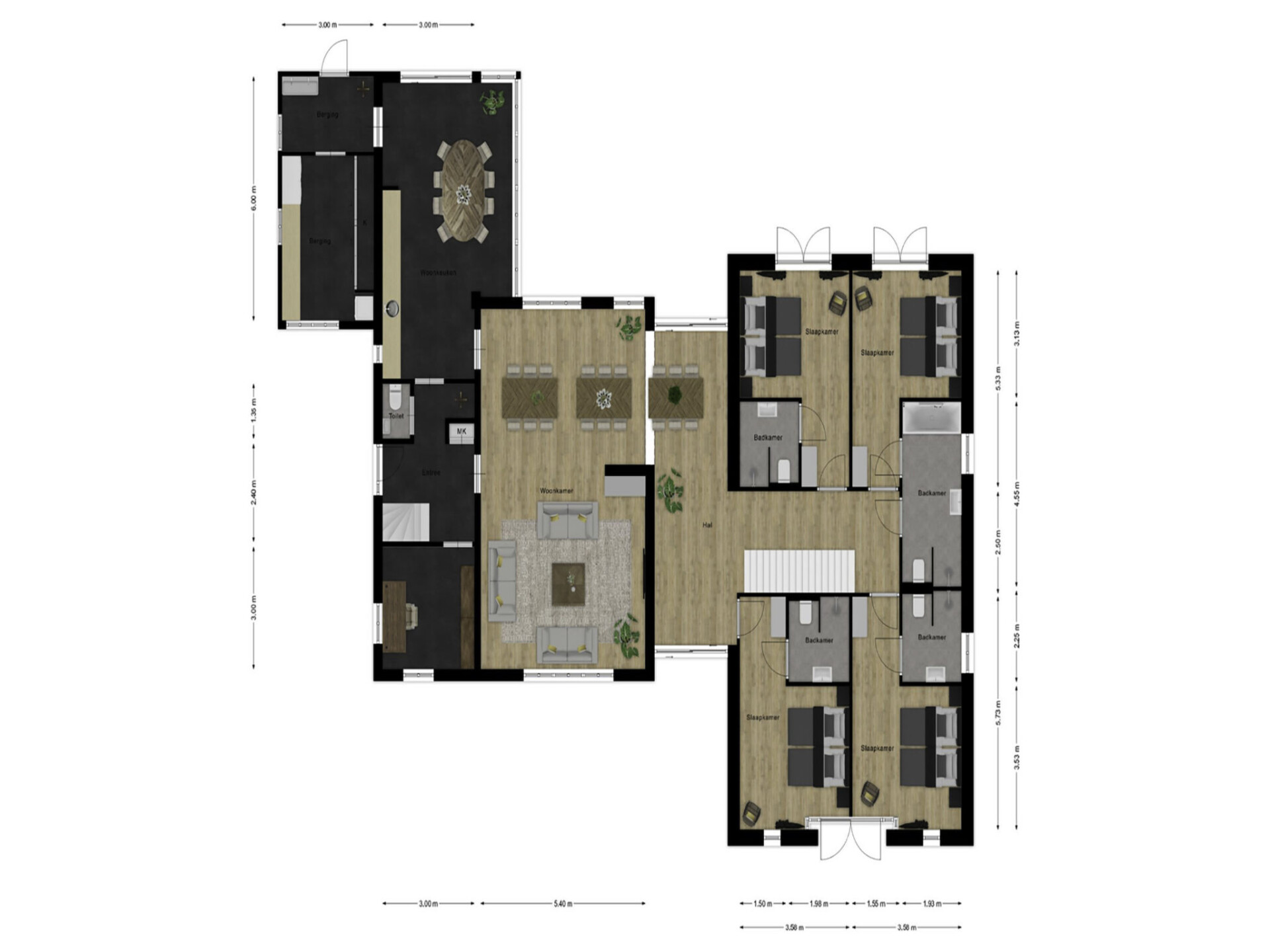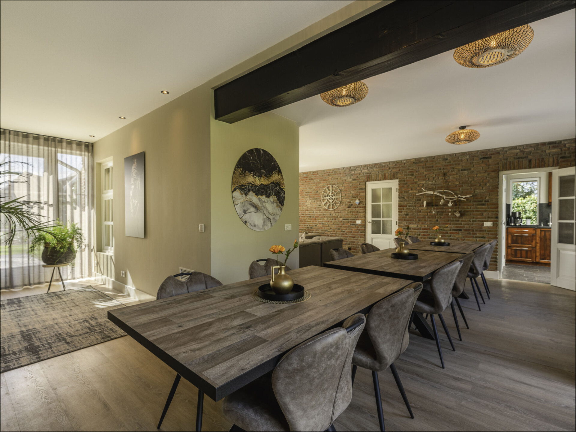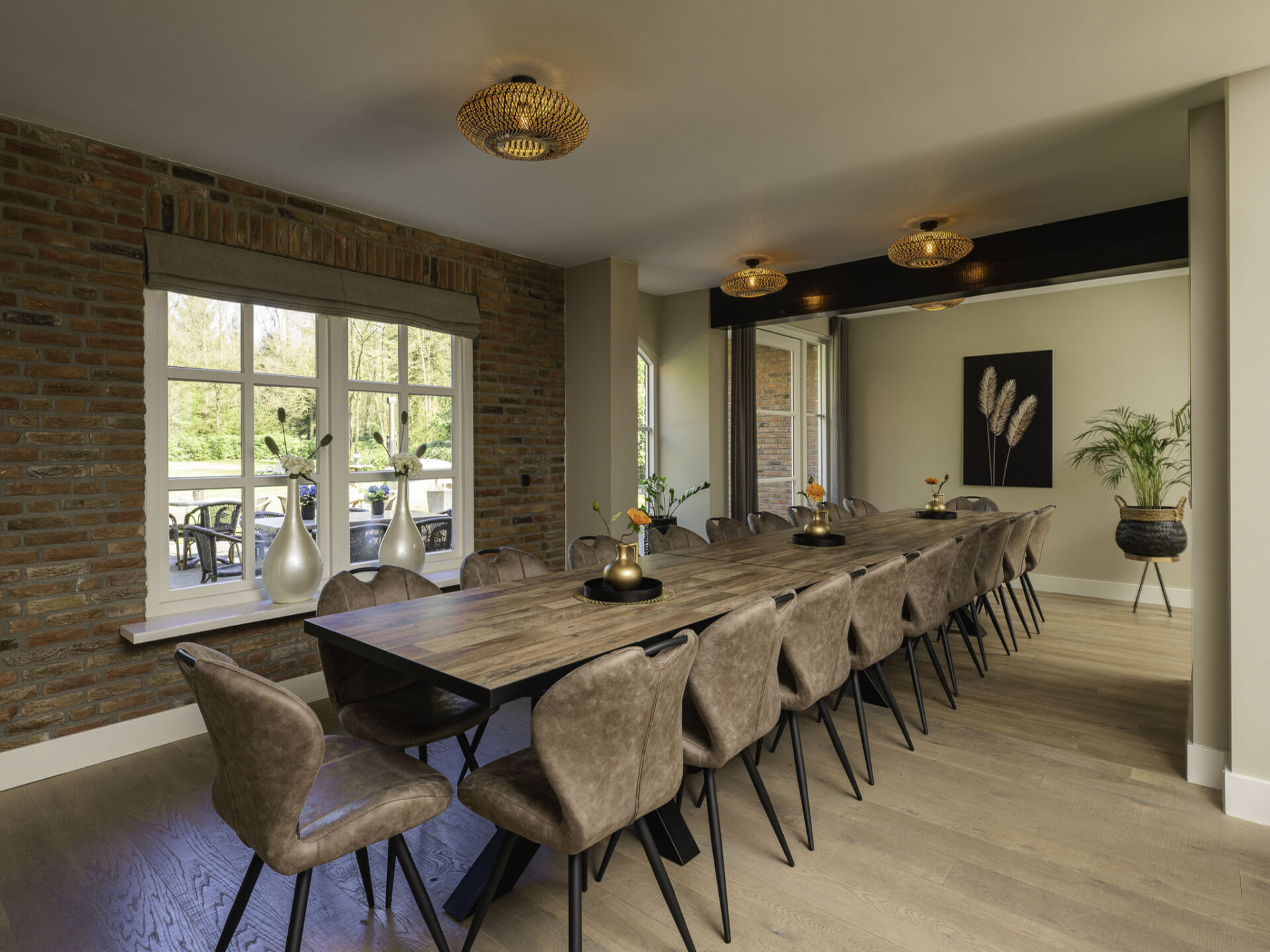 "Het Landhuis", villa 10-kamers 250 m2 op 2 verdiepingen. Comfortabel ingericht: hal met aparte WC. Woon-/eetkamer met eettafel en TV. 4 kamers, elke kamer heeft 2 bedden. Keuken (oven, afwasmachine, 4 inductiekookplaten, waterkoker, magnetron, elektrische koffiemachine). 3 douche/WC's, bad/douche/WC. Bovenverdieping: 2 kamers, elke kamer heeft 3 bedden. 3 kamers, elke kamer heeft 2 bedden. 3 douche/WC's. Gas-verwarming. Tuin. Terrasmeubelen, bergruimte. Ter beschikking: wasmachine, droger, kinderstoel, kinderbed. Internet (WiFi, gratis). Parkeerplaats bij het huis. Niet rokers woning. Rookmelders. In de tuin bevindt zich een Finse Kota en een hottub voor prive gebruik en tegen betaling.