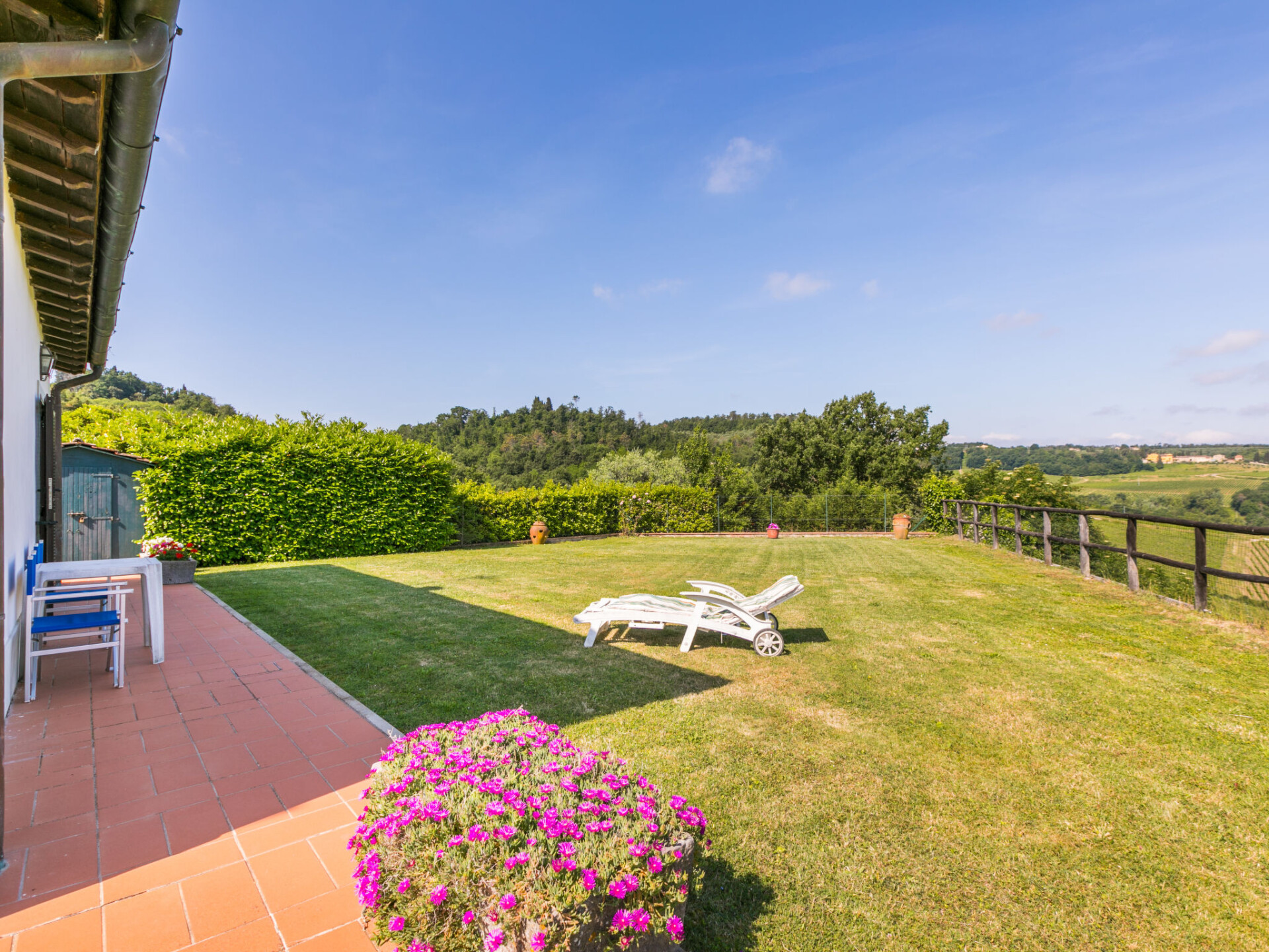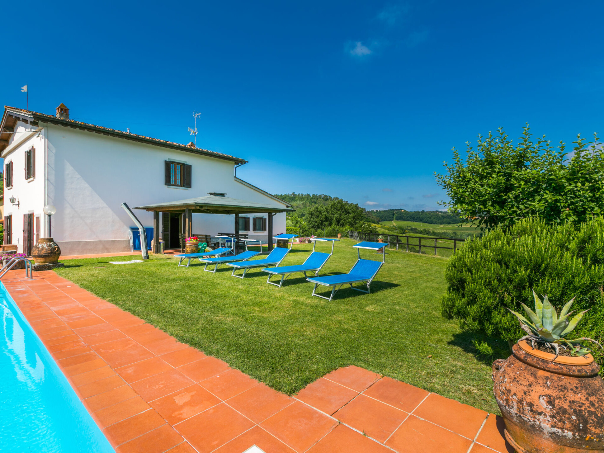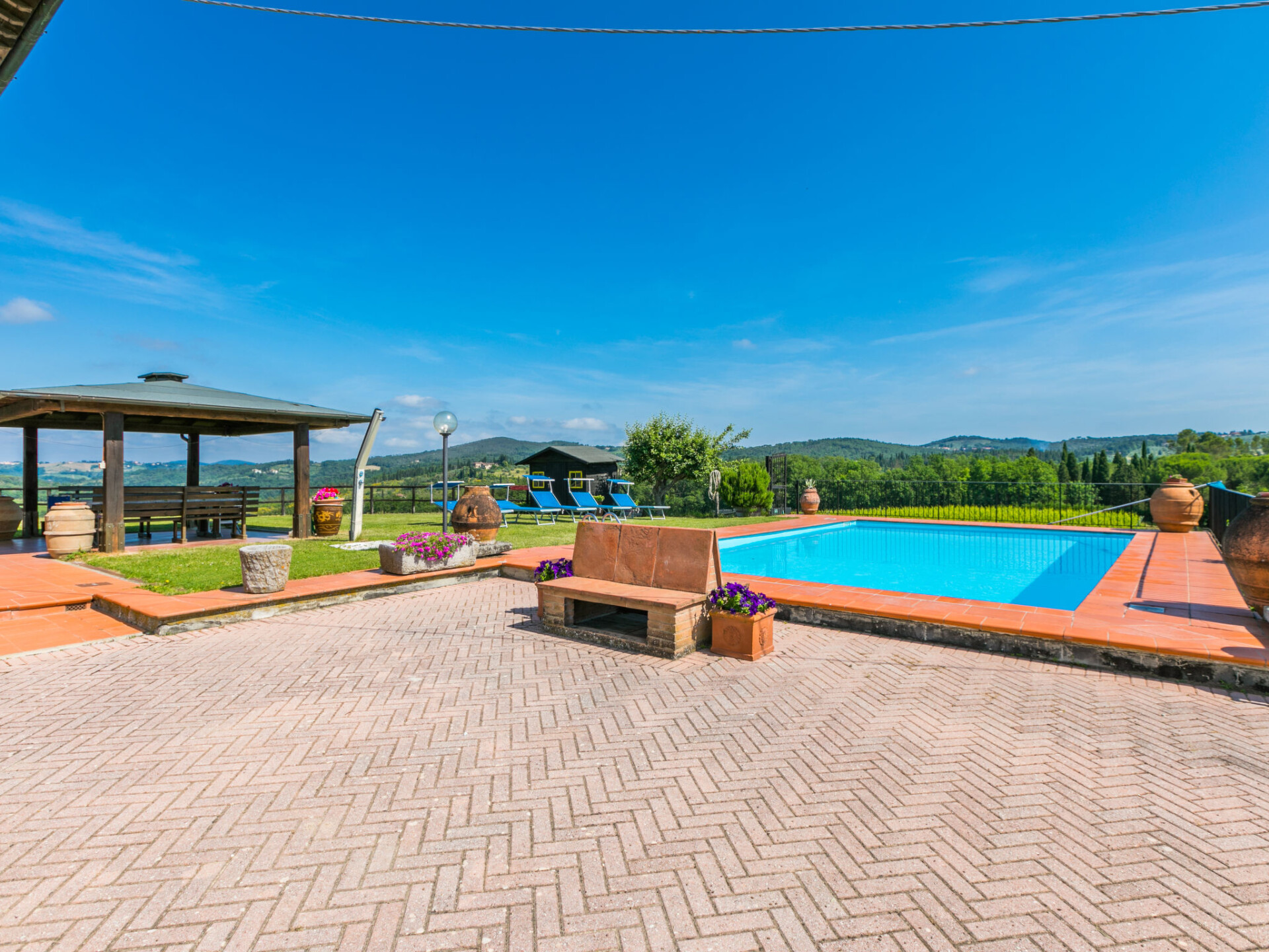 Huis 6-kamers 200 m2 op 2 verdiepingen. Comfortabel en gezellig ingericht: hal met 1 divanbed, eettafel, Sat-TV en stereo-installatie. Uitgang naar de tuin. Woon-/eetkamer met open haard. 1 kamer met 1 2-pers bed. Uitgang naar het zwembad. Keuken (5-pits kookplaat, oven, afwasmachine, magnetron, diepvriezer, elektrische koffiemachine). 2 douche/bidet/WC's. Bovenverdieping: 2 2-pers. kamers. 2 kamers, elke kamer heeft 2 bedden. Bad/bidet/WC, douche/bidet/WC. Uitzicht op het landschap. Ter beschikking: wasmachine, klamboe. Internet (WiFi, gratis). Parkeerplaats (omheind). Maximaal 1 huisdier/hond toegestaan. IT048038N2DPY3LGLF