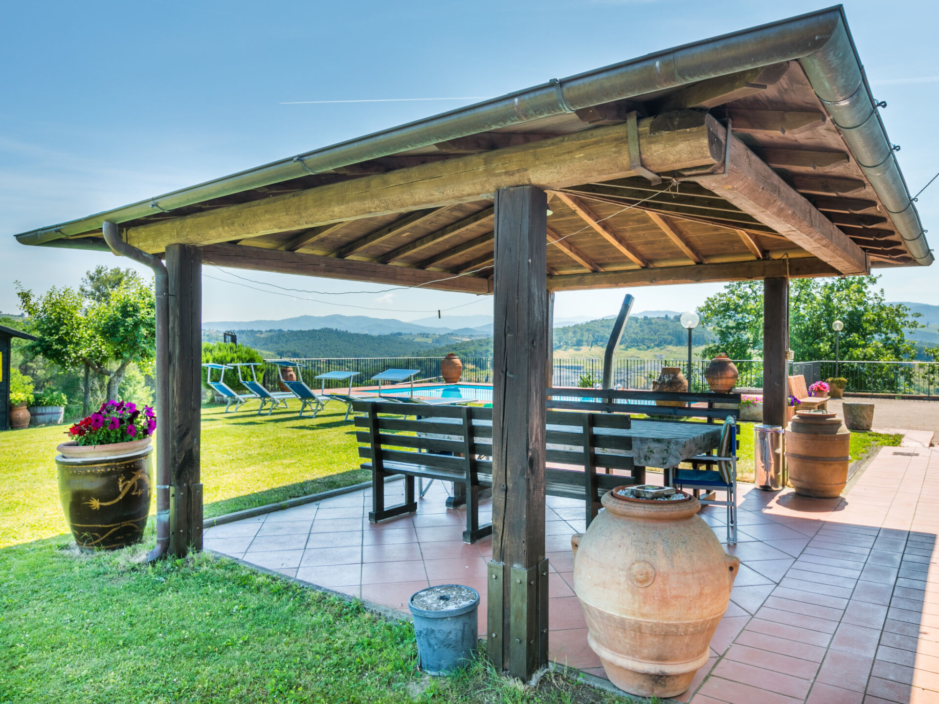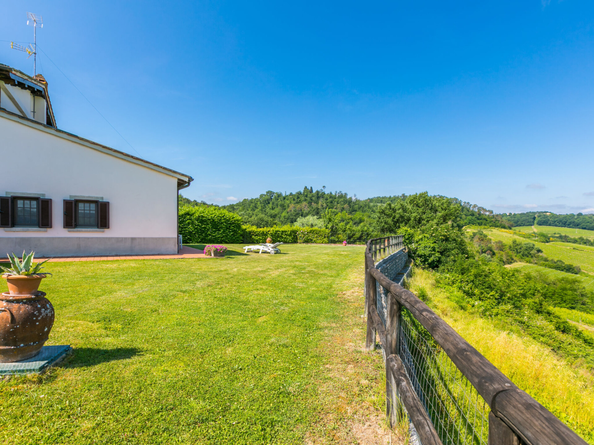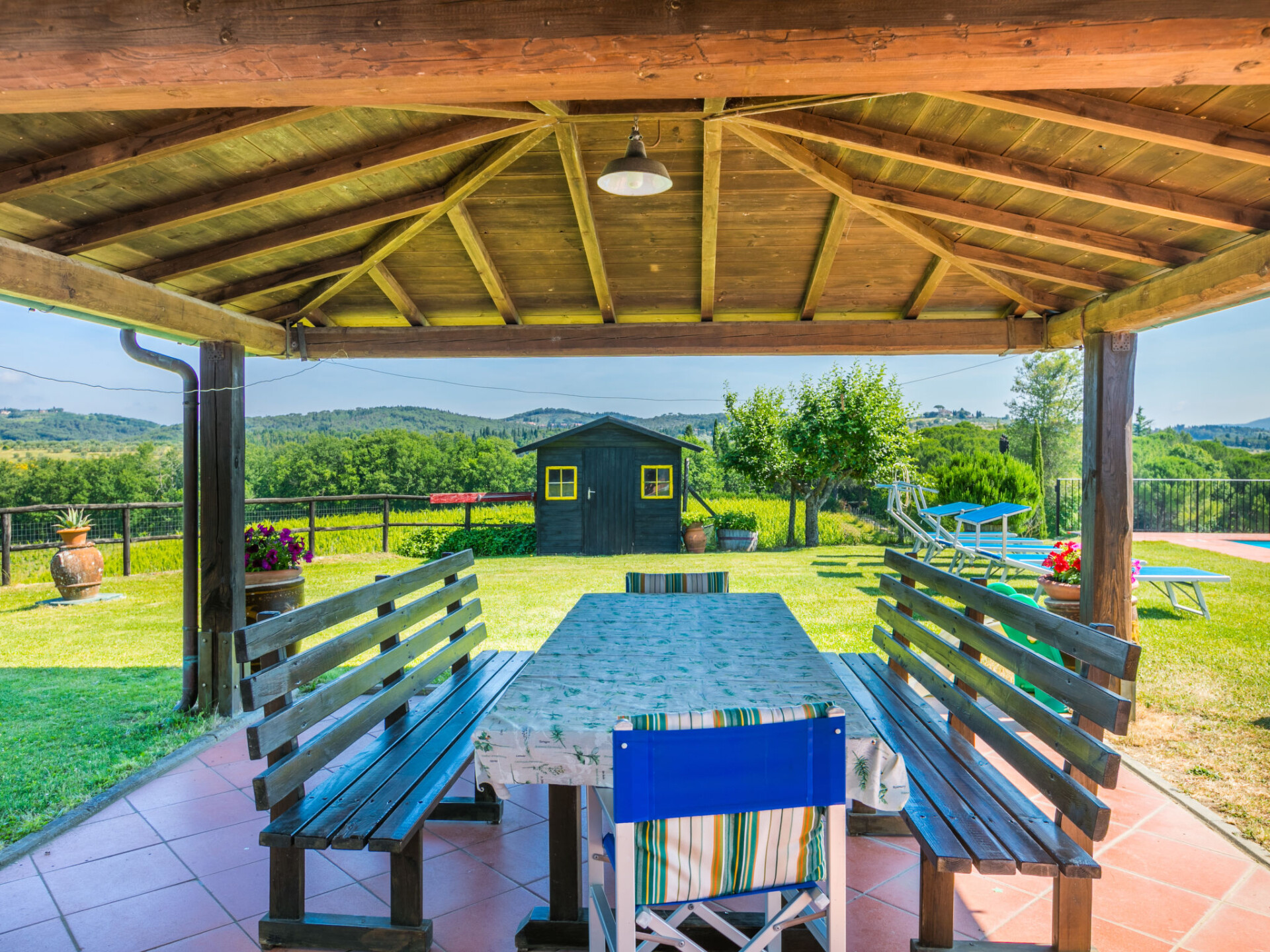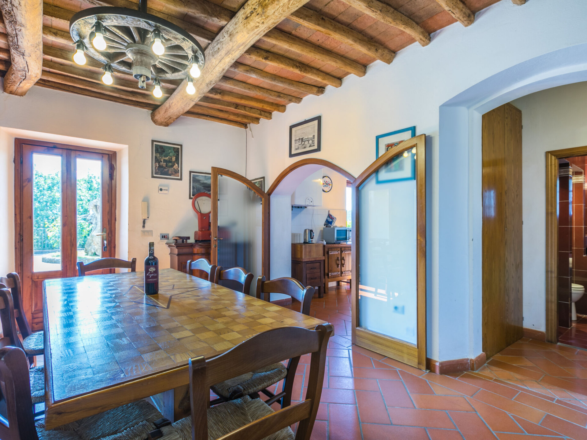 Huis 6-kamers 200 m2 op 2 verdiepingen. Comfortabel en gezellig ingericht: hal met 1 divanbed, eettafel, Sat-TV en stereo-installatie. Uitgang naar de tuin. Woon-/eetkamer met open haard. 1 kamer met 1 2-pers bed. Uitgang naar het zwembad. Keuken (5-pits kookplaat, oven, afwasmachine, magnetron, diepvriezer, elektrische koffiemachine). 2 douche/bidet/WC's. Bovenverdieping: 2 2-pers. kamers. 2 kamers, elke kamer heeft 2 bedden. Bad/bidet/WC, douche/bidet/WC. Uitzicht op het landschap. Ter beschikking: wasmachine, klamboe. Internet (WiFi, gratis). Parkeerplaats (omheind). Maximaal 1 huisdier/hond toegestaan. IT048038N2DPY3LGLF