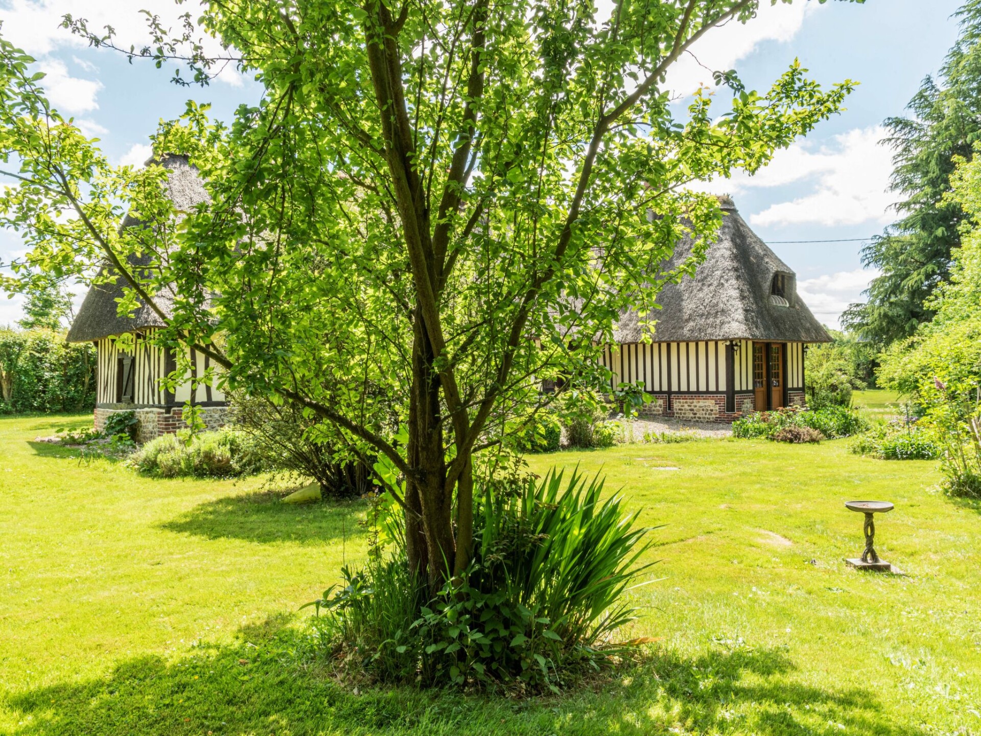 Mooi landhuis "La Chaumière", omgeven door bomen. In het gehucht Dubus, aan de rand van de plaats, 5 km van het centrum van Saint Georges de vievre, 20 km van de bosrand, 50 km van zee. Voor medegebruik: terrein 5.000 m2 (omheind), parkeerplaats (voor 4 auto's). Bushalte "LIEUREY - Poste" 5.5 km. Attracties in de buurt: Cormeilles 15 km, Deauville 50 km, Honfleur 40 km, Le Bec hellouin 16 km. Wandelgebied Foret de Brotonne, Le Marais Vernier 35 km. Auto noodzakelijk.