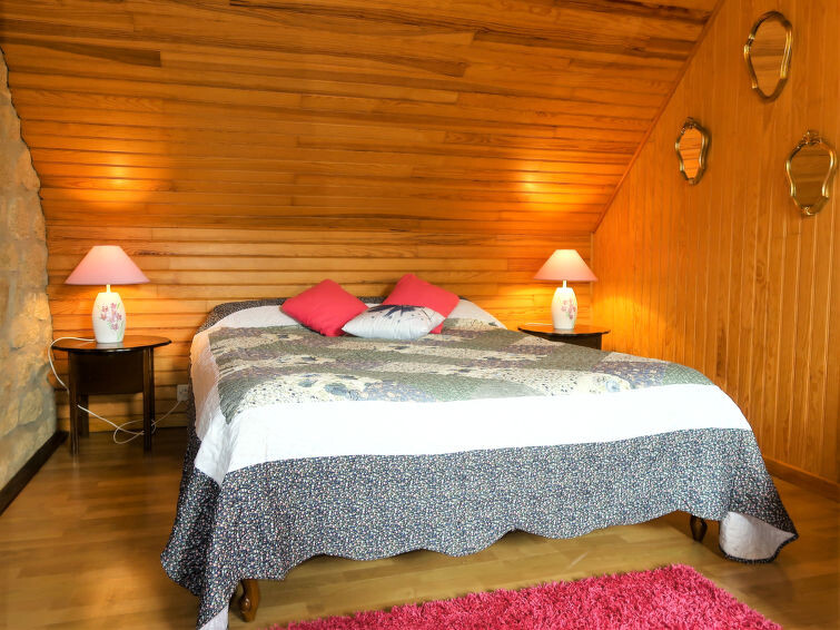 "La Ferme Bis", halfvrijstaand huis 5-kamers 125 m2 op 2 verdiepingen. Rustiek en met veel hout ingericht: woon-/eetkamer met eettafel. Uitgang naar de tuin. Open keuken (oven, afwasmachine, 4 kookpitten (vlammen), broodrooster, waterkoker, magnetron, diepvriezer, elektrische koffiemachine). Douche/WC. Bovenverdieping: 2 kamers met afgeschuinde daken, elke kamer heeft 1 2-pers bed (140 cm, lengte 190 cm). 2 kamers met afgeschuinde daken, elke kamer heeft 1 bed. Bad/WC, aparte WC. Geen verwarmingsmogelijkheid. Parketvloeren. Tuin 300 m2. Terrasmeubelen, barbecue (verrijdbaar), ligstoelen (2). Ter beschikking: wasmachine, kinderstoel, kinderbed. Rookvrij huis. Maximaal 1 huisdier/hond toegestaan. Rookmelders.