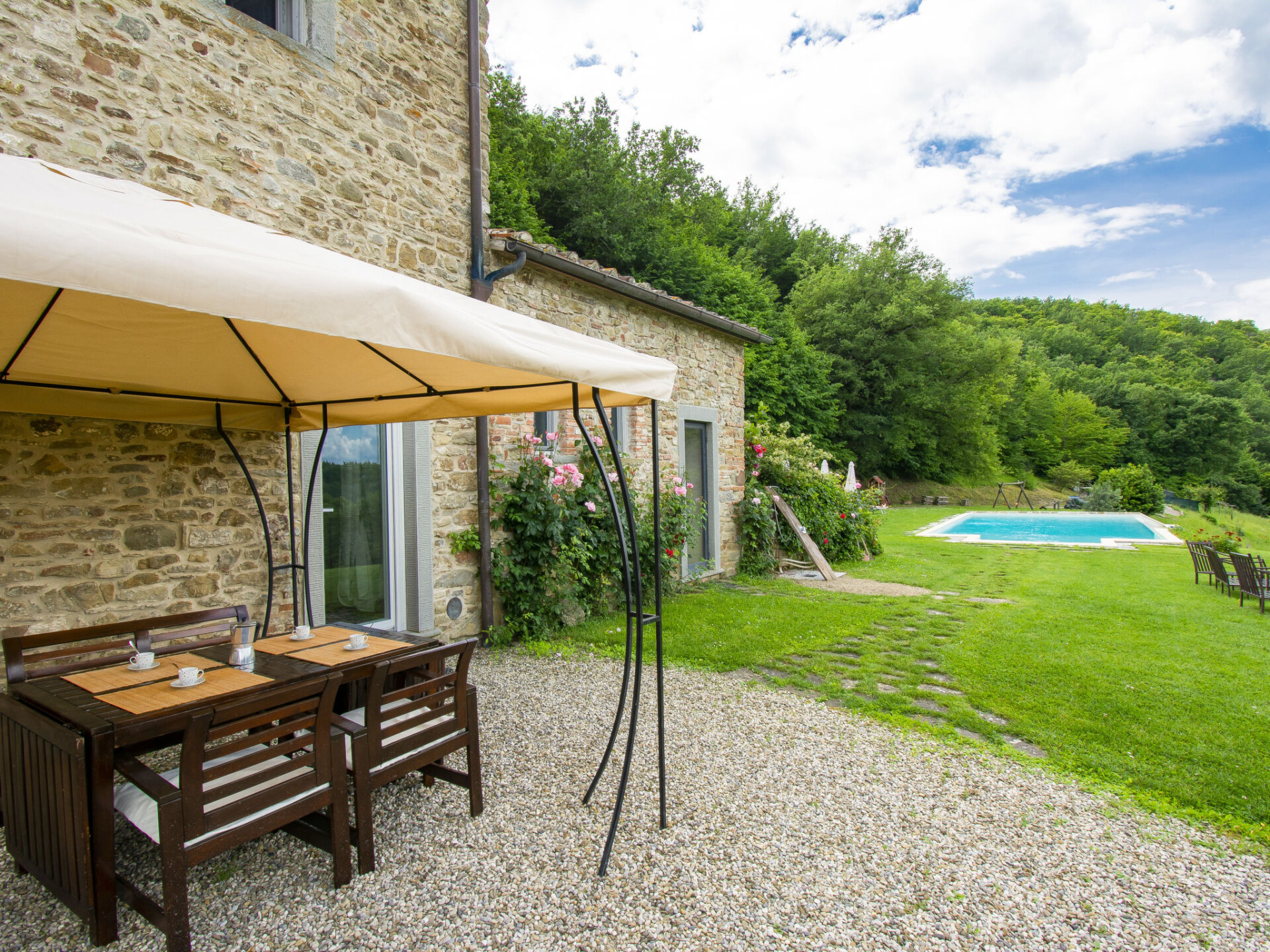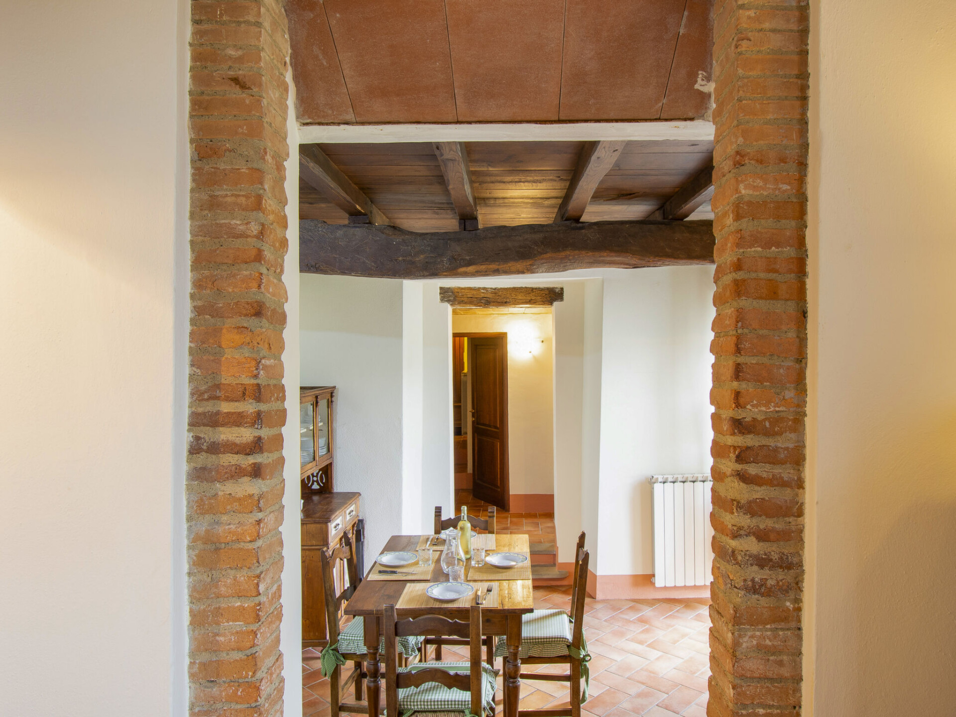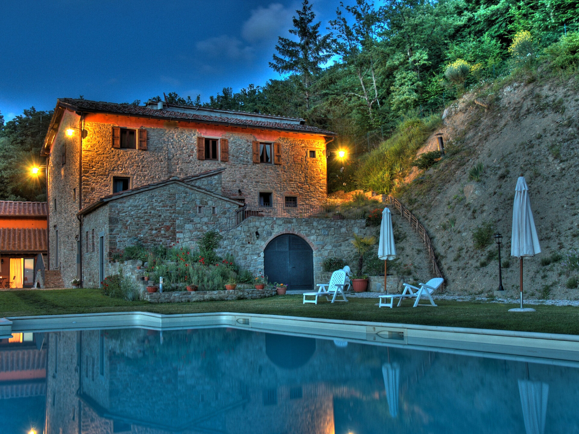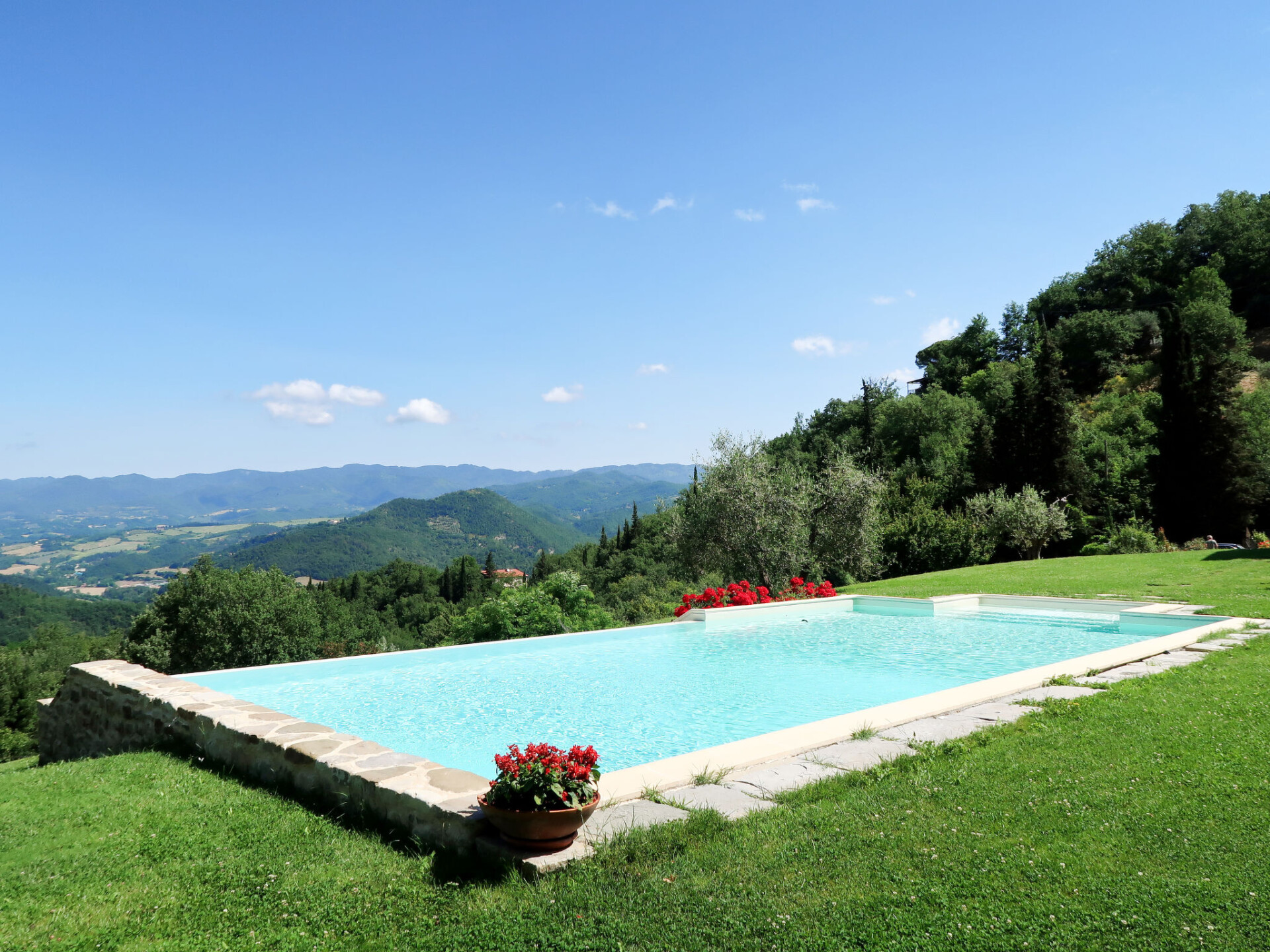 Landhuis "La Fonte", 360 m boven zeeniveau, omgeven door velden en wijngaarden. 3 km van het centrum van Dicomano, 30 km van het centrum van Firenze, geïsoleerde, verhoogde ligging. Voor medegebruik: terrein 4 ha, tuin op verschillende niveaus (niet omheind) gazon, openluchtzwembad (12 x 6 m, seizoensgebonden beschikbaarheid: 01.Mei. - 30.Sep.). Buitendouche, barbecue. In het huis: wasmachine (voor medegebruik, extra). Ontbijt op verzoek (extra). Parkeerplaats op het terrein. Supermarkt 3 km, bushalte 3 km, treinstation "Dicomano" 3 km. Attracties in de buurt: Autodromo Internazionale del Mugello 27 km, Outlet Barberino del Mugello 36 km, Arezzo 85 m, San Gimignano 88 km. Auto noodzakelijk. Lokale verkoop van streekproducten. De eigenaar woont in hetzelfde huis.