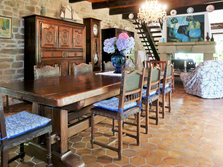 Landhuis "Domaine de Penamprat". 7 huizen in de woning. In het gehucht Penamprat, 5.5 km van het centrum van Loctudy, 3.4 km van het centrum van Pont l'Abbé, 22 km van het centrum van Quimper, 6 km van zee, 6.2 km van het strand, aan een doodlopende weg. Voor medegebruik: wild terrein 15 ha met bomen. 400 m lange toegangsweg tot het terrein. Parkeerplaats op het terrein. Winkel 3.4 km, supermarkt 3.4 km, restaurant 3.4 km, bushalte 4 km, zandstrand "Plage de Langoz" 6 km. Jachthaven 4.8 km, zeilschool 4.8 km. Attracties in de buurt: Lesconil 7.8 km, Le Guilvinec 12 km, Pointe de la Torche 12 km. Wandelgebied Baie d'Audierne 13 km. De woningen kunnen onderling van inrichting verschillen.