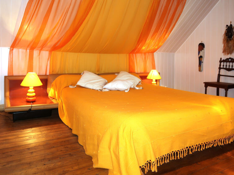 "La Grange", huis 4-kamers 160 m2 op 2 verdiepingen. Rustiek en met veel hout ingericht: woon-/eetkamer met open haard (alleen decoratie), eettafel en DVD. Uitgang naar het terras. Open keuken (oven, 5 kookpitten (vlammen), broodrooster, waterkoker, magnetron, diepvriezer, elektrische koffiemachine). Badkamer, aparte WC, dubbele wastafels. Geen verwarmingsmogelijkheid. Bovenverdieping: 1 kamer met afgeschuinde daken met 2 bedden (90 cm, lengte 190 cm). 1 kamer met afgeschuinde daken met 1 bed (110 cm, lengte 190 cm), 1 2-pers bed (140 cm, lengte 190 cm). 1 kamer met afgeschuinde daken met 1 2-pers bed (160 cm, lengte 190 cm). Parketvloeren. Terras, tuin 600 m2. Terrasmeubelen, barbecue (verrijdbaar), ligstoelen (2). Ter beschikking: wasmachine, kinderstoel, kinderbed. Rookvrij huis. Maximaal 1 huisdier/hond toegestaan. Rookmelders. Bedindeling is flexibel. Er zijn meer slaapmogelijkheden beschikbaar dan het maximaal toegestane aantal personen dat echter niet mag worden overschreden.