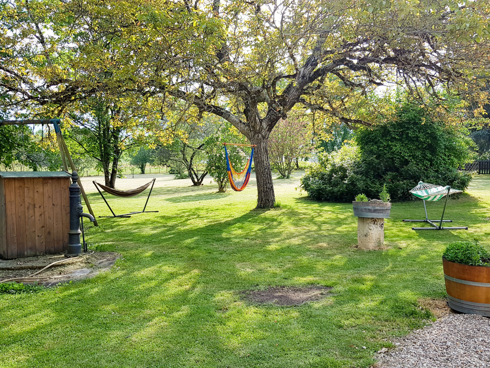 La Raze 6 km van Moncaret: Oud, groot, rustieke landhuis "La Raze", omgeven door bomen en wijngaarden. Aan de rand van de plaats, 5 km van het centrum van Bonneville, geïsoleerde ligging tegen een helling, 8 km van het meer, aan een doodlopende weg, te midden van groen. Voor alleengebruik: wild terrein 1 ha, park 8.000 m2 met gazon en bomen, openluchtzwembad hoekig, geen inkijk, omheind (10 x 5 m, 150 cm diepte, seizoensgebonden beschikbaarheid: 20.Mei. - 30.Sep.) met zout-elektrolyse. Tafeltennis, jeu de boules, volleybalveld, terras (100 m2). In het huis: fietsen beschikbaar. Beschikbaar: fietsen (8), kinderfietsen (2). Toegangsweg (150 m onverharde weg). Parkeerplaats bij het huis op het terrein. Winkel 6 km, supermarkt 15 km, winkelcentrum 10 km, restaurant 6 km, café 6 km, bushalte "Vélines-Centres" 4 km, treinstation "Bergerac" 35 km, grasstrand "Lac de Gurson" 8 km, strandbad 8 km. Golfterrein (18 holes) 17 km, manege 8 km. Attracties in de buurt: Grottes de Lascaux 125 km, Sarlat 140 km, Gouffre de Padirac 190 km, Rocamadour 190 km, Castillon 5 km. Auto noodzakelijk. Baby uitrusting op aanvraag (incl.). Dieren in de buurt.