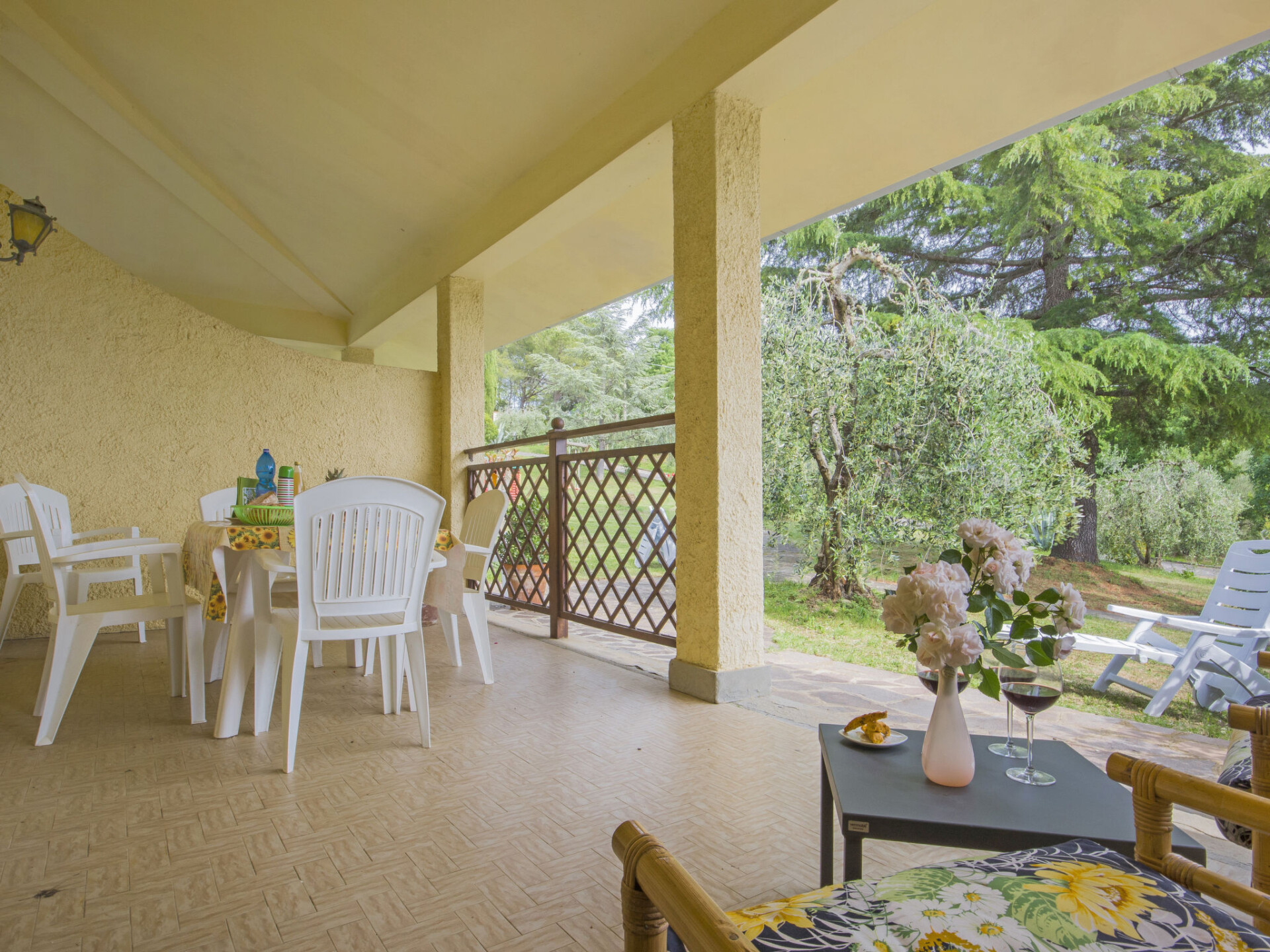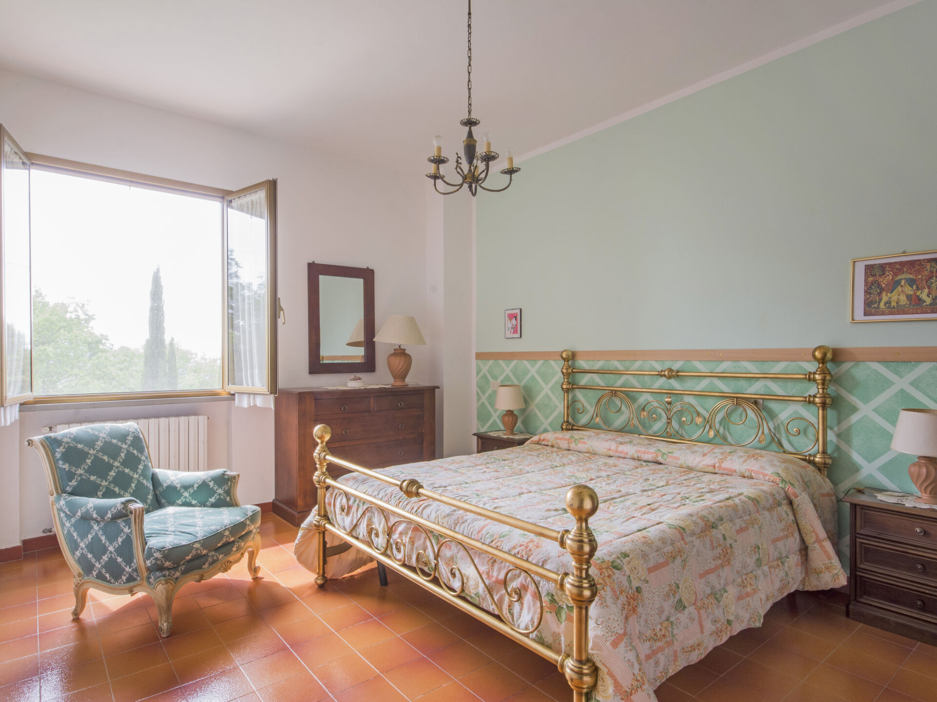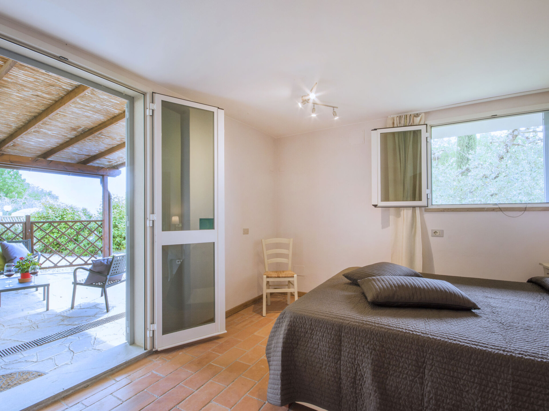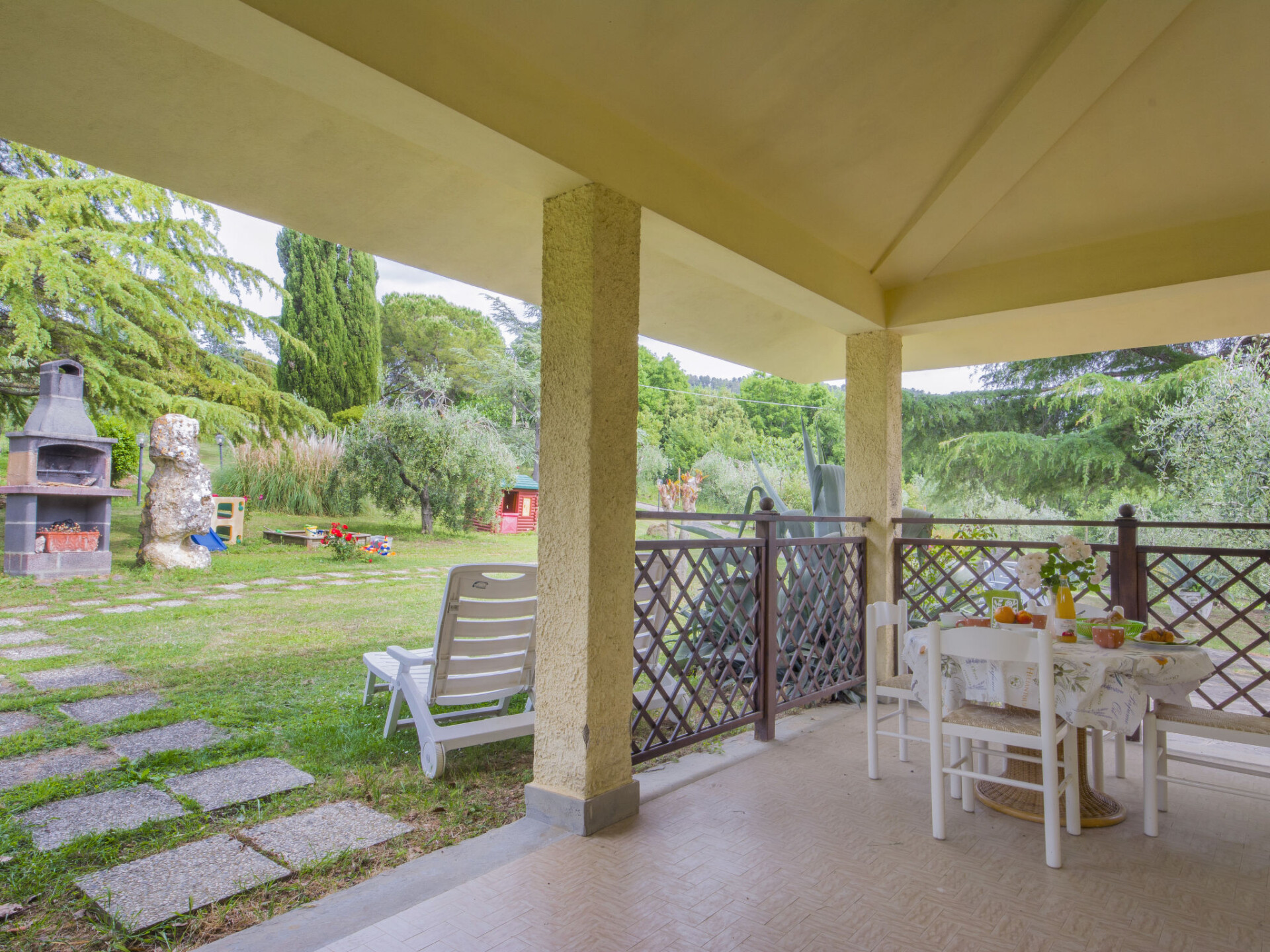 Huis 11-kamers 234 m2 op 2 verdiepingen, op de begane grond. Doelmatig en smaakvol ingericht: woonkamer met douche/bidet/WC en Sat-TV (Flatscreen TV). 1 2-pers. kamer. 1 2-pers. kamer met douche/bidet/WC. Uitgang naar de zitplaats in de tuin. Woonkamer met douche/bidet/WC en Sat-TV (Flatscreen TV). Uitgang naar het terras. 1 2-pers. kamer. 1 kamer met 2 bedden. Woonkamer met open haard (alleen decoratie), douche/bidet/WC en Sat-TV (Flatscreen TV). Uitgang naar het terras. 1 2-pers. kamer. Woonkamer met douche/bidet/WC en Sat-TV (Flatscreen TV). Uitgang naar de tuin. 1 2-pers. kamer. Kookhoek (4-pits kookplaat, mini-oven, broodrooster, waterkoker, magnetron, diepvriezer, elektrische koffiemachine). Bovenverdieping: (wenteltrap) groot, met afgeschuinde daken, hoogte van het plafond 220 - 40 cm met 2 bedden. Douche/bidet/WC. Terrasmeubelen, barbecue. Panoramazicht op het landschap. Ter beschikking: klamboe, kinderstoel, kinderbed tot 2 jaar. Internet (WiFi, gratis). Maximaal 1 huisdier/hond toegestaan. Geen interne verbinding tussen de aparte wooneenheden. IT048027C2TRZYGO24