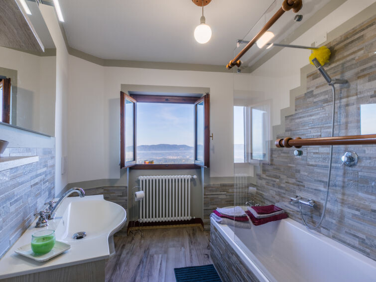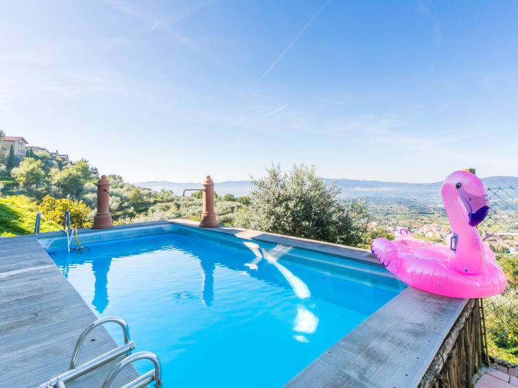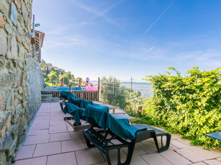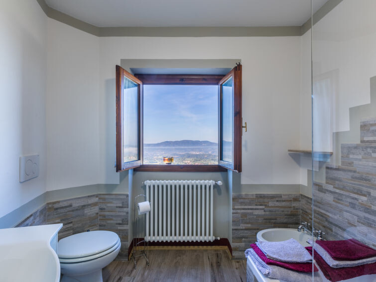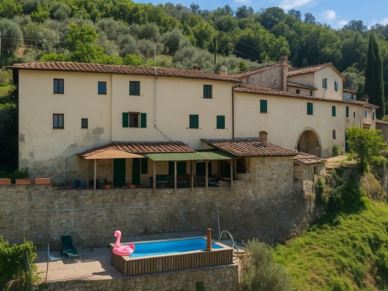 Landhuis 450 m boven zeeniveau, eenzijdig aangebouwd. 1.4 km van het centrum van Reggello, 30 km van het centrum van Greve in Chianti, 40 km van het centrum van Firenze, verhoogde ligging op een heuvel, te midden van groen. Voor alleengebruik: tuin op verschillende niveaus (omheind), openluchtzwembad verwarmd, omheind (8 x 6 m, 140 cm diepte, seizoensgebonden beschikbaarheid: 04.Apr. - 24.Okt.). Douche/WC bij het zwembad, tuinmeubelen. In het huis: centrale verwarming, Verwarming ter plaatse te betalen, verwarming alleen beschikbaar van 01.Nov. - 04.Apr.. Kok op verzoek (extra). Parkeerplaats op het terrein. Winkel, levensmiddelenwinkel, supermarkt 700 m, bushalte 2 km, treinstation "Figline Valdarno" 12 km, meer (zwemmen) "Bilancino" 70 km. Tennis 1 km, manege 1 km. Attracties in de buurt: Castelfranco di Sopra 12 km, Vallombrosa 13 km, Loro Ciuffenna 21 km, Gaiole in Chianti 36 km, Panzano in Chianti, Radda in Chianti 38 km, Siena 75 km. Auto noodzakelijk.