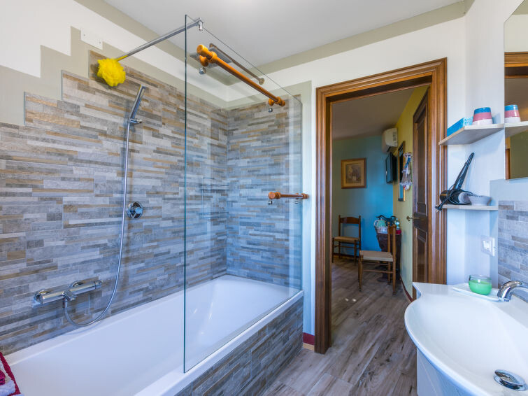 "La Sosta di Fano", halfvrijstaand huis 4-kamers 110 m2 op 2 verdiepingen, op de begane grond. Comfortabel en gezellig ingericht: woon-/eetkamer met TV, air-conditioning en heteluchtverwarming. 1 2-pers. kamer met douche/bidet/WC, TV, air-conditioning en heteluchtverwarming. Kookhoek (4-pits kookplaat, oven, afwasmachine, broodrooster, waterkoker, magnetron, diepvriezer). Bovenverdieping: (wenteltrap), 1 2-pers. kamer met douche/bidet/WC, TV, air-conditioning en heteluchtverwarming. 1 2-pers. kamer met bad/bidet/WC, TV, air-conditioning en heteluchtverwarming. Zithoek in de tuin overdekt. Terrasmeubelen. Panoramazicht op het landschap. Ter beschikking: wasmachine, strijkijzer, klamboe, kinderstoel, kinderbed tot 2 jaar, haardroger. Internet (WiFi, gratis). Geschikt voor families. Maximaal 1 huisdier/hond toegestaan. Rookmelders, brandblusser. IT048035C17IYTPXSR