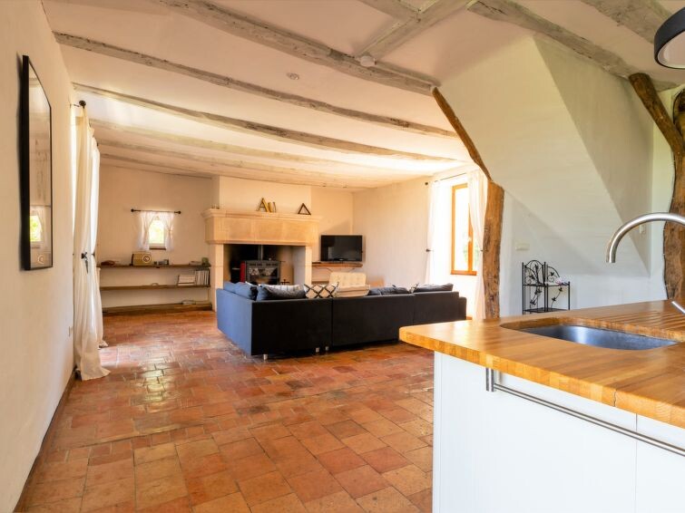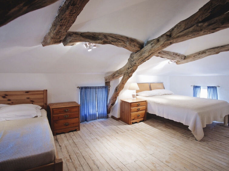 Huis 6-kamers 232 m2. Ruim en licht, comfortabel en mooi ingericht: woon-/eetkamer met eettafel. Uitgang naar de tuin. Salon met zwedenkachel en Kabel-TV (Flatscreen TV). Uitgang naar de tuin. 1 groot kamer met 1 2-pers bed (180 cm, lengte 200 cm), bad/WC. 1 kamer met 1 2-pers bed (140 cm, lengte 190 cm), douche/WC. Groot, open keuken (oven, afwasmachine, 5 kookpitten (vlammen), broodrooster, waterkoker, magnetron, diepvriezer, elektrische koffiemachine, pads voor de koffiemachine (Nespresso) extra, kookeiland). Aparte WC. Bovenverdieping: 1 kamer met afgeschuinde daken met 1 bed (90 cm, lengte 190 cm), 1 2-pers bed (140 cm, lengte 190 cm). 1 kamer met afgeschuinde daken met 1 2-pers bed (160 cm, lengte 200 cm). Douche/WC. Gas-verwarming. Groot terras 70 m2, overdekt. Terrasmeubelen, barbecue, ligstoelen (9). Mooi uitzicht op het landschap. Ter beschikking: wasmachine, strijkijzer, kinderstoel, kinderbed, haardroger. Internet (Internet (WiFi), gratis). Geschikt voor families. Rookvrij huis. Maximaal 1 huisdier/hond toegestaan. Rookmelders. Aanbod door een particulier volgens art. 155, IV van CGI.