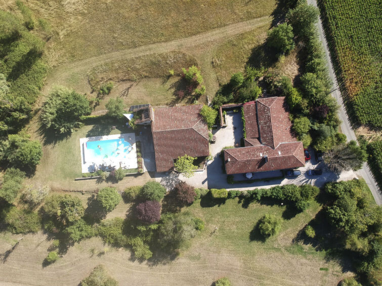 Groot landhuis "Larroque Haute", omgeven door velden. 1.5 km van het centrum van Bourlens, 6 km van het centrum van Tournon-d'Agenais, 10 km van het centrum van Fumel / Monsemprom-Libos, geïsoleerde, rustige ligging op een heuvel, 25 km van het meer. Voor alleengebruik: wild terrein 6.000 m2, mooie tuin ter ontspanning, openluchtzwembad hoekig (12 x 6 m, 125 - 200 cm diepte, seizoensgebonden beschikbaarheid: 01.Apr. - 31.Okt.) met trap en oprolbaar afdekscherm. Tafeltennis, terras, parkeerplaats (voor 4 auto's) bij het huis op het terrein. Winkel 6 km, supermarkt 6 km, restaurant 6 km, bakkerij 6 km, bushalte "Fumel-Place du Postel" 3 km, meer (zwemmen) "Lac de Montcuq" 25 km. Golfterrein (18 holes) 35 km. Attracties in de buurt: Villeneuve-sur-Lot 30 km, Agen / Moissac 45 km, Cahors 50 km, Bergerac / Sarlat / Montauban 70 km, Toulouse 120 km. Een deel van het huis is afgesloten en niet bezet.
