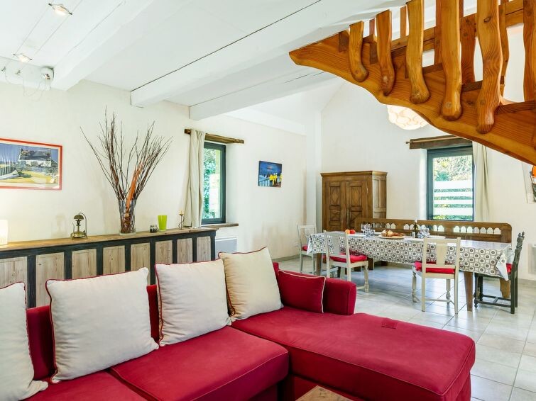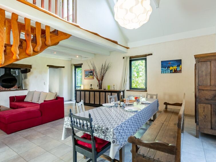 "Les Trois Baudets", huis 3-kamers 125 m2 op 2 verdiepingen. Mooi en gezellig ingericht: woon-/eetkamer met open haard, eettafel, TV en CD-speler. Uitgang naar de tuin, naar het terras. Open keuken (oven, afwasmachine, 4 keramische glas kookplaten, broodrooster, waterkoker, magnetron, elektrische koffiemachine) met kleine eettafel. Douche, aparte WC. Elektrische verwarming. Bovenverdieping: 1 kamer met afgeschuinde daken met 2 bedden (90 cm, lengte 200 cm). 1 kamer met afgeschuinde daken met 1 2-pers bed (160 cm). Parketvloeren. Terras, op het zuiden gelegen, tuin. Terrasmeubelen, barbecue (verrijdbaar). Ter beschikking: wasmachine, strijkijzer, kinderstoel, kinderbed. Internet (Internet (WiFi), gratis). Rookvrij huis. Rookmelders, brandblusser.