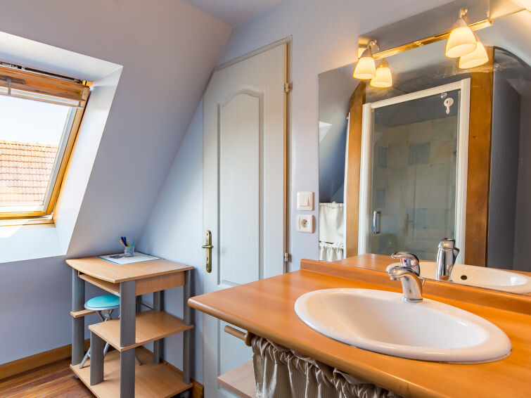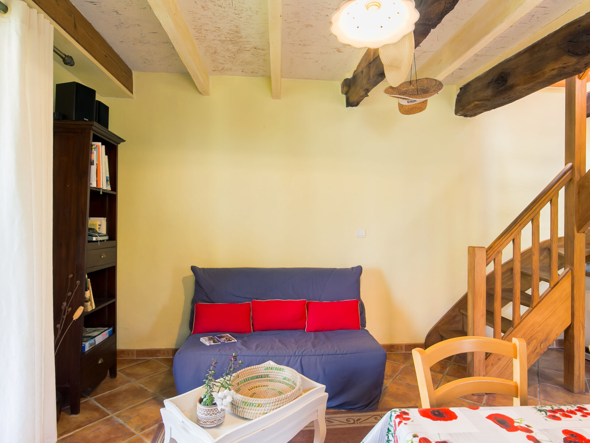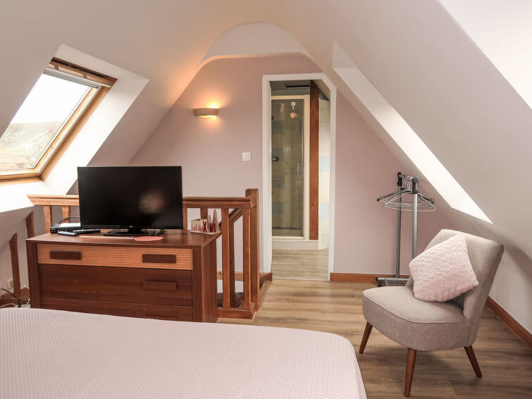 "L'Hirondelle", huis 2-kamers 30 m2 op 2 verdiepingen. Licht, gezellig ingericht: woon-/eetkamer met eettafel, Sat-TV, stereo-installatie en DVD. Uitgang naar de tuin. Open keuken (oven, afwasmachine, 4 keramische glas kookplaten, broodrooster, waterkoker, magnetron, elektrische koffiemachine). Bovenverdieping: 1 open kamer met afgeschuinde daken met 1 2-pers bed (160 cm, lengte 200 cm), douche/WC en elektrische verwarming. Houten vloeren. Zithoek in de tuin. Terrasmeubelen, barbecue (verrijdbaar). Ter beschikking: wasmachine, strijkijzer, kinderstoel, kinderbed. Internet (Internet (WiFi), gratis). Rookvrij huis. Maximaal 1 huisdier/hond toegestaan. Rookmelders.