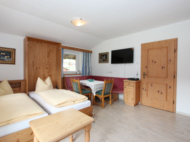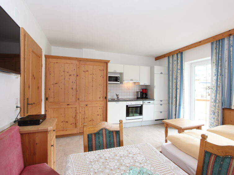 Appartement 2-kamers 47 m2, op de bovenverdieping. Mooi en stijlvol ingericht: hal. 1 2-pers. kamer met Sat-TV (Flatscreen TV). Uitgang naar het balkon. Woon-/slaapkamer met 2 bedden, eethoek en Sat-TV (Flatscreen TV). Uitgang naar het balkon. Open keuken (oven, afwasmachine, 4 keramische glas kookplaten, magnetron). Douche, aparte WC. Comfortabele inrichting in landelijke stijl. 2 balkons. Balkonmeubilair. Mooi uitzicht op de bergen en het landschap. Ter beschikking: Internet (Internet (WiFi)).