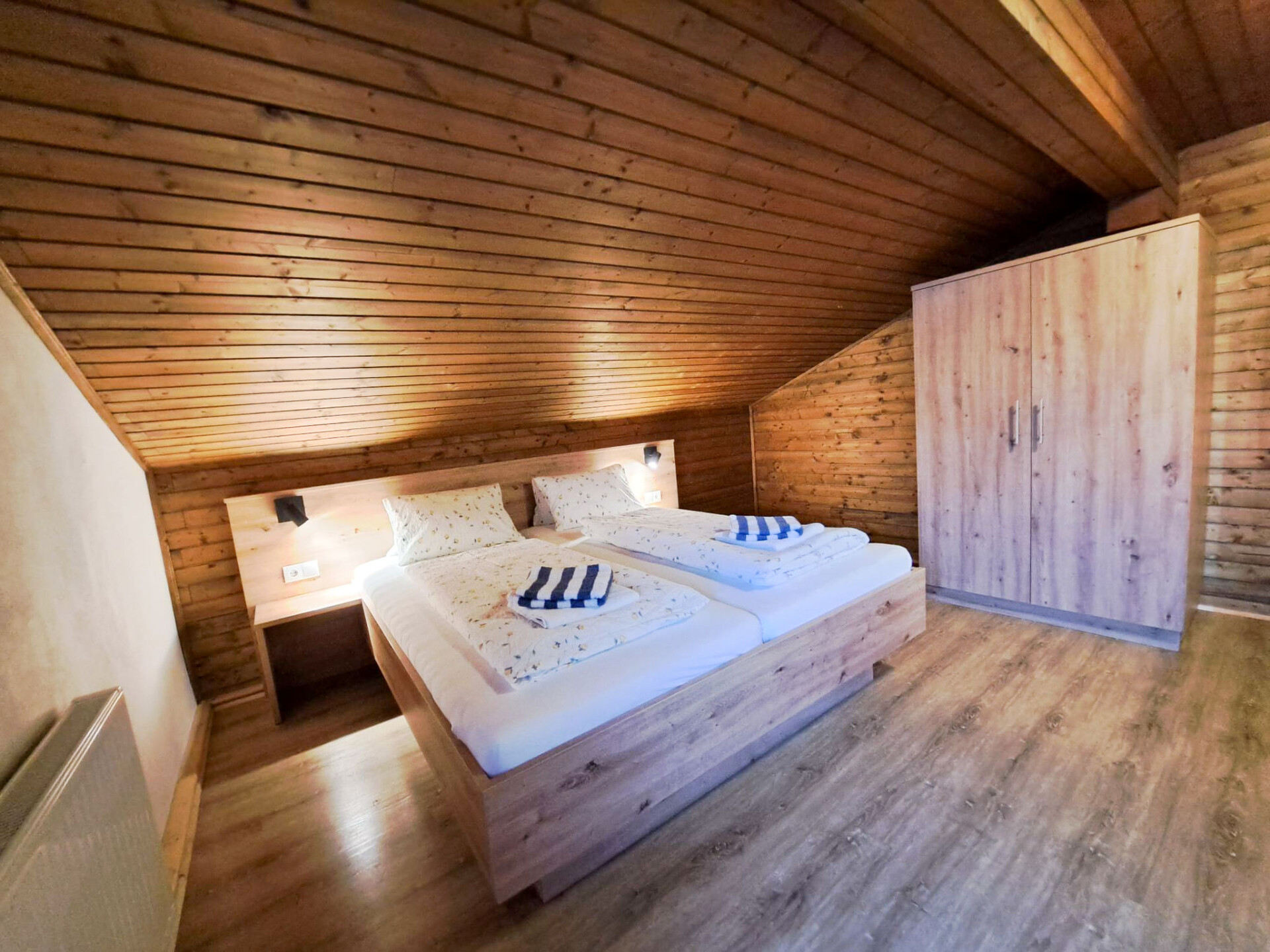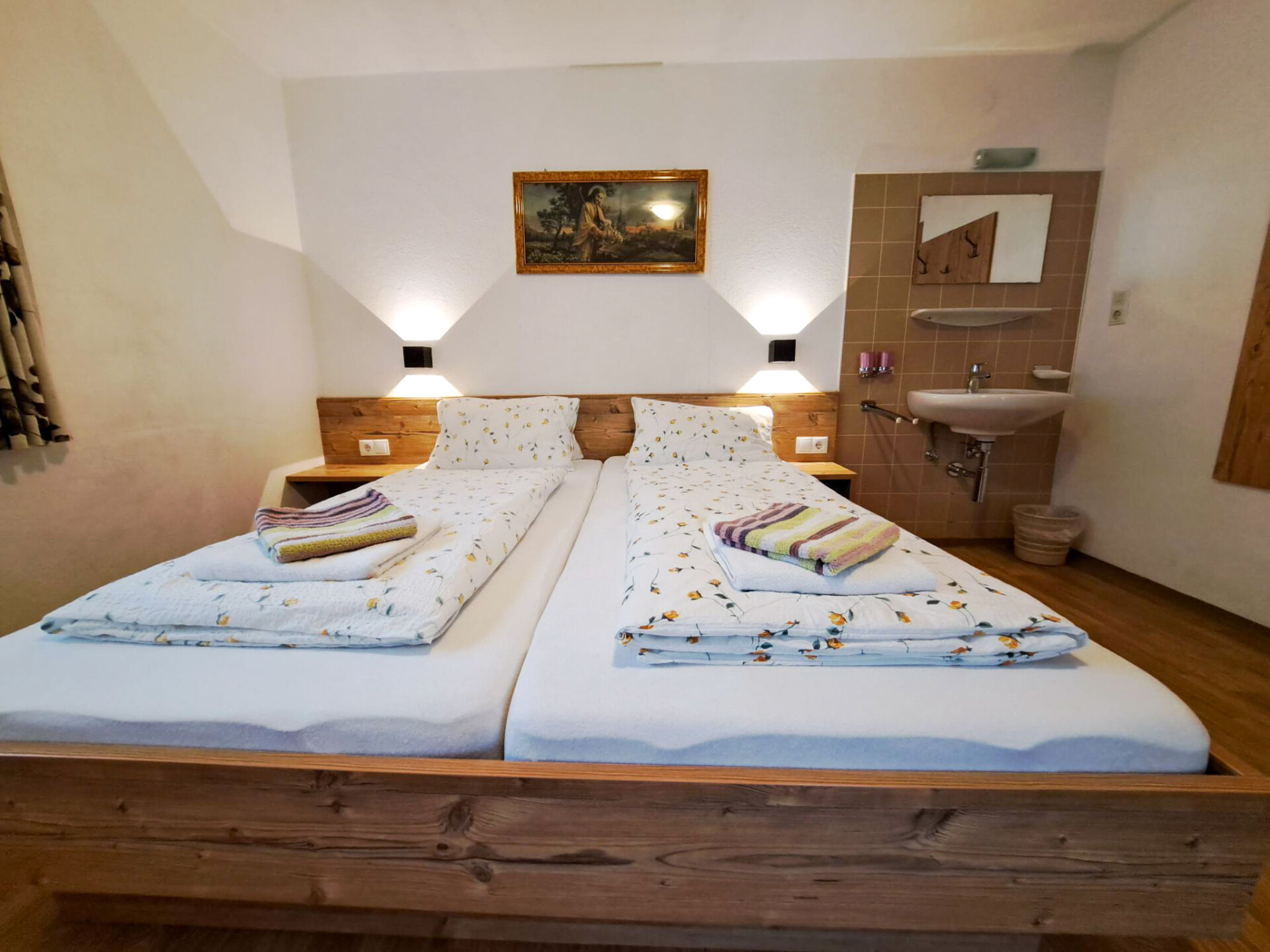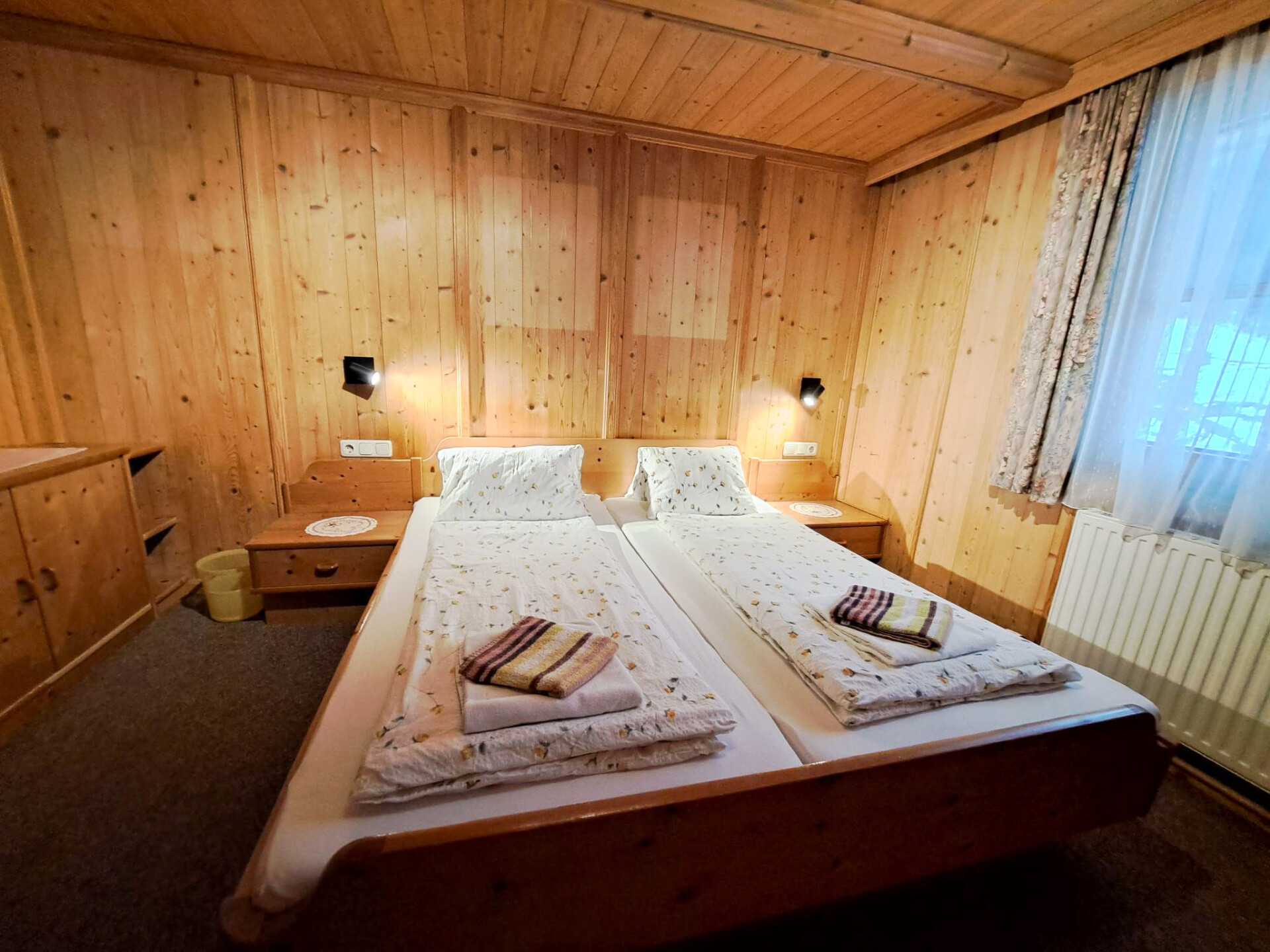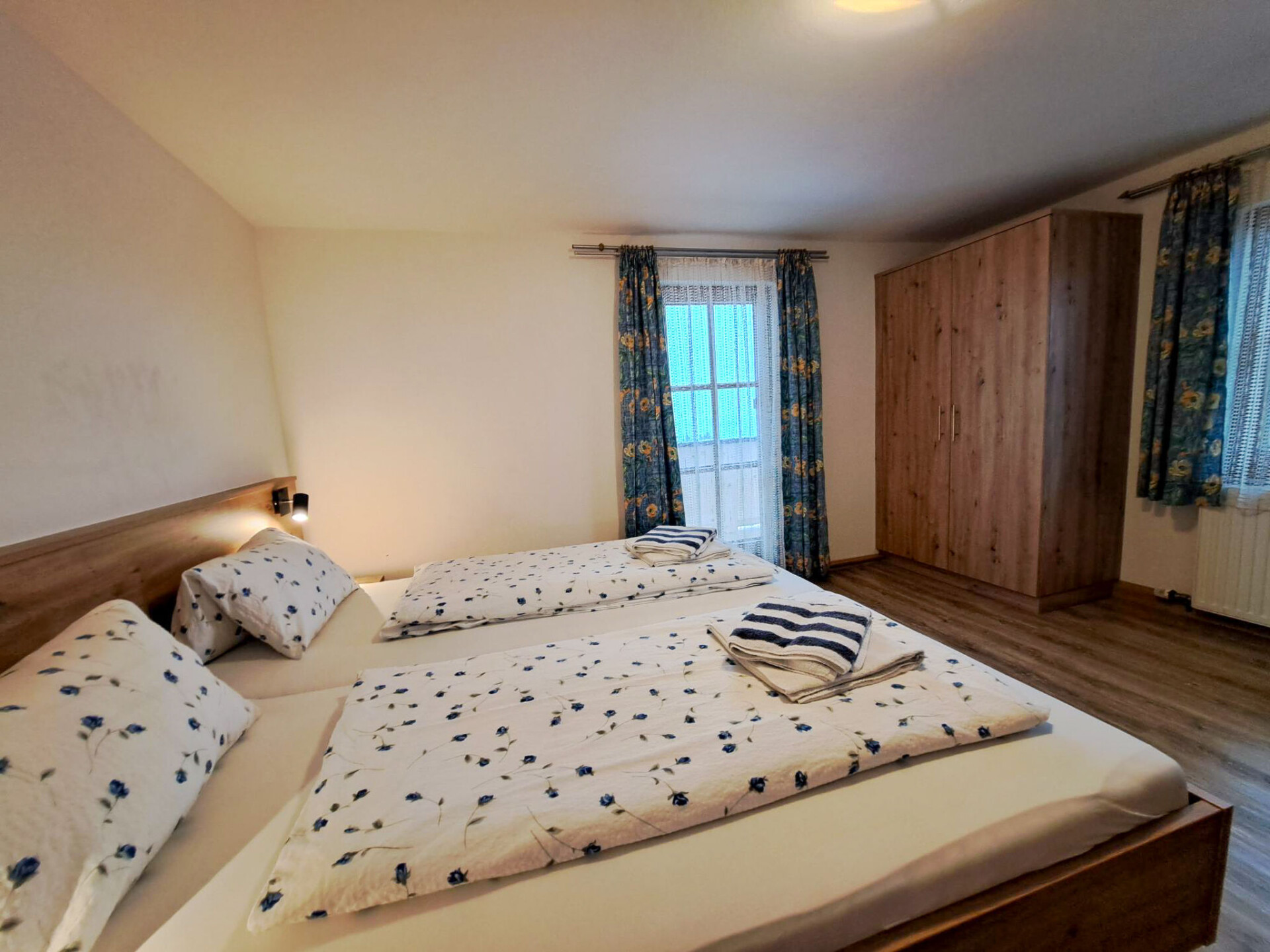 "Oberhaus", huis 9-kamers 200 m2 op 3 verdiepingen. Doelmatig en rustiek ingericht: woonkamer met eethoek, Sat-TV en tegelkachel. 1 2-pers. kamer. Keuken (oven, afwasmachine, 4 keramische glas kookplaten, broodrooster, waterkoker, magnetron, diepvriezer, elektrische koffiemachine) met eethoek. Aparte WC. Bovenverdieping: 1 kamer met 1 bed, 1 2-pers bed en wastafel. Uitgang naar het balkon. 3 2-pers. kamers, elke kamer heeft wastafel. Uitgang naar het balkon. 1 kamer met 1 bed, 1 2-pers bed en wastafel. Douche, aparte WC. 2e Verdieping: 2 2-pers. kamers met afgeschuinde daken, elke kamer heeft wastafel. Uitgang naar het balkon. Douche, aparte WC. Olie-verwarming. Parketvloeren. 2 balkons, terras. Terrasmeubelen, barbecue (verrijdbaar), ligstoelen. Mooi uitzicht op de bergen. Ter beschikking: kinderstoel, kinderbed. Internet (Internet (WiFi), gratis). Rookvrij huis. Rookmelders, brandblusser.