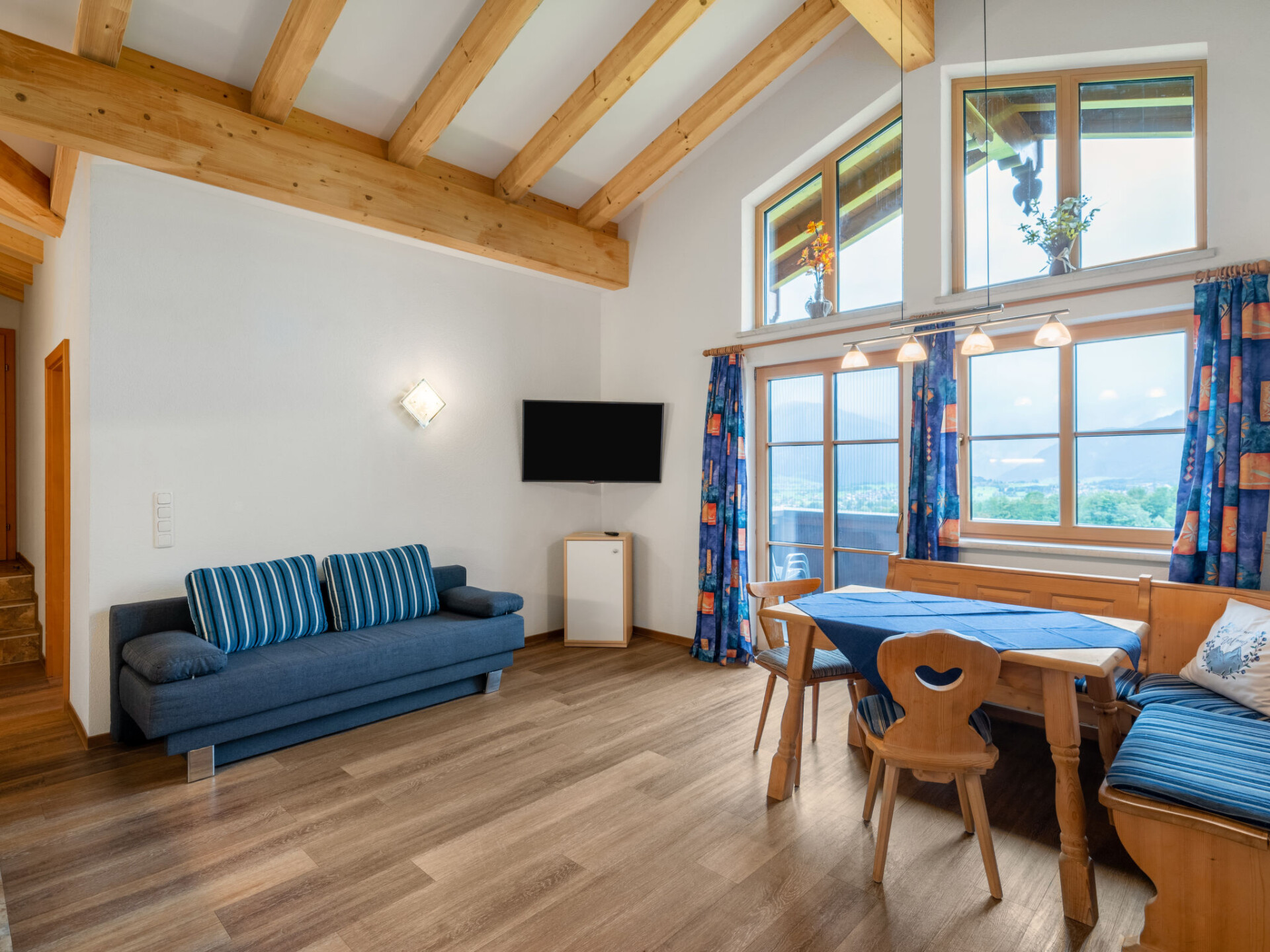 "Steinernes Meer", appartement 3-kamers 68 m2, op de bovenste verdieping. Ruim en licht, gedeeltelijk afgeschuinde daken, gezellig ingericht: hal. Woon-/eetkamer met eethoek en Kabel-TV (Flatscreen TV). Uitgang naar het balkon. 1 2-pers. kamer. 1 kamer met 1 bed en 1 2-pers bed. Open keuken (oven, afwasmachine, 4 keramische glas kookplaten, magnetron, elektrische koffiemachine). Douche/WC. Balkonmeubilair. Zeer mooi panoramazicht op de bergen en het landschap. Ter beschikking: Internet (ADSL-aansluiting, gratis). Rookmelders. 50619-005594-2020
