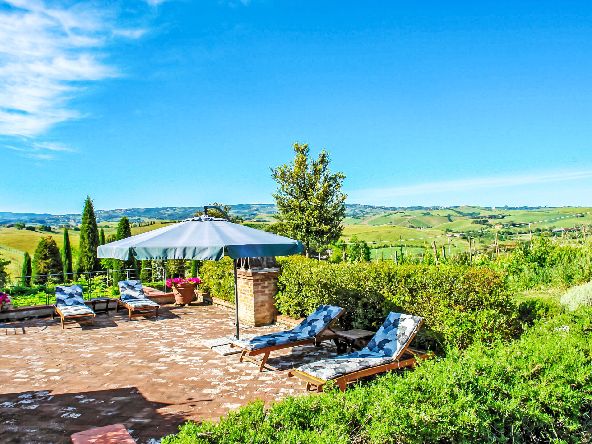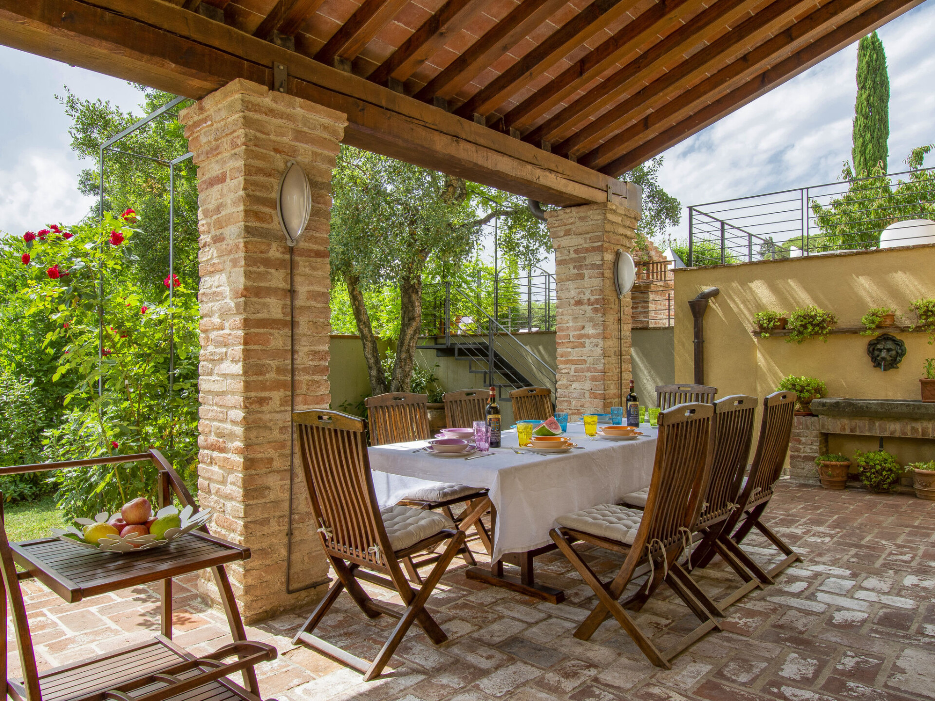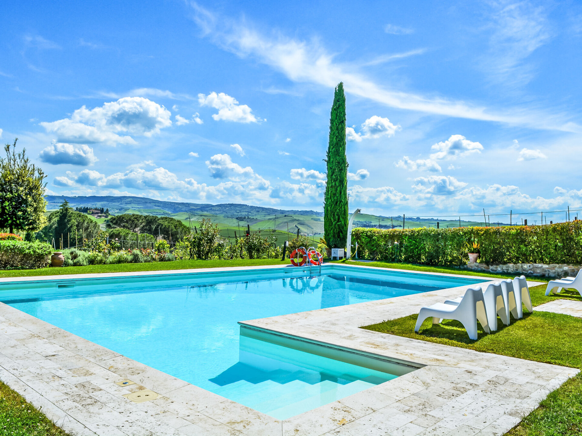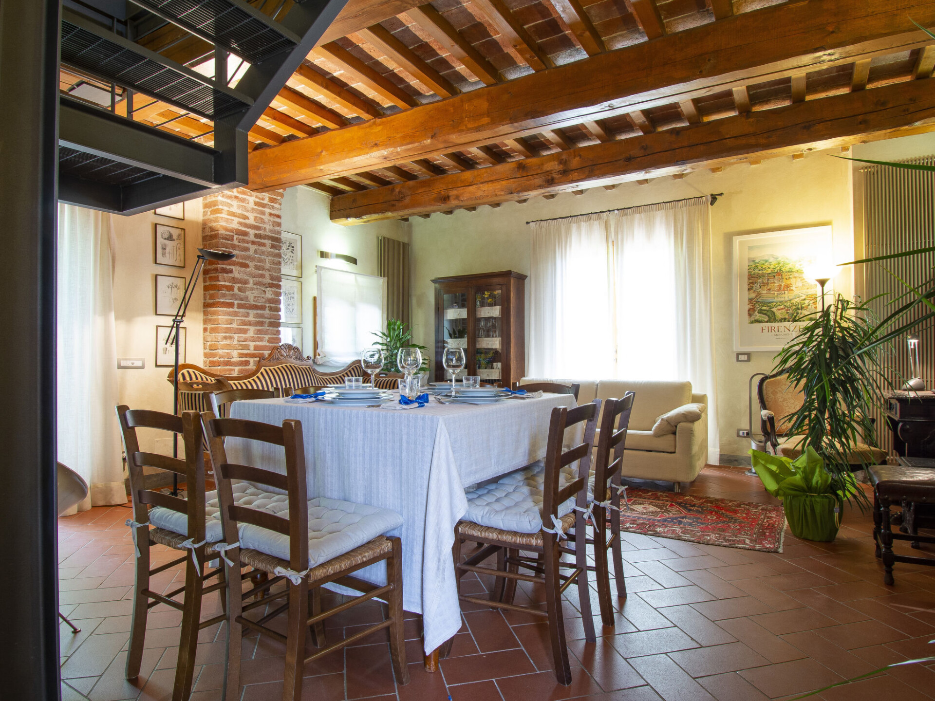 Zeer mooi, comfortabele woonboerderij "Tassinaia", van 3 verdiepingen, uit de 19e eeuw, gerenoveerd, omgeven door wijngaarden. Boven Castelfiorentino (2 km), geïsoleerde, rustige, zonnige ligging op een heuvel, perfecte locatie: in het centrum en toch rustig gelegen. Voor medegebruik: terrein 2 ha (omheind), mooie tuin ter ontspanning. Voor alleengebruik: verzorgde tuin op verschillende niveaus met gazon en bloemen, openluchtzwembad (12 x 6 m, 145 - 300 cm diepte, seizoensgebonden beschikbaarheid: 08.Mei. - 16.Okt.). Buitendouche, terras, tuinmeubelen, barbecue. In het huis: Internet (WiFi), centrale verwarming, alarmsysteem, wasmachine, verwarming alleen beschikbaar van 01.Nov. - 14.Apr.. Wissel van linnengoed 1 maal per week. Kok op verzoek (extra). Parkeerplaats bij het huis. Winkel 2 km, supermarkt 1 km, restaurant 2 km, bushalte 4 km, treinstation "Castelfiorentino" 2 km. Golfterrein 15 km, tennis 1 km, manege 2 km. Attracties in de buurt: Firenze 40 km, Volterra 30 km, Siena 55 km. De eigenaar woont op hetzelfde terrein.