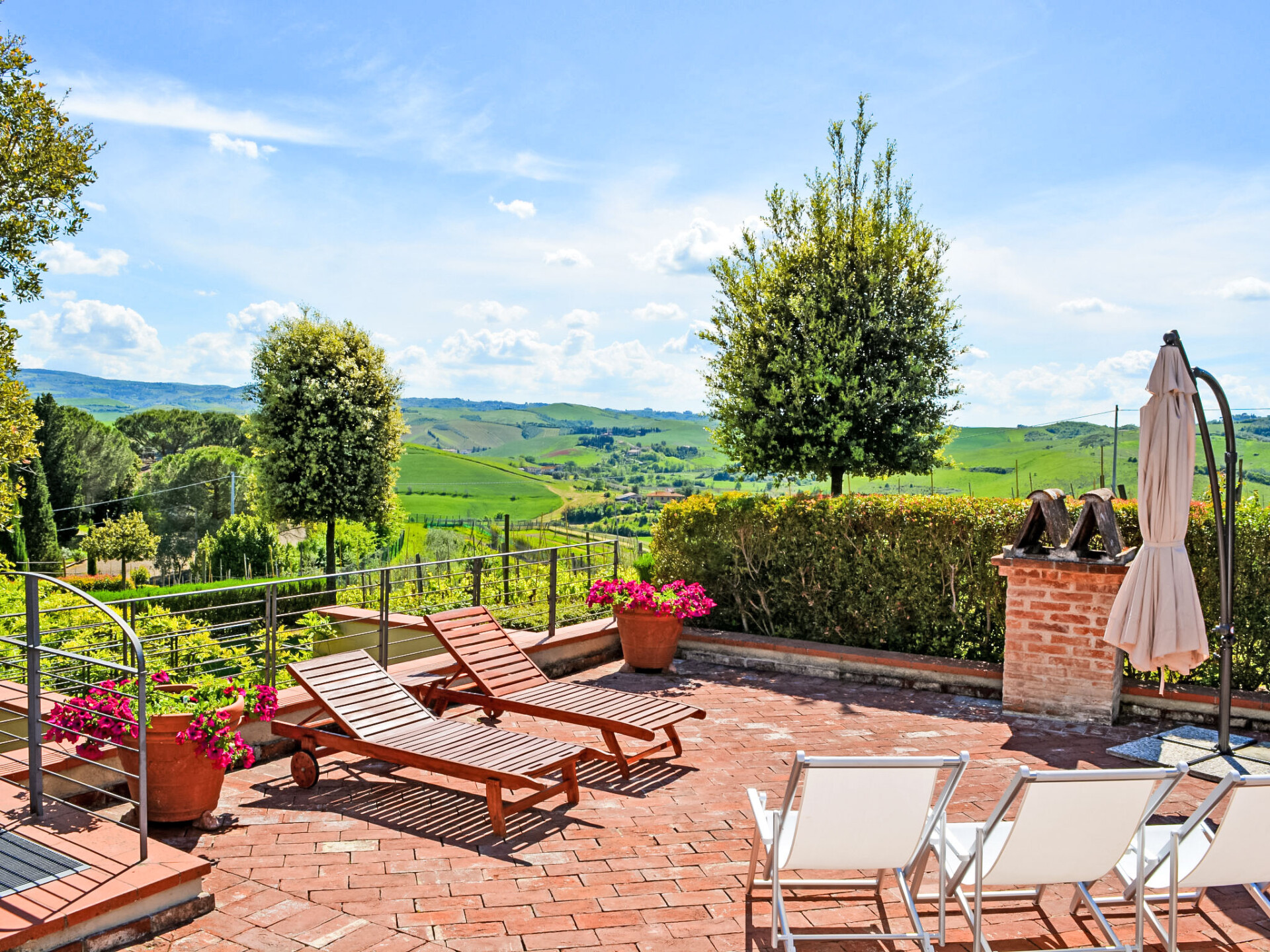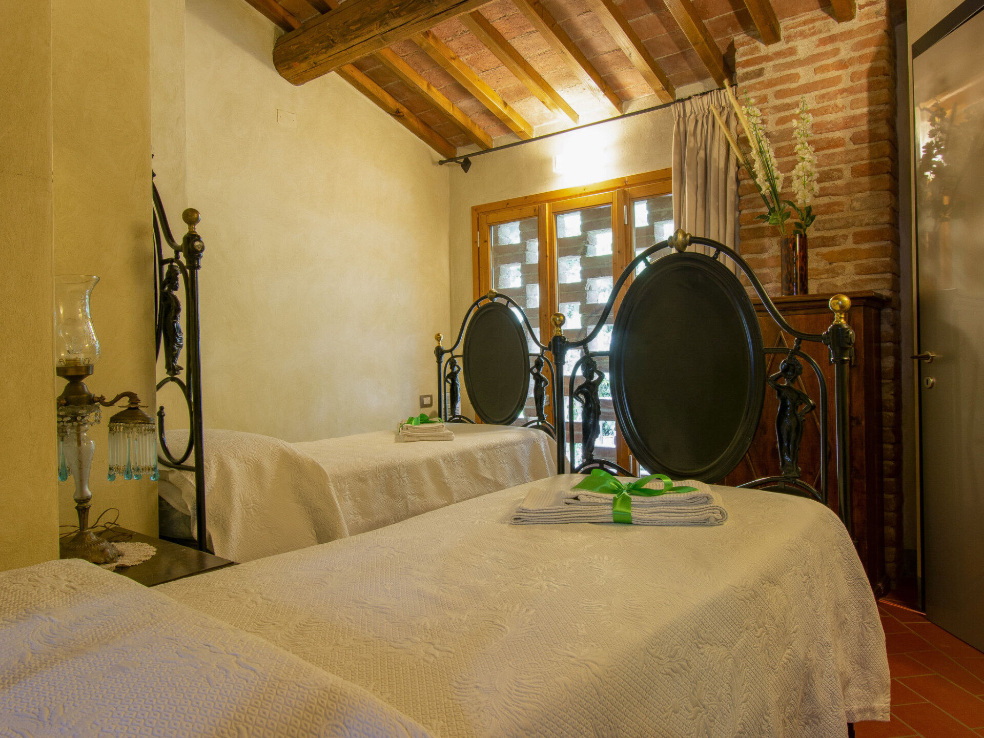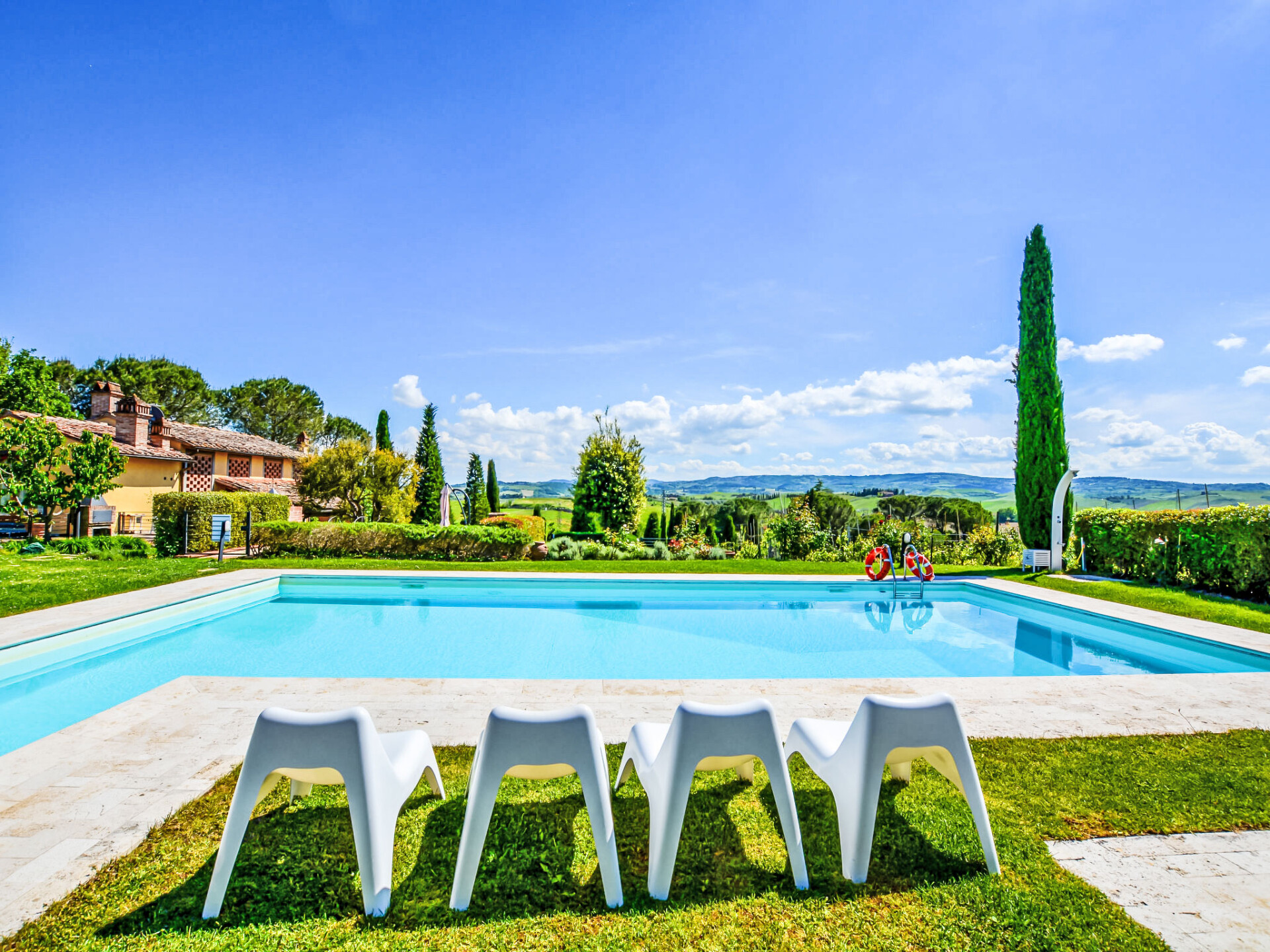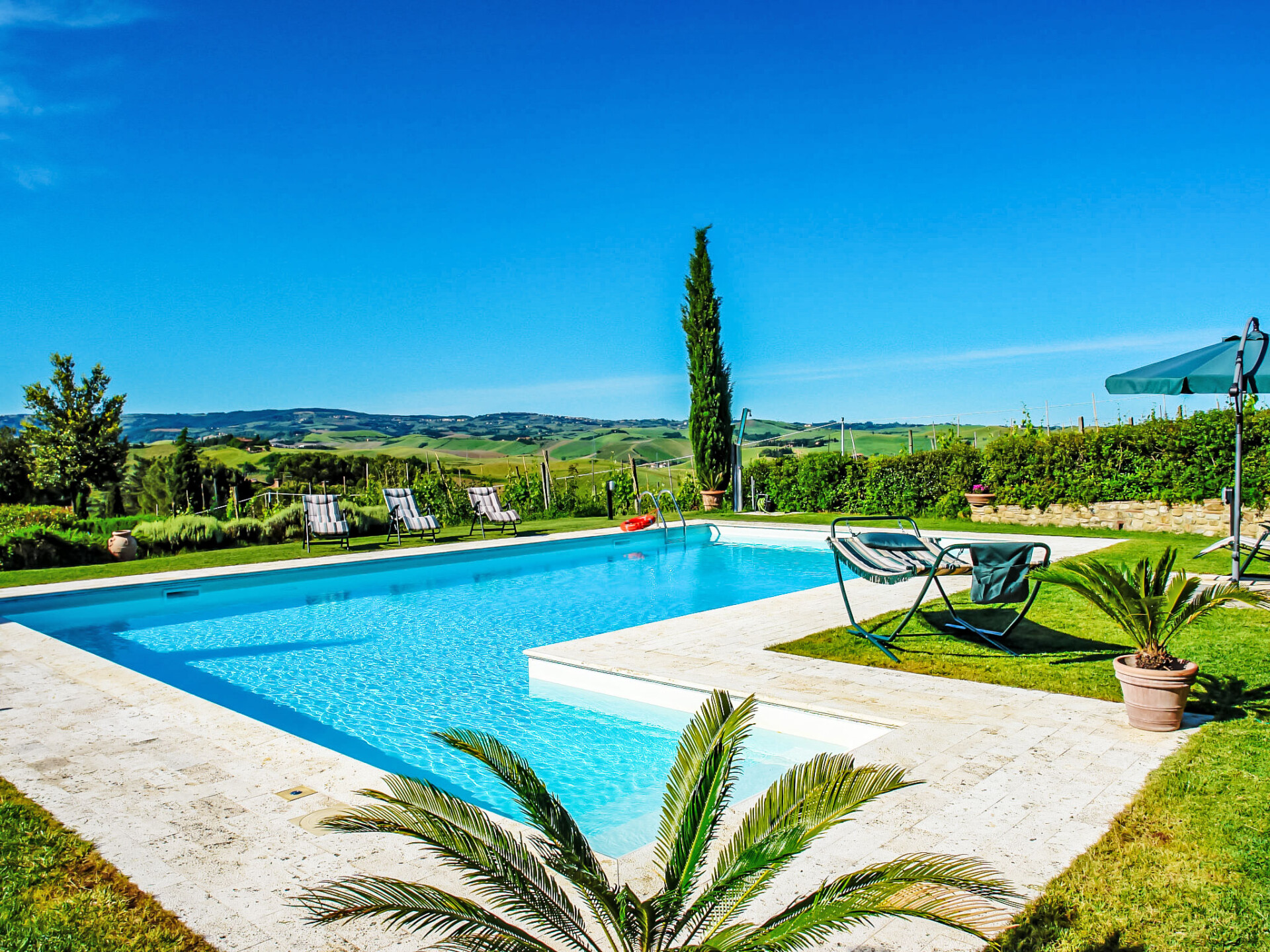 Zeer mooi, comfortabele woonboerderij "Tassinaia", van 3 verdiepingen, uit de 19e eeuw, gerenoveerd, omgeven door wijngaarden. Boven Castelfiorentino (2 km), geïsoleerde, rustige, zonnige ligging op een heuvel, perfecte locatie: in het centrum en toch rustig gelegen. Voor medegebruik: terrein 2 ha (omheind), mooie tuin ter ontspanning. Voor alleengebruik: verzorgde tuin op verschillende niveaus met gazon en bloemen, openluchtzwembad (12 x 6 m, 145 - 300 cm diepte, seizoensgebonden beschikbaarheid: 08.Mei. - 16.Okt.). Buitendouche, terras, tuinmeubelen, barbecue. In het huis: Internet (WiFi), centrale verwarming, alarmsysteem, wasmachine, verwarming alleen beschikbaar van 01.Nov. - 14.Apr.. Wissel van linnengoed 1 maal per week. Kok op verzoek (extra). Parkeerplaats bij het huis. Winkel 2 km, supermarkt 1 km, restaurant 2 km, bushalte 4 km, treinstation "Castelfiorentino" 2 km. Golfterrein 15 km, tennis 1 km, manege 2 km. Attracties in de buurt: Firenze 40 km, Volterra 30 km, Siena 55 km. De eigenaar woont op hetzelfde terrein.