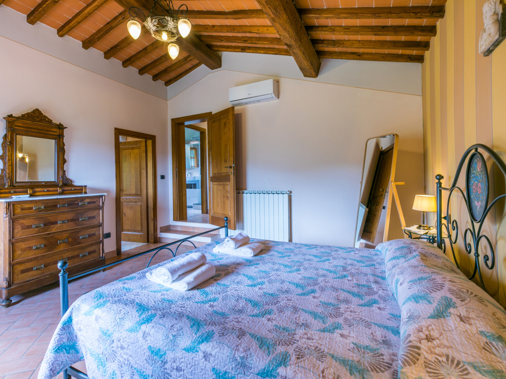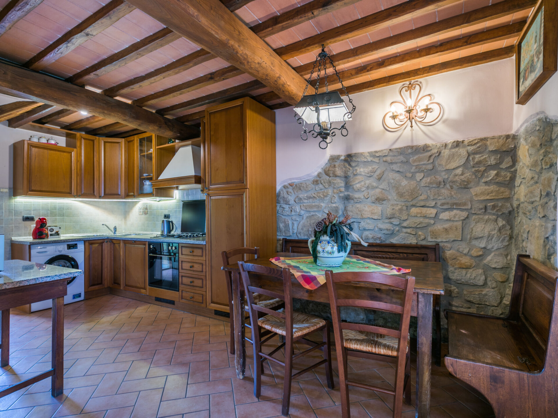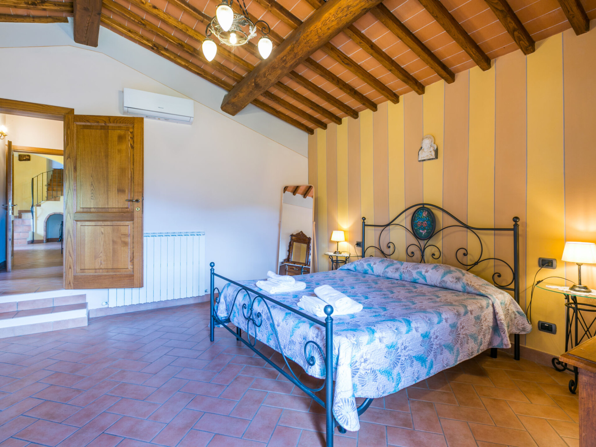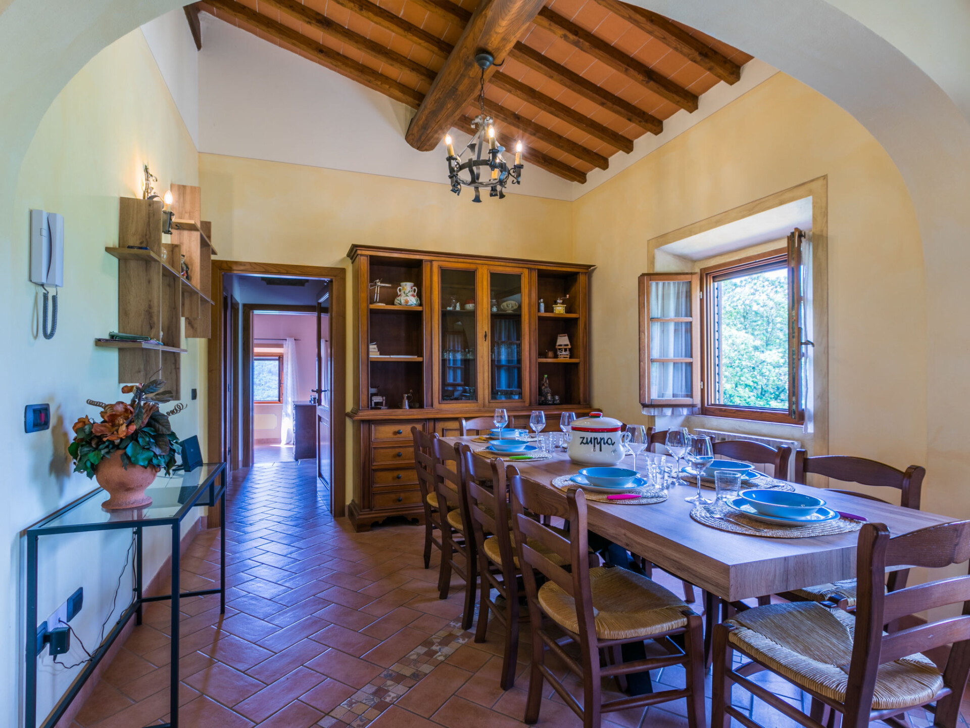 Karakteristiek Toscaans stenen huis, waarvan de hoofdverdieping is gerenoveerd en ingericht als een enkele wooneenheid. Op de oostelijke helling van de Chiantiheuvels, op een geïsoleerde, zeer panoramische locatie tussen de olijfbomen. Mooi landhuis "Tegliaia", 400 m boven zeeniveau, vrijstaand, gerenoveerd. 5 km van het centrum van Montevarchi, 45 km van het centrum van Siena, 50 km van het centrum van Firenze, rustige, zonnige ligging tegen een helling, te midden van groen. Voor alleengebruik: terrein, openluchtzwembad omheind (5 x 10 m, 140 cm diepte, seizoensgebonden beschikbaarheid: 27.Mei. - 30.Sep.). Buitendouche, prieel (20 m2), terras, tuinmeubelen, barbecue. In het huis: internetaansluiting, Internet (WiFi), centrale verwarming, wasmachine, Verwarming ter plaatse te betalen (01.Nov. - 15.Apr.), verwarming alleen beschikbaar van 01.Nov. - 15.Apr.. Smalle toegangsweg tot aan het huis (50 m onverharde weg). Parkeerplaats op het terrein. Levensmiddelenwinkel 2 km, winkelcentrum 5 km, restaurant 2 km, treinstation "Montevarchi" 5 km. Attracties in de buurt: Montegonzi 7 km, Bucine 10 km, Gaiole in Chianti 24 km, Castello di Meleto 27 km, Radda in Chianti 28 km, Castellina in Chianti 39 km.