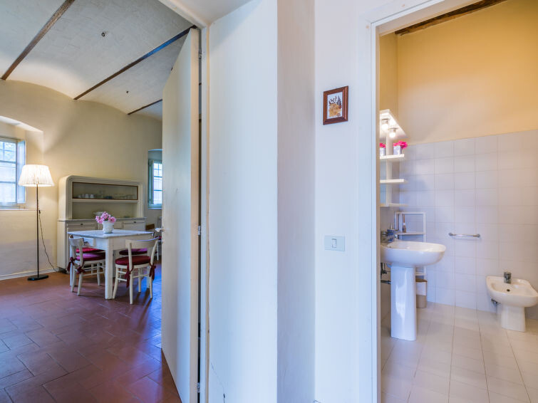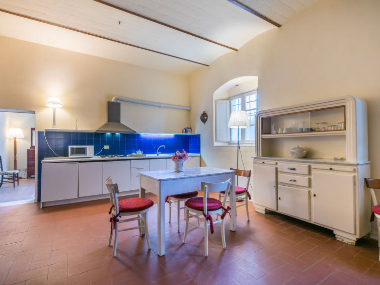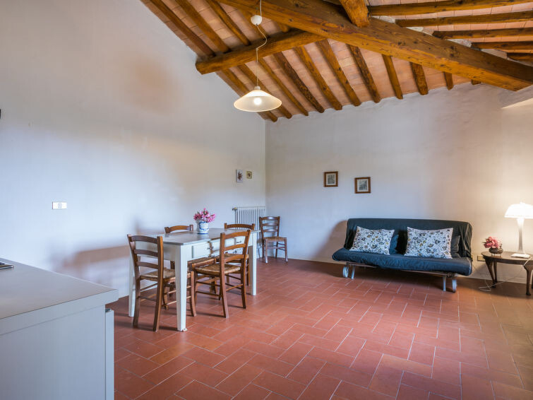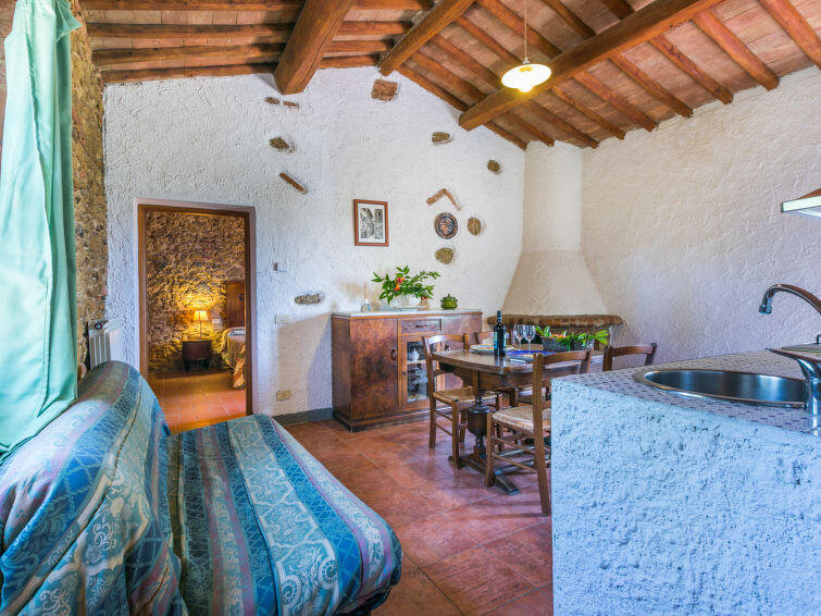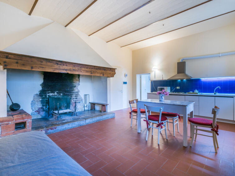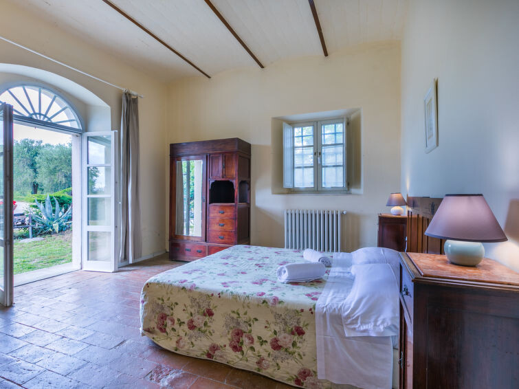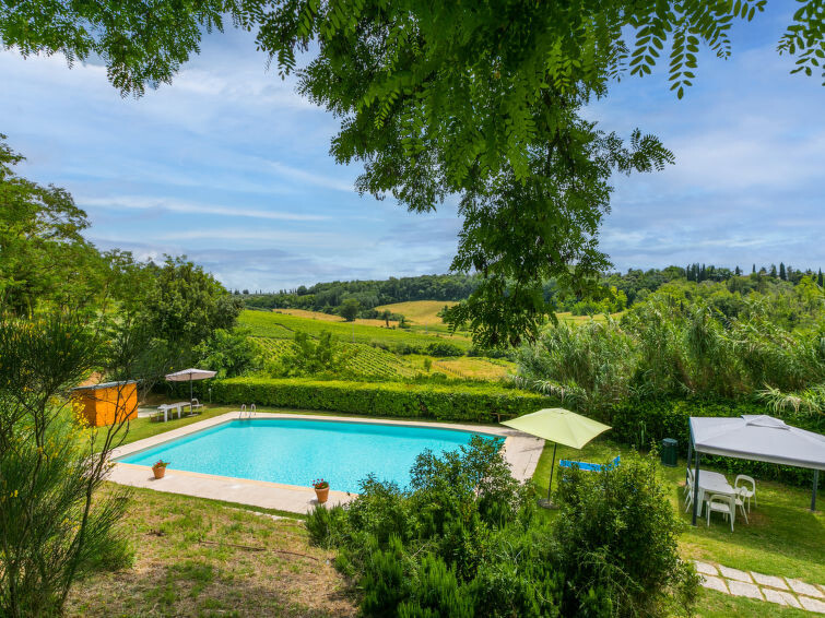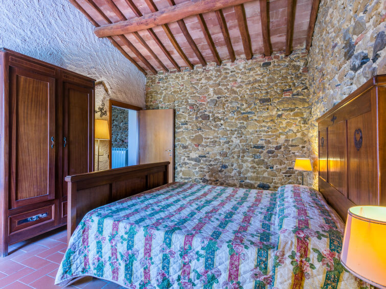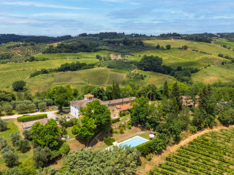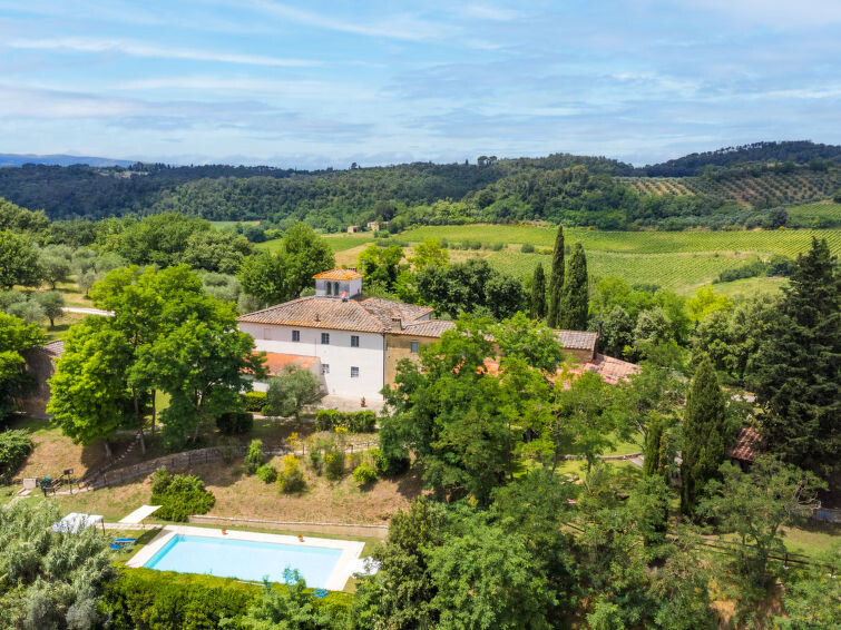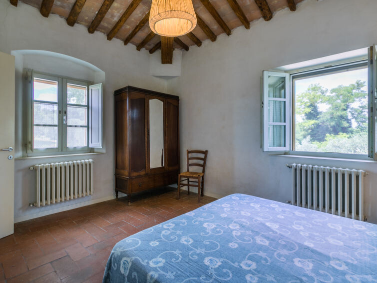 Boerderij omgeven door wijn- en olijfboomgaarden van de Chiantistreek. Elk van de 12 appartementen, gelegen in het herenhuis en in een voormalige hooischuur, beschikt over een eigen buitenruimte of over een eettafel op de terassen rondom het hoofdgebouw. Centrale ligging, ideaal om op verkenningstocht te gaan door het mooie landschap en om de culturele bezienswaardigheden van de regio te bezoeken. Boerderij "La Moraia", gerenoveerd. 14 km van het centrum van Castellina in Chianti, 18 km van het centrum van San Gimignano, 50 km van het centrum van Firenze, verhoogde ligging, te midden van groen. Voor medegebruik: tuin, openluchtzwembad (7 x 14 m, 120 - 160 cm diepte, seizoensgebonden beschikbaarheid: 09.Mei. - 26.Sep. openingstijden zwembad: 09:00-19:00). Patio, barbecue. In het huis: centrale verwarming, wasmachine (voor medegebruik, extra), Verwarming ter plaatse te betalen, verwarming alleen beschikbaar van 01.Nov. - 04.Apr.. Toegangsweg tot aan het huis (1 km onverharde weg). Parkeerplaats. Supermarkt 5 km, restaurant 5 km, bushalte 5 km, treinstation "Poggibonsi" 5 km, thermaalbad "Rapolano Terme" 55 km. Tennis 5 km. Attracties in de buurt: Monteriggioni 14 km, Barberino Val d'Elsa 16 km, San Donato 21 km, Radda in Chianti e Badia a Passignano 25 km, Siena 30 km, Volterra 38 km. De afgebeelde foto is slechts een voorbeeld. Vergelijkbare accommodaties kunnen worden geboekt.