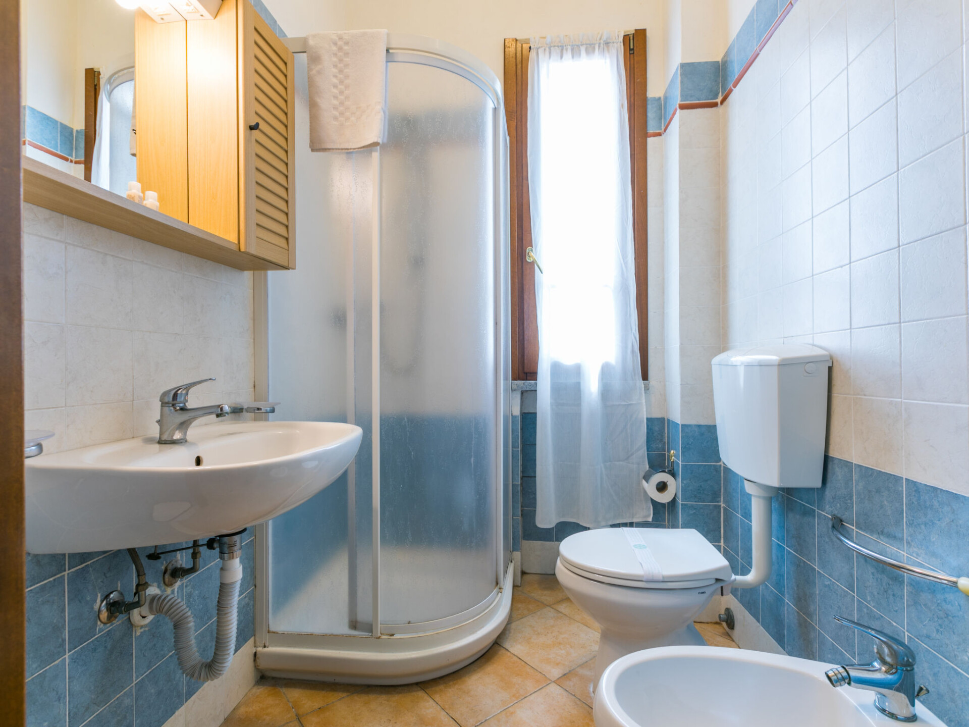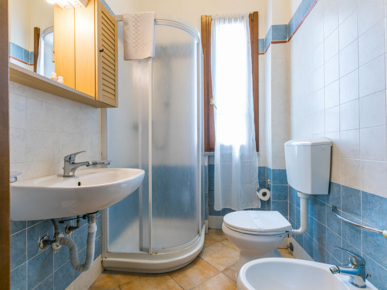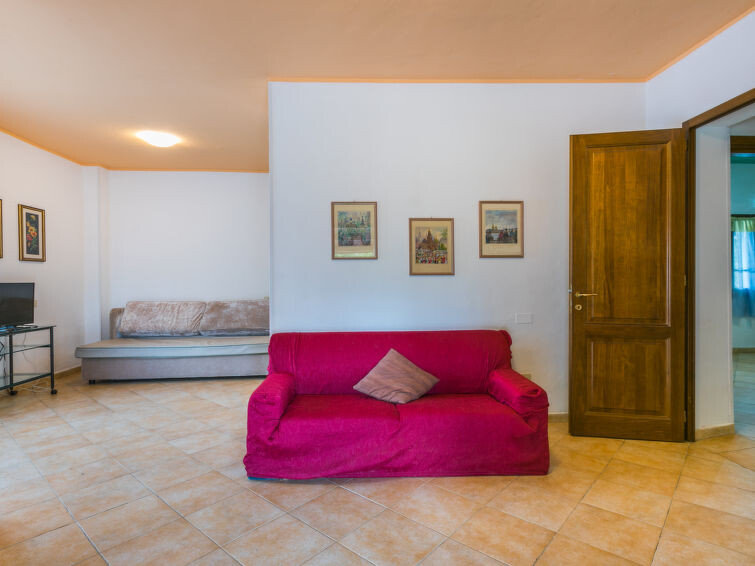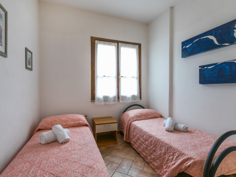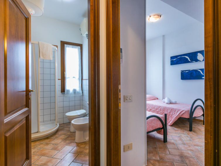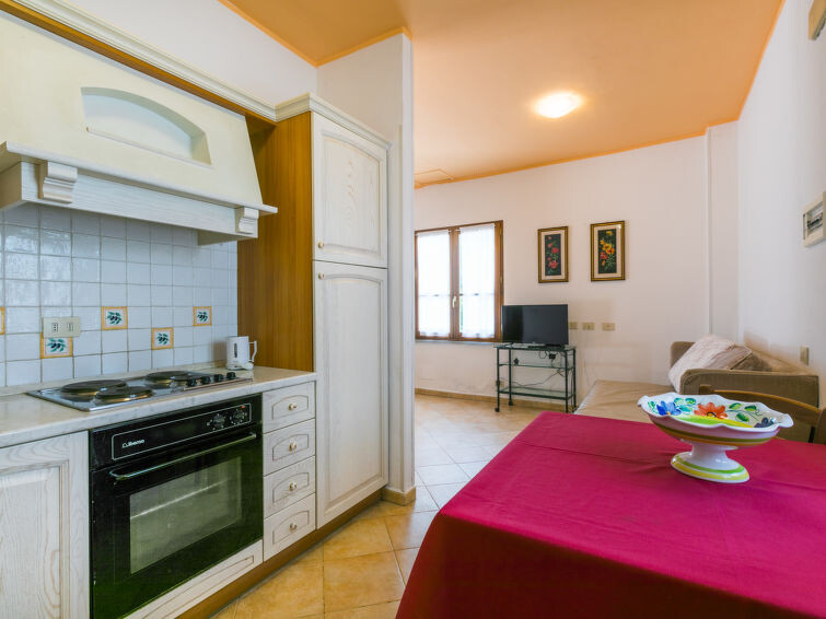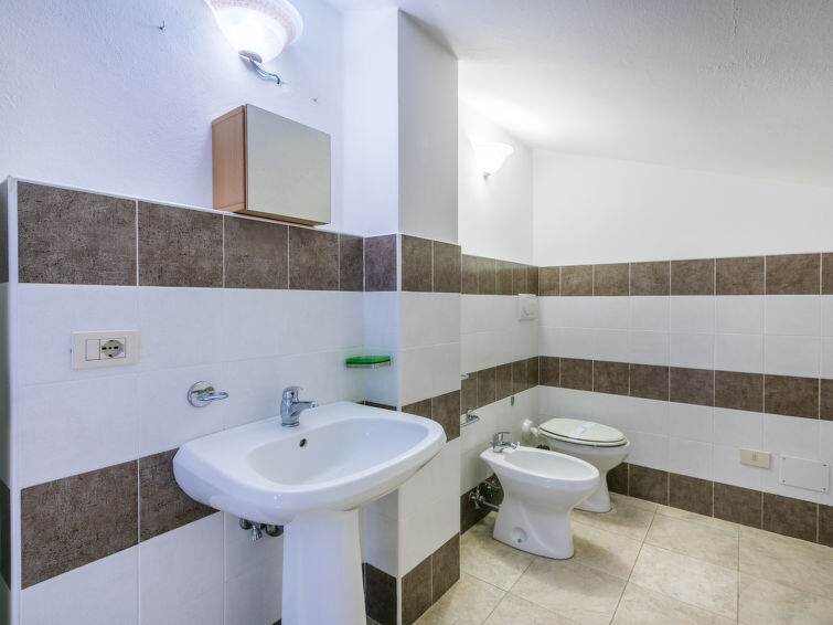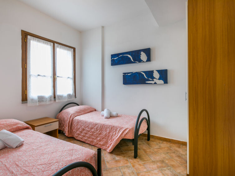 "Tipologia Trilocale", appartement 3-kamers 55 m2. Woon-/eetkamer met 1 2-pers divanbed (160 cm, lengte 190 cm), Digitale TV en air-conditioning. 1 2-pers. kamer met air-conditioning. 1 kamer met 2 bedden en air-conditioning. Kookhoek (4-pits kookplaat, oven, diepvriezer). Douche/bidet/WC. Ter beschikking: Internet (WiFi, gratis). Maximaal 1 huisdier/hond toegestaan. IT048019A1CQ3WAW9I