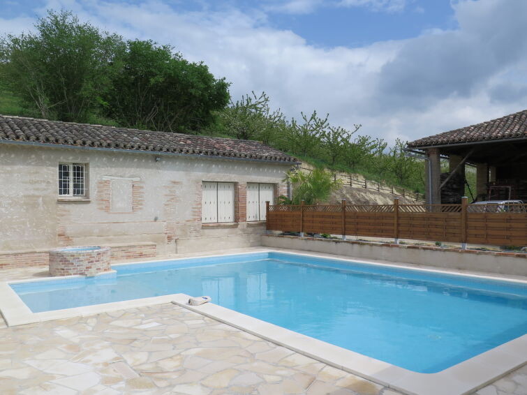 Mooi, comfortabel landhuis "Touzy". 6 km van het centrum van L'Honor-de-Cos, 14 km van het centrum van Montauban, 45 km van het centrum van Cahors, tegen een helling, te midden van groen. Voor alleengebruik: wild terrein 1.000 m2, openluchtzwembad (9 x 5 m, 1 - 150 cm diepte, seizoensgebonden beschikbaarheid: 01.Jan. - 31.Dec.) met trap en alarminstallatie. WC bij het zwembad, buitendouche, terras (60 m2), tuinmeubelen. 400 m lange rommelige, steile toegangsweg. Parkeerplaats bij het huis op het terrein. Bushalte "Montauban, Aussone" 11 km.