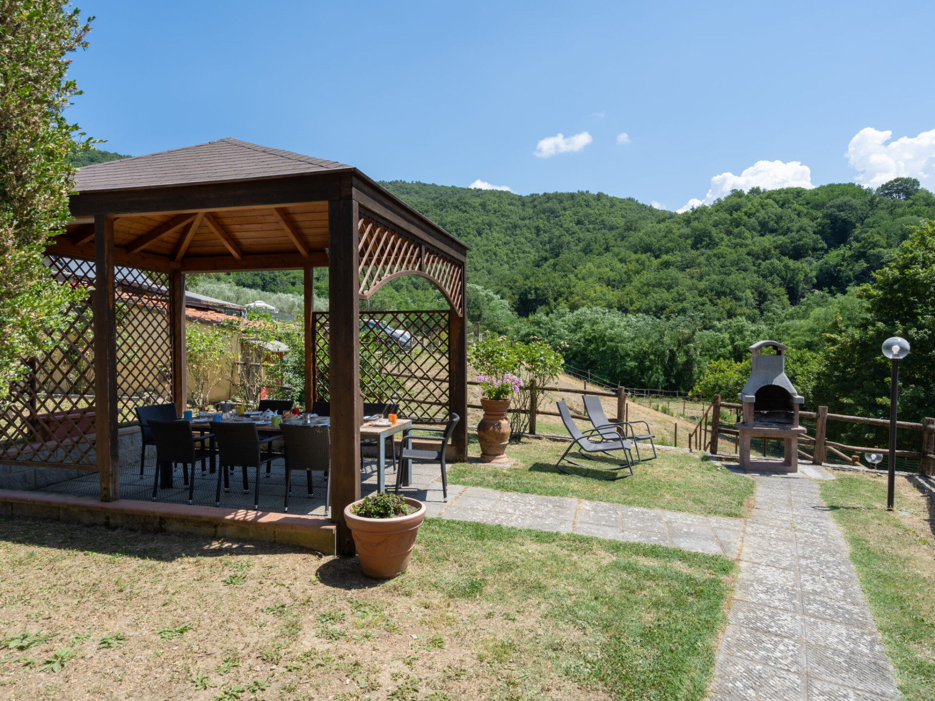 Landhuis "Villa". In het gehucht Londa, 8 km van het centrum van Rufina, 7 km van het centrum van Dicomano, 40 km van het centrum van Firenze, geïsoleerde, verhoogde ligging op een heuvel. Voor medegebruik: terrein 5 ha met bomen, wilde tuin. Prieel, tuinmeubelen, barbecue. Voor alleengebruik: tuin 500 m2, wilde tuin, openluchtzwembad (13 x 5 m, 100 - 250 cm diepte, seizoensgebonden beschikbaarheid: 01.Mei. - 30.Sep.). Douche/WC bij het zwembad, tuinmeubelen. 500 m lange zeer steile toegangsweg. Parkeerplaats op het terrein. Winkel 1 km, supermarkt 6 km, treinstation "Contea" 4 km. Golfterrein (18 holes) 30 km, manege 5 km. De eigenaar woont op hetzelfde terrein. Vanwege een zeer smalle bocht bergopwaarts niet alle bestelwagens en multivans met wielbasis meer dan 2,95 meter zijn toegestaan, alle auto's met een wielbasis tot 2,95 meter zijn toegestaan.