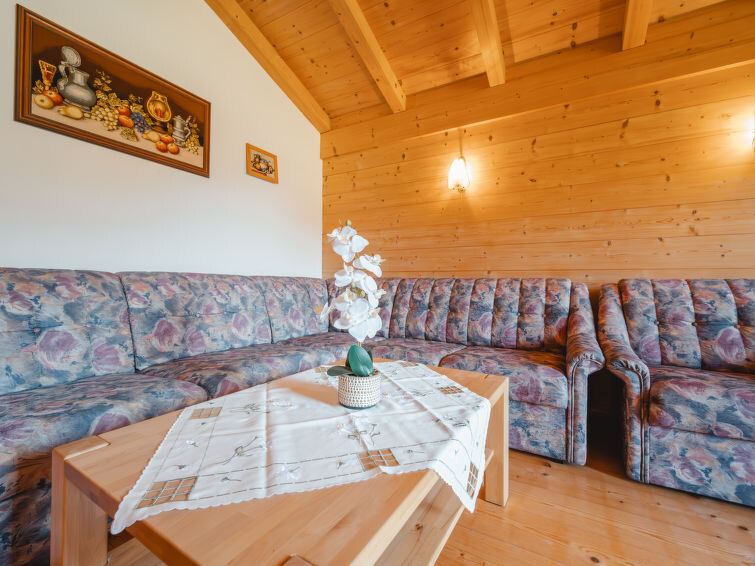 "Spielberg", appartement 2-kamers 63 m2 op de 2e verdieping. Gezellig en met veel hout ingericht: woon-/eetkamer met 1 divanbed, eettafel, eethoek, Sat-TV en elektrische verwarming. Uitgang naar het balkon. 1 2-pers. kamer. Groot, open keuken (4-pits kookplaat, oven, afwasmachine, broodrooster, diepvriezer, elektrische koffiemachine) met eettafel, eethoek en Sat-TV. Douche/WC. Verwarming. Parketvloeren. Groot balkon. Balkonmeubilair. Zeer mooi panoramazicht. 50620-000788-2022